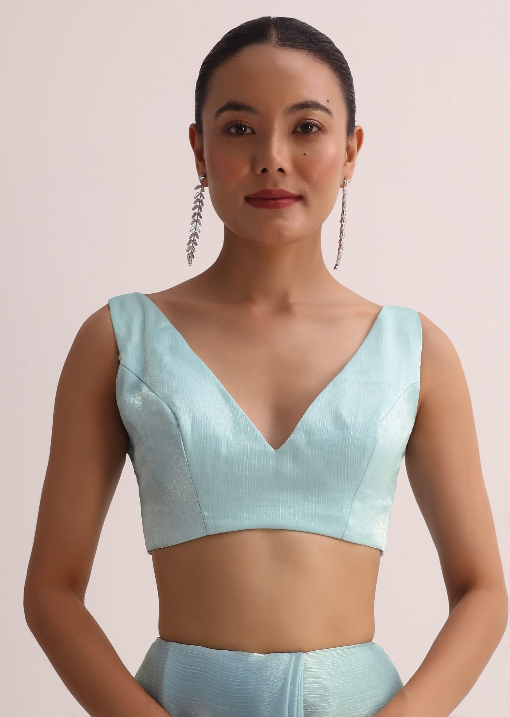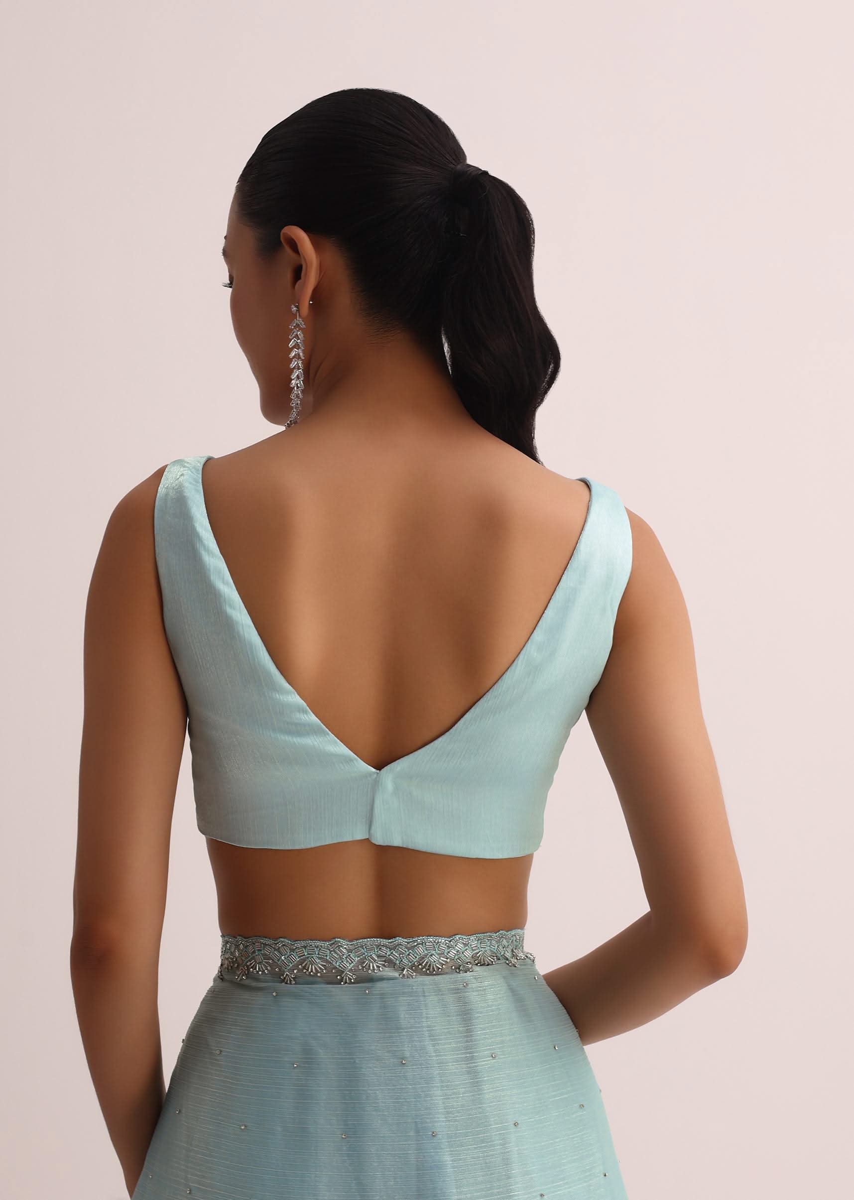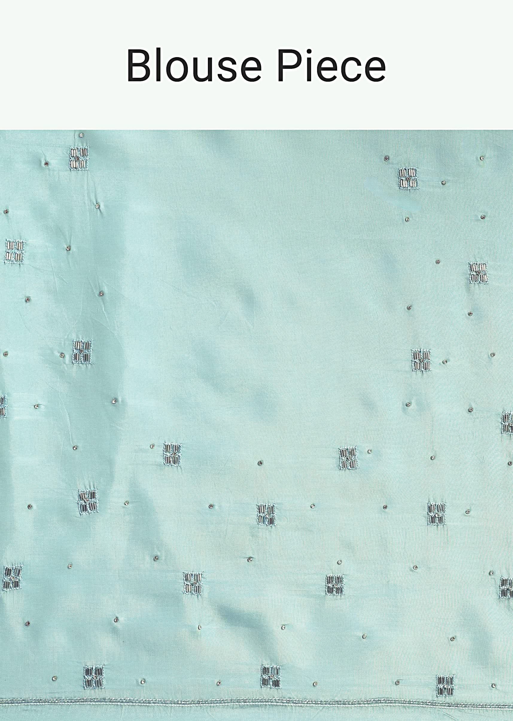 Sky Blue Saree With Cutdana Border And Unstitched Blouse