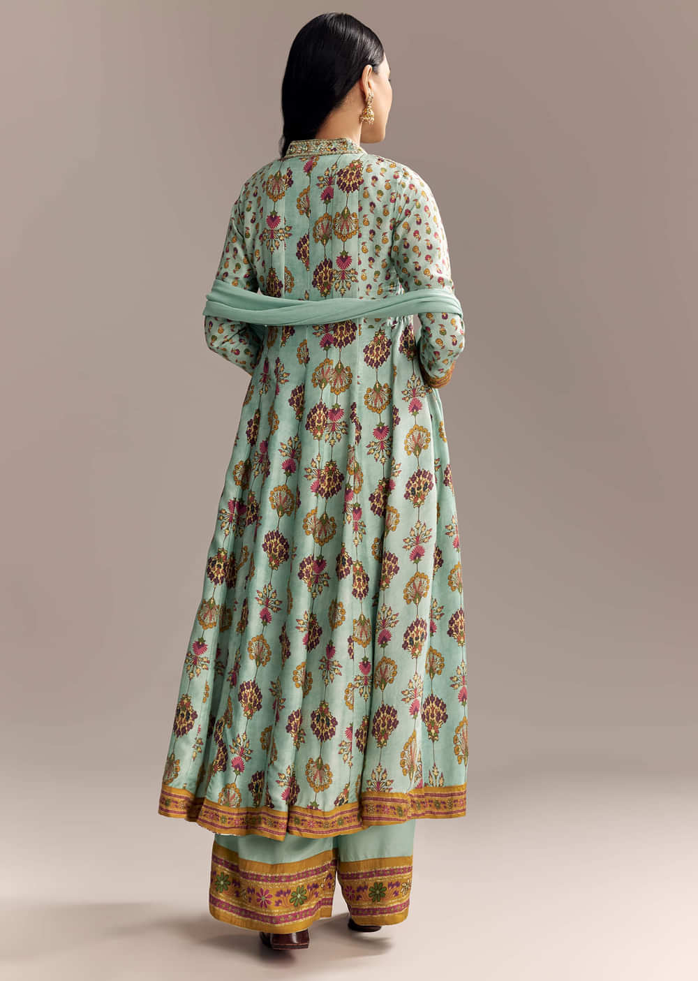 Sky Blue Silk Anarkali Suit With Boho Multi Print