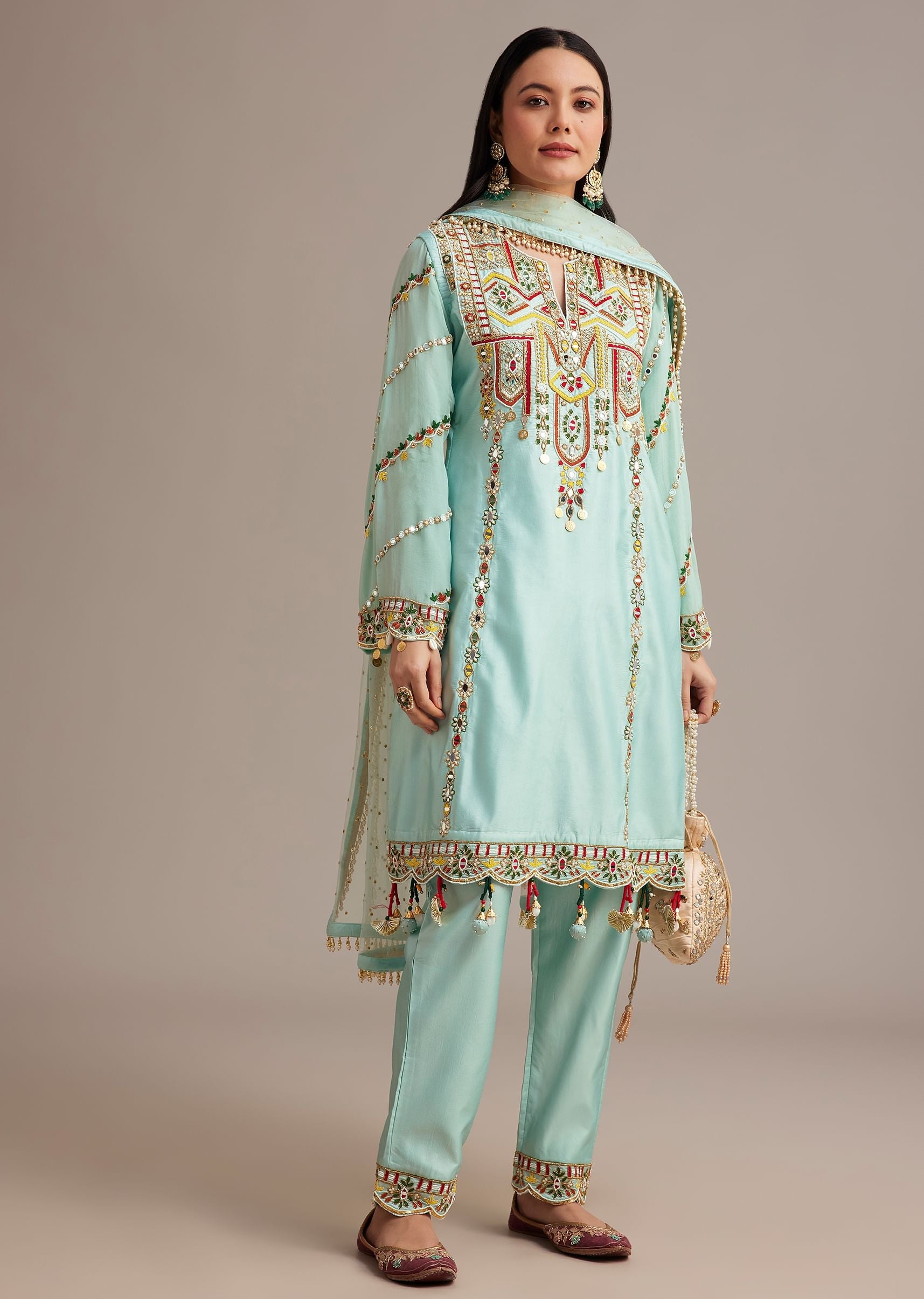 Pair With Embellished Juttis A Statement Potli Bag And Jhumkas For A Complete Festive Look.