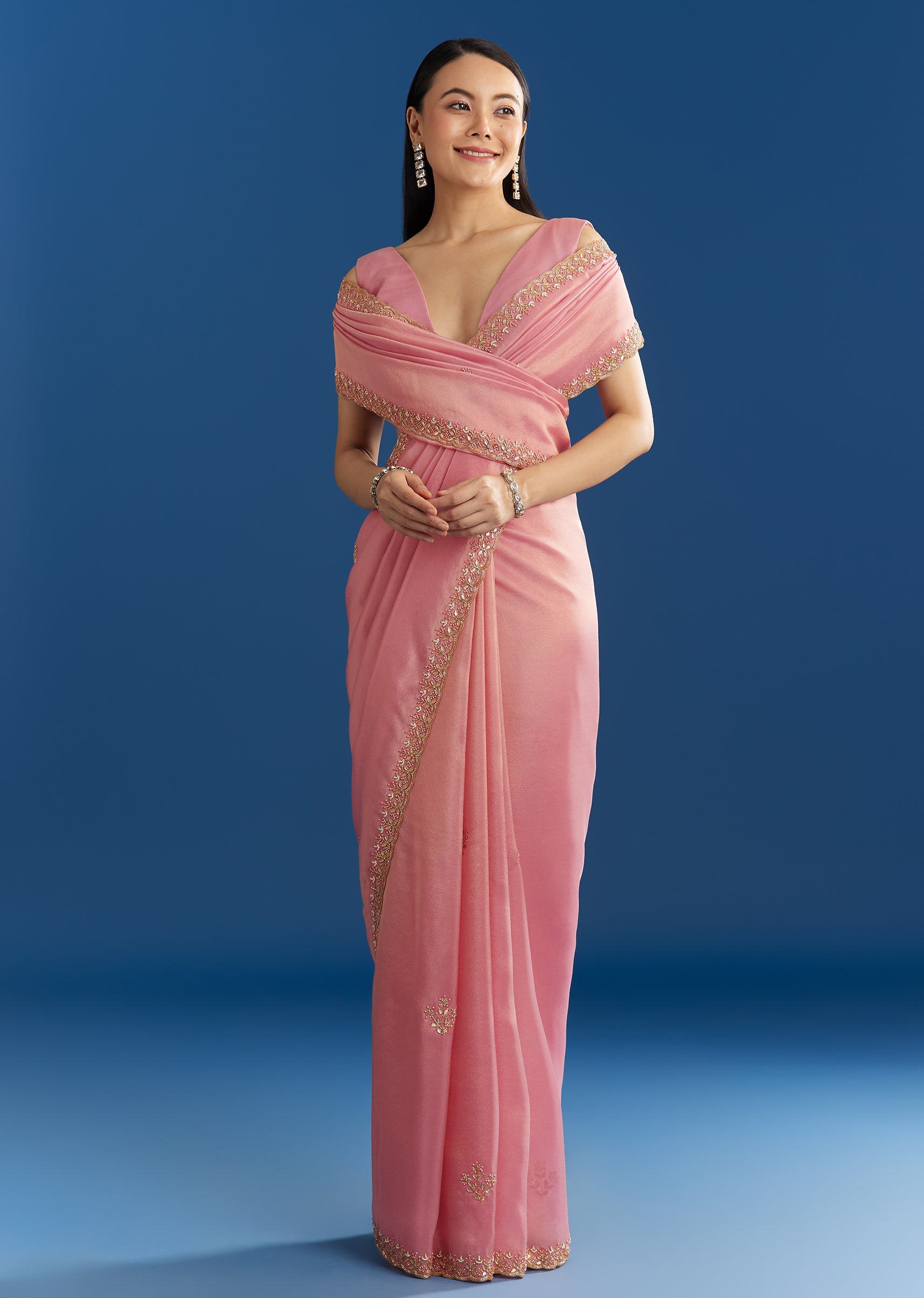Soft Pink Organza Tissue Saree With Scallop Beaded Finish