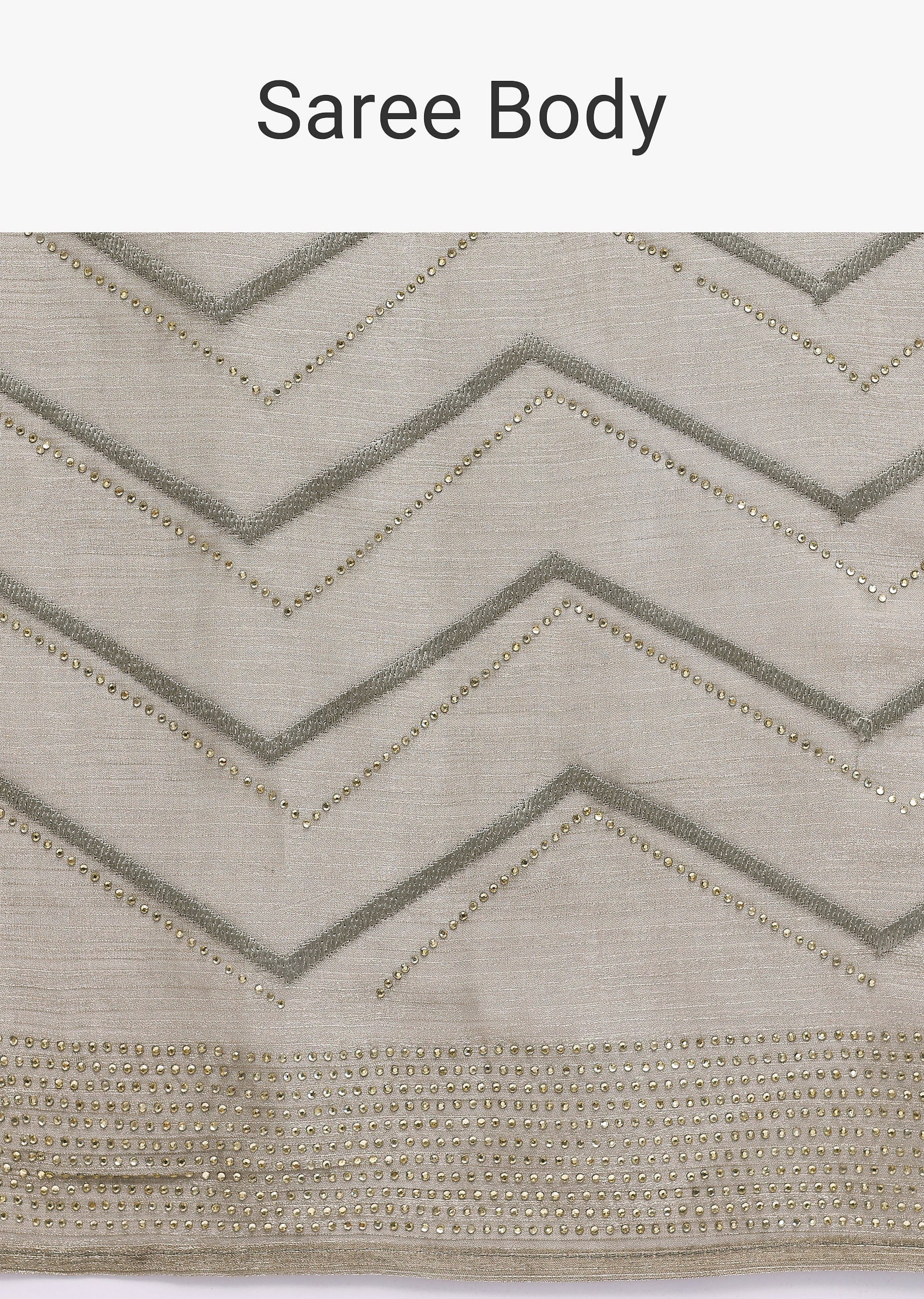 - Embody sophistication and allure in our mesmerizing stone grey saree, tailored for the grandeur of festive celebrations and weddings alike.