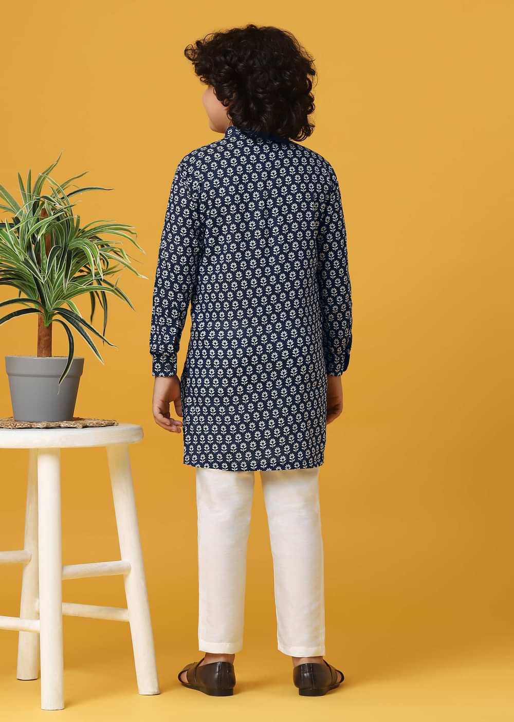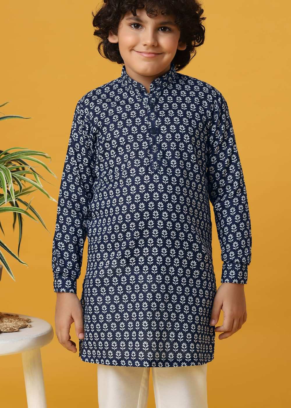 Elevate festive occasions with our vibrant Boys' Kurta Set in a rich silk fabric, The Kurta features intricate print detailing. The mandarin collar and full sleeves add a touch of traditional charm. The set includes a classic kurta and coordinating pants, offering a timeless and comfortable silhouette. Awarded as the Most Trusted Brand, we're delivering styles you love, just as promised.
