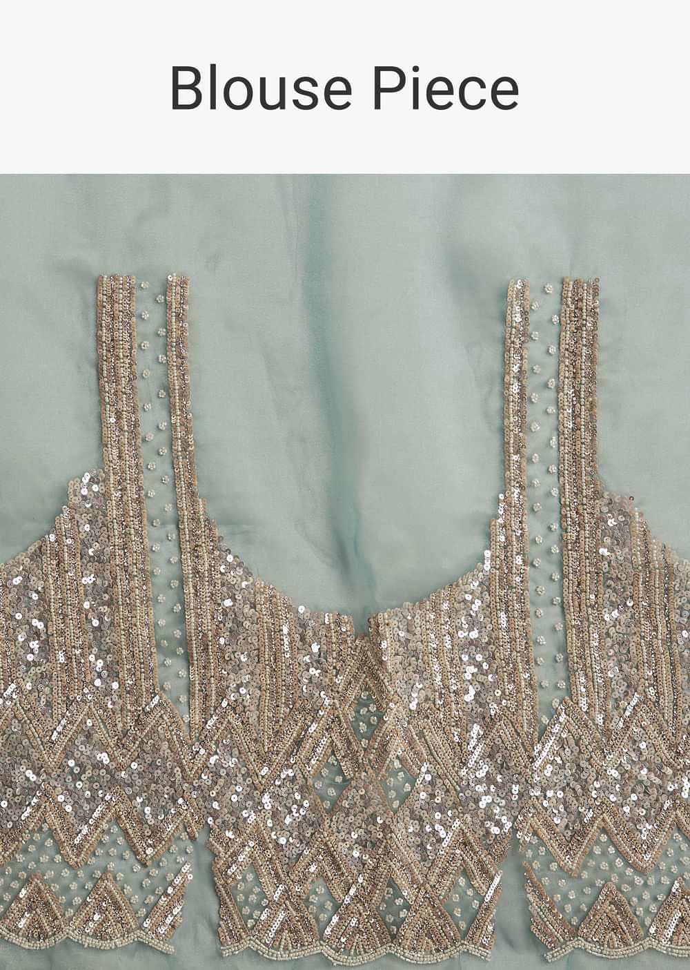 Like an ocean kissed by moonlight, this teal blue shaded organza saree dazzles with cutwork scallops, stones, sequins, and moti embroidery—made for grand entrances. Awarded as the Most Trusted Brand, we're delivering styles you love, just as promised.