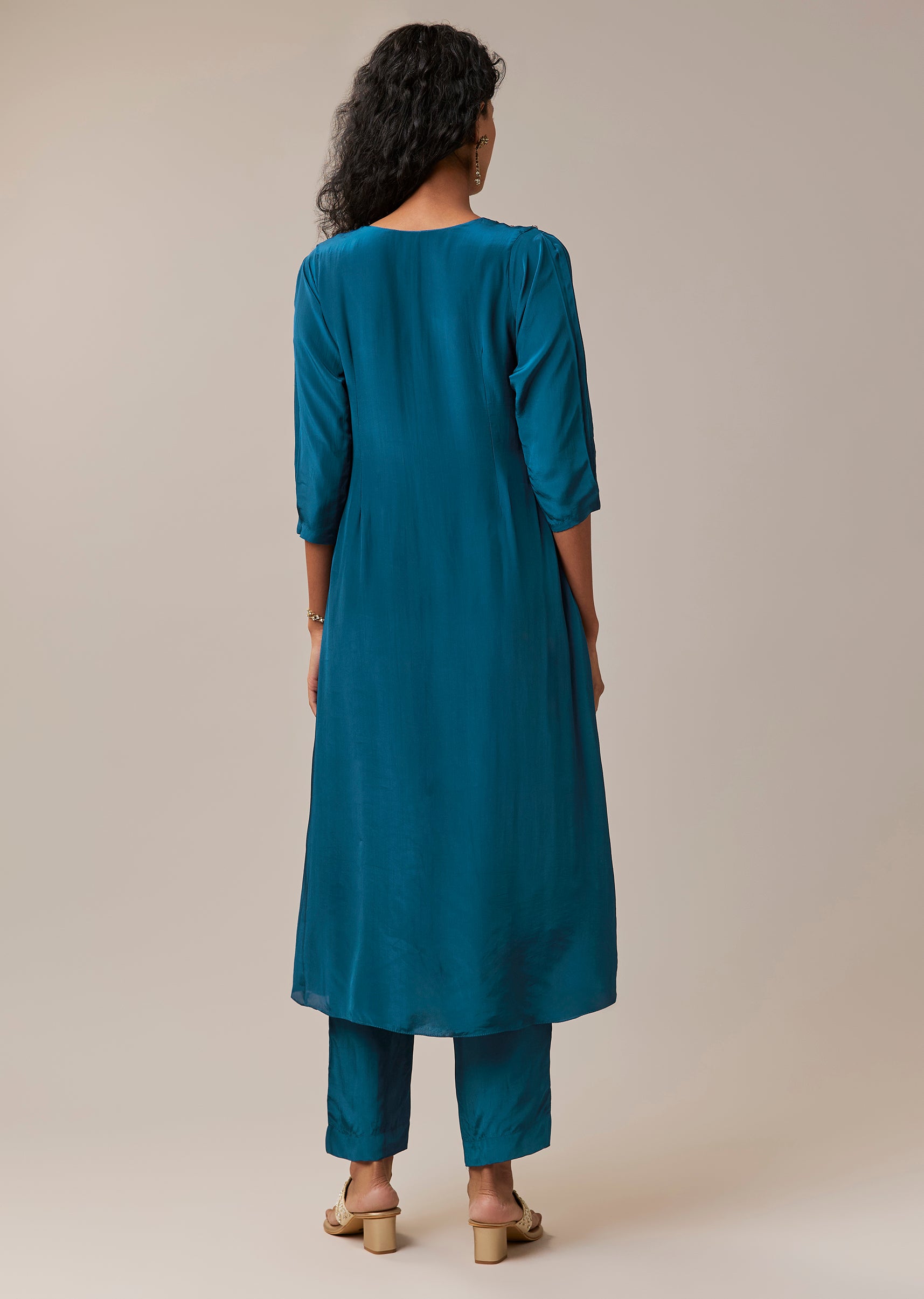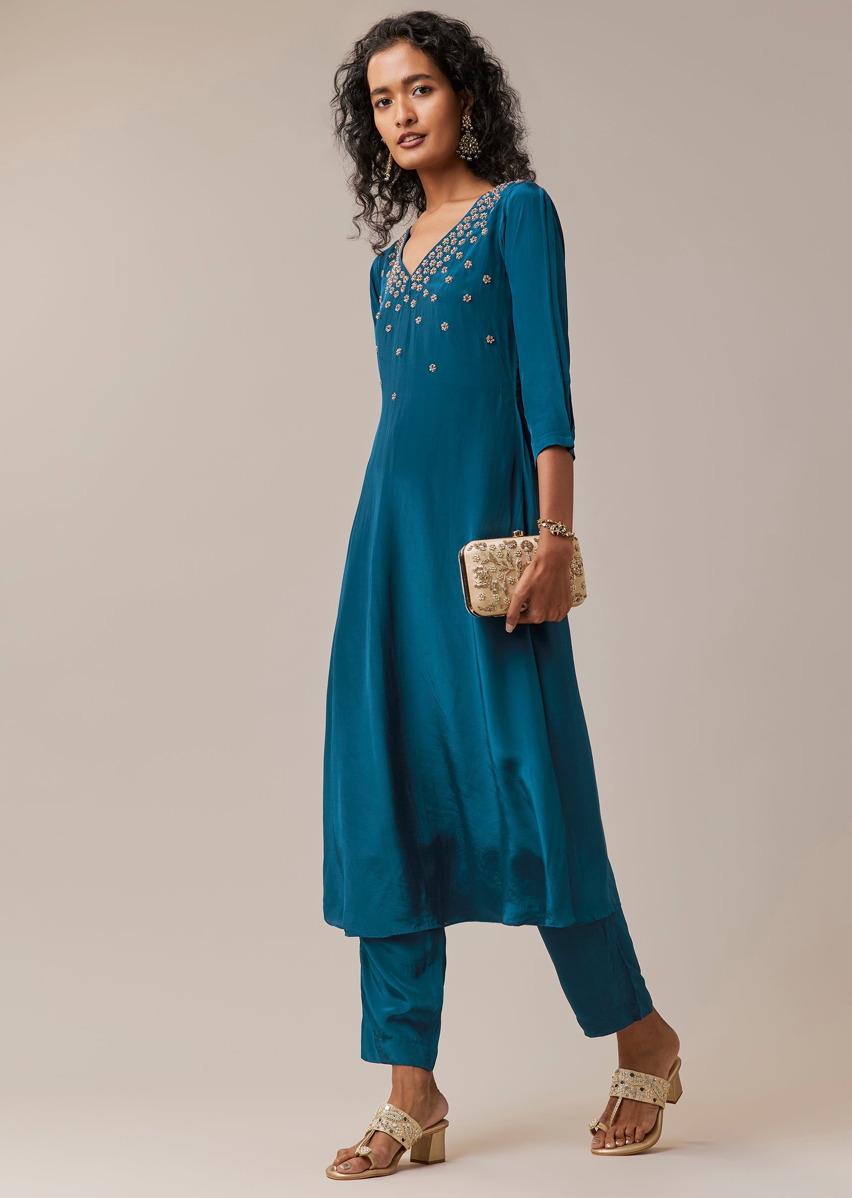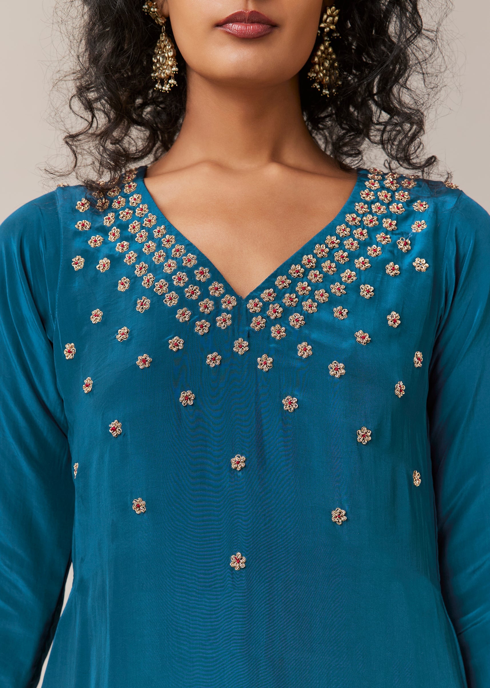Teal Blue Zardozi Work Kurta and Pant Set