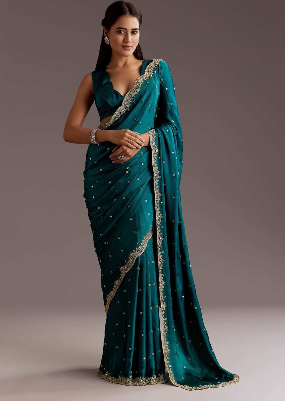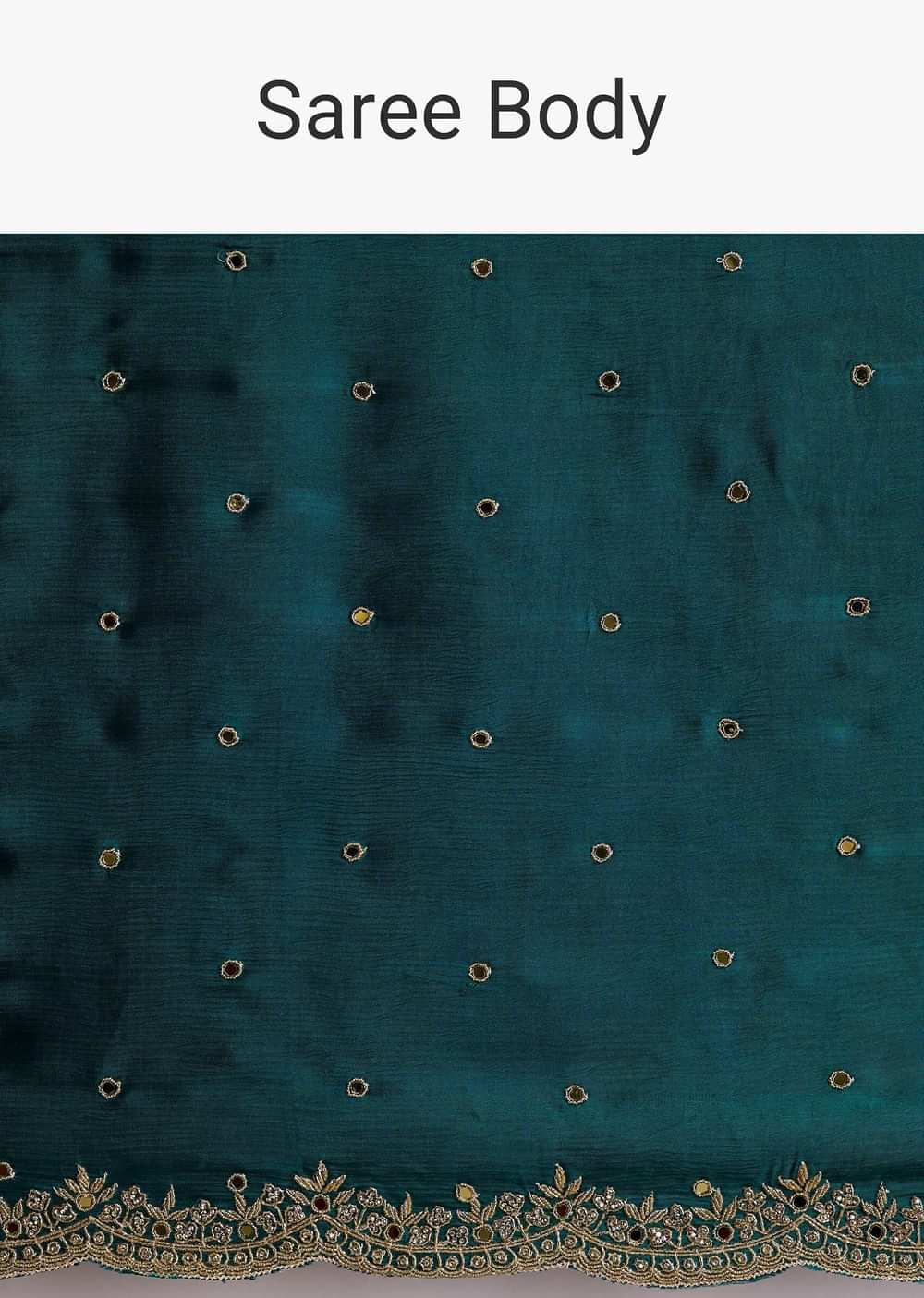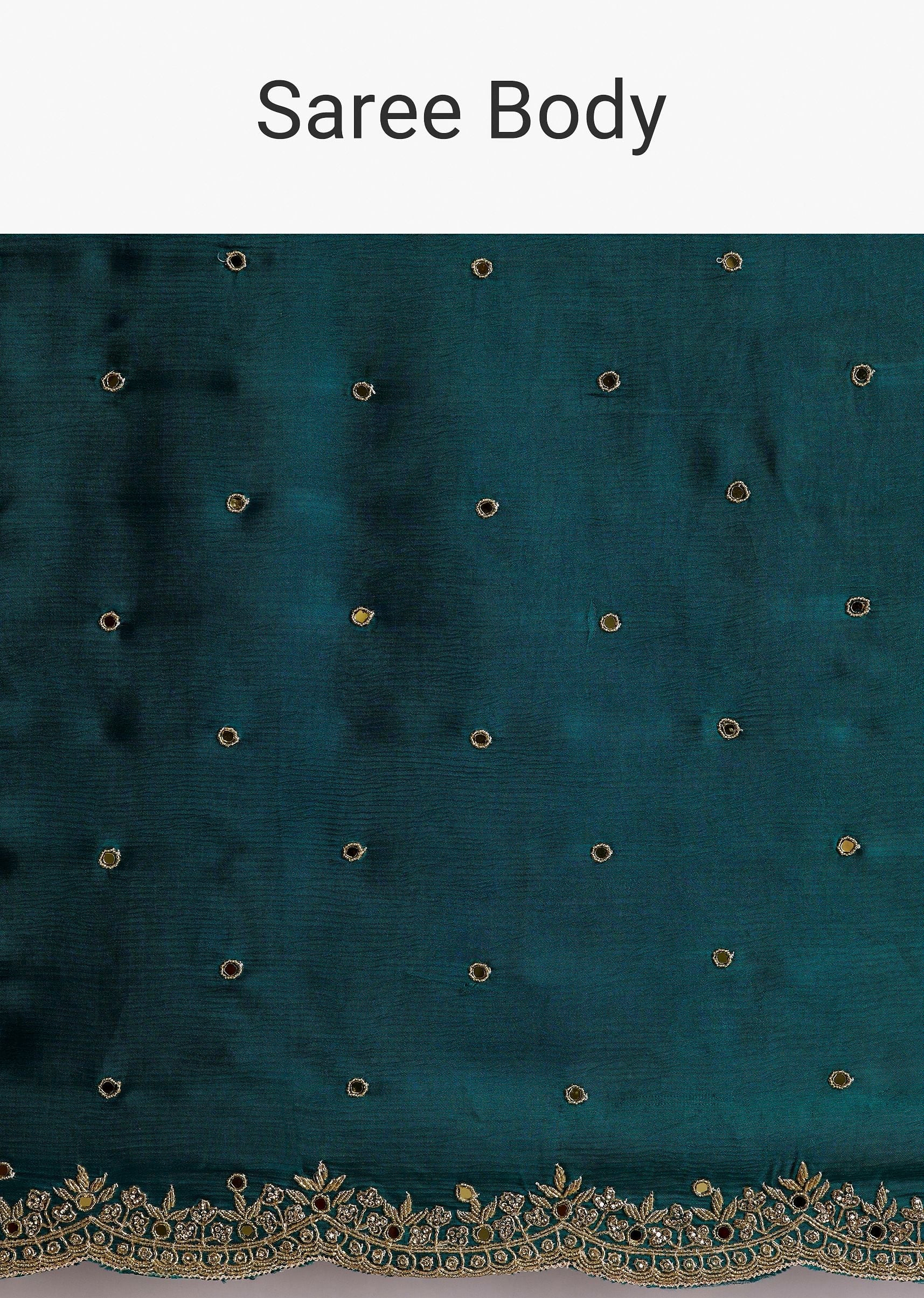 Teal Green Chinon Saree With Cutdana And Sequins Scallop Border