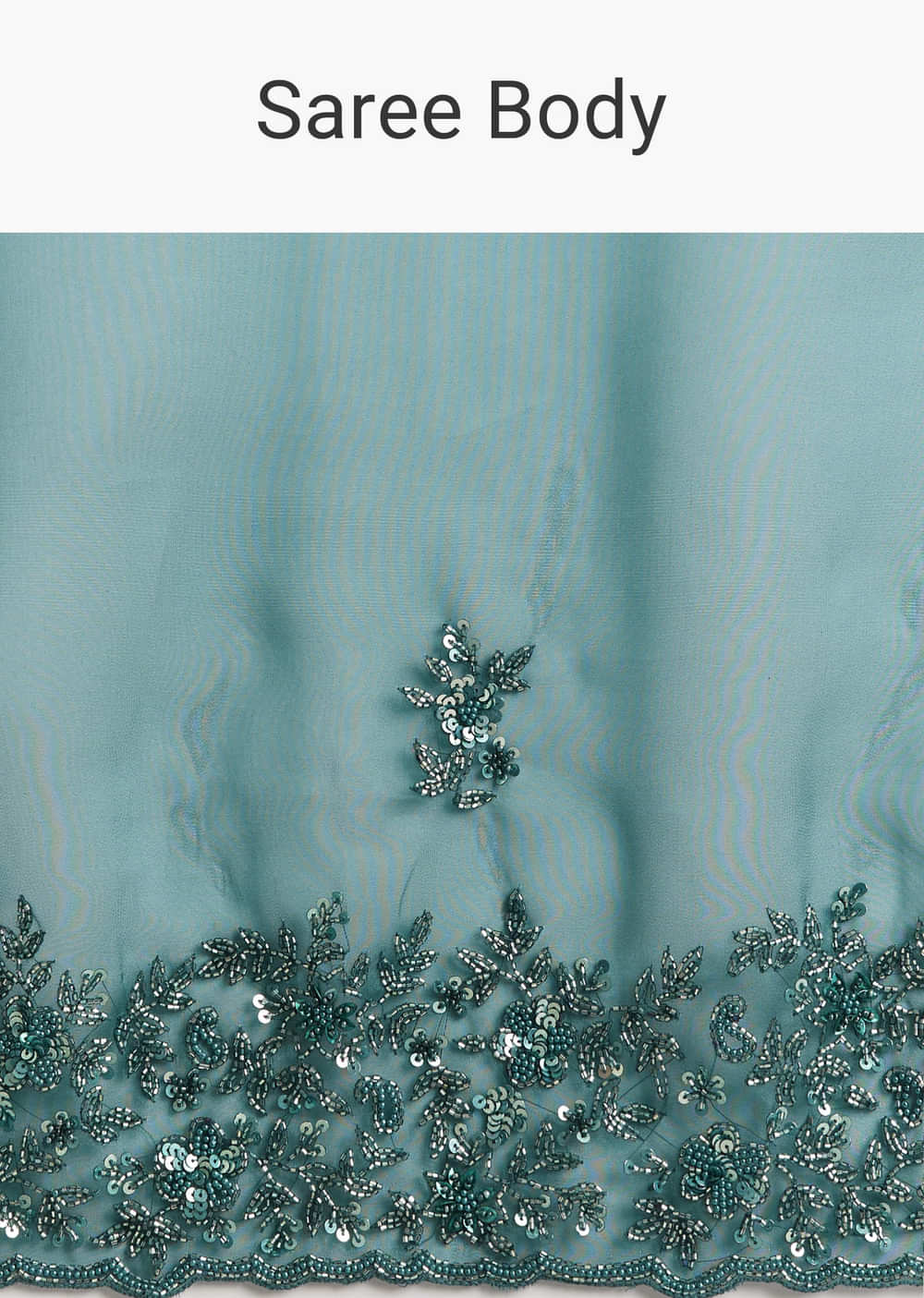 Teal Green Tissue Saree With Floral And Cutwork Embroidery