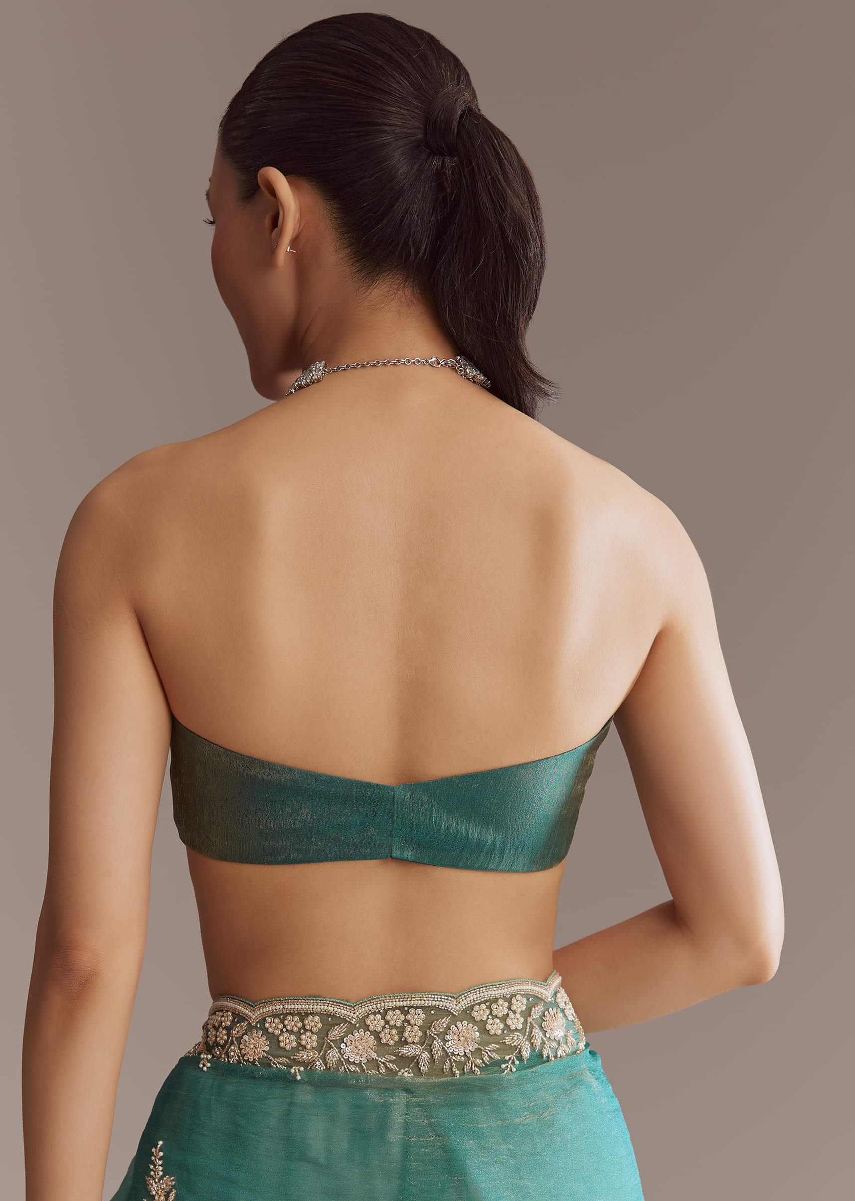 Teal Green Two Tone Tissue Saree With Sequin And Stone Embroidery