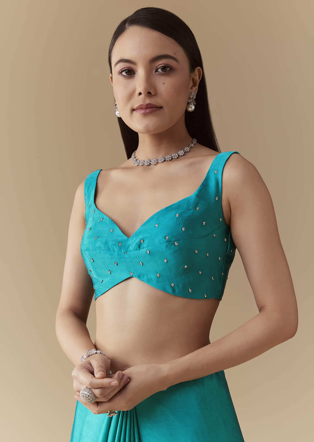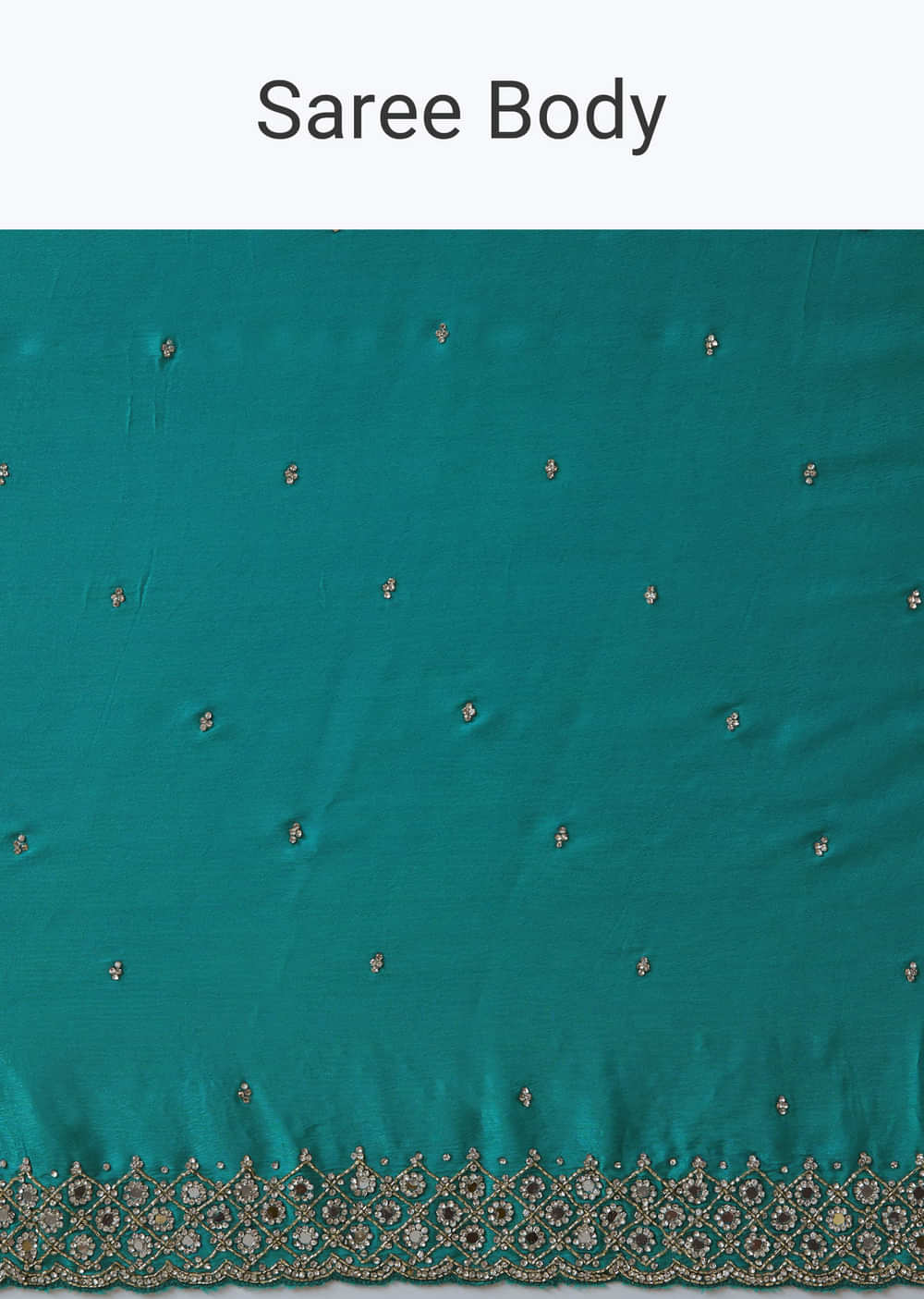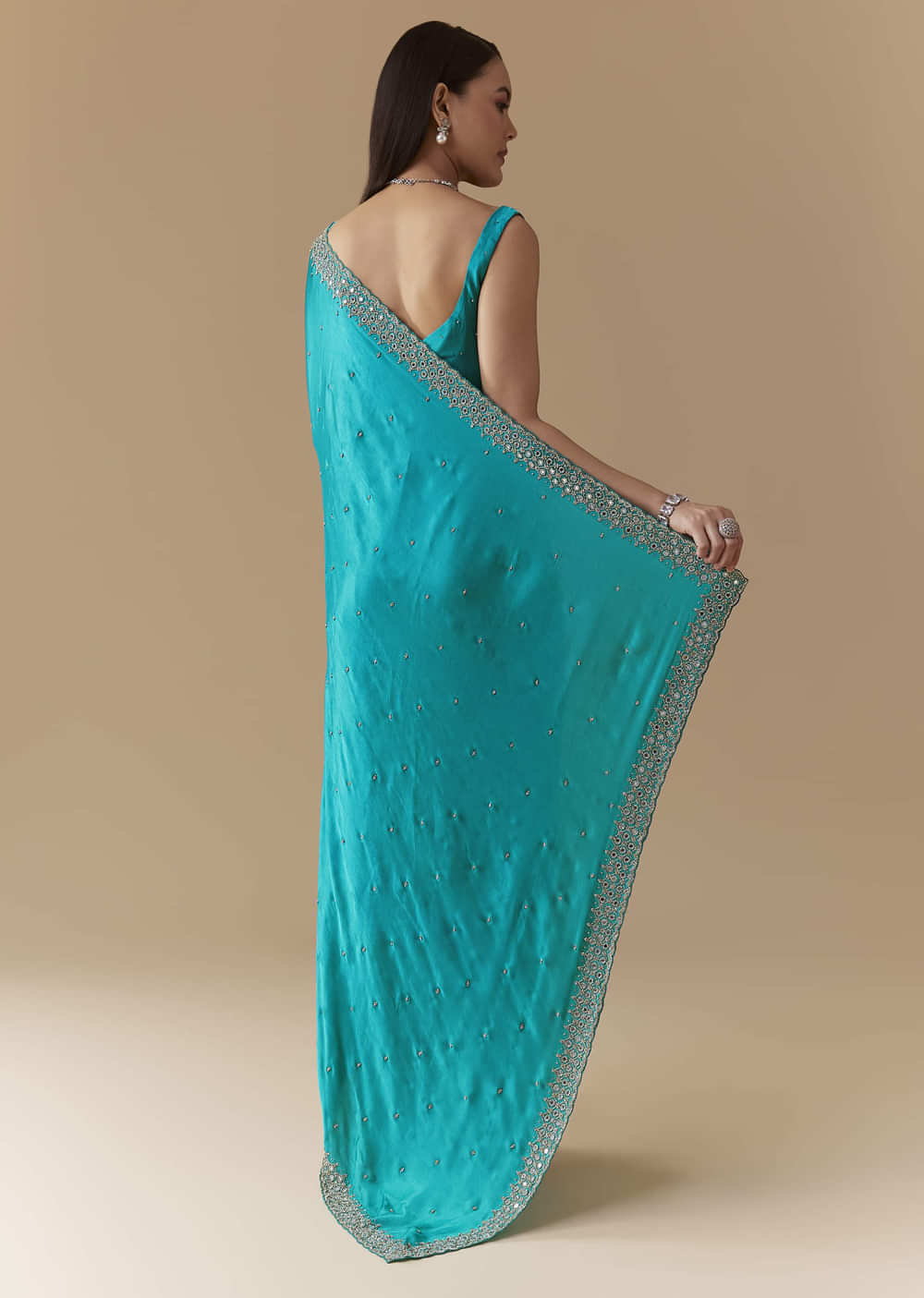 Turquoise Blue Embellished Saree with Unstitched Blouse