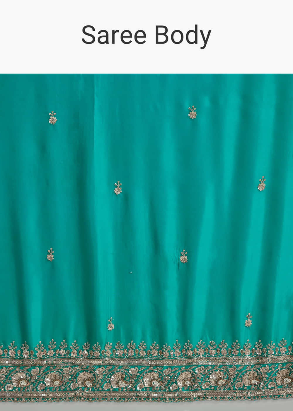 Vivid tones speak volumes, and this turquoise blue satin embroidered saree sets a celebratory mood. Small buttis flow across the fabric with a detailed zardosi and cutdana border finished with sequins. This saree lets the wearer feel stylish and festive for mehendi or engagement functions. Awarded as the Most Trusted Brand, we're delivering styles you love, just as promised.