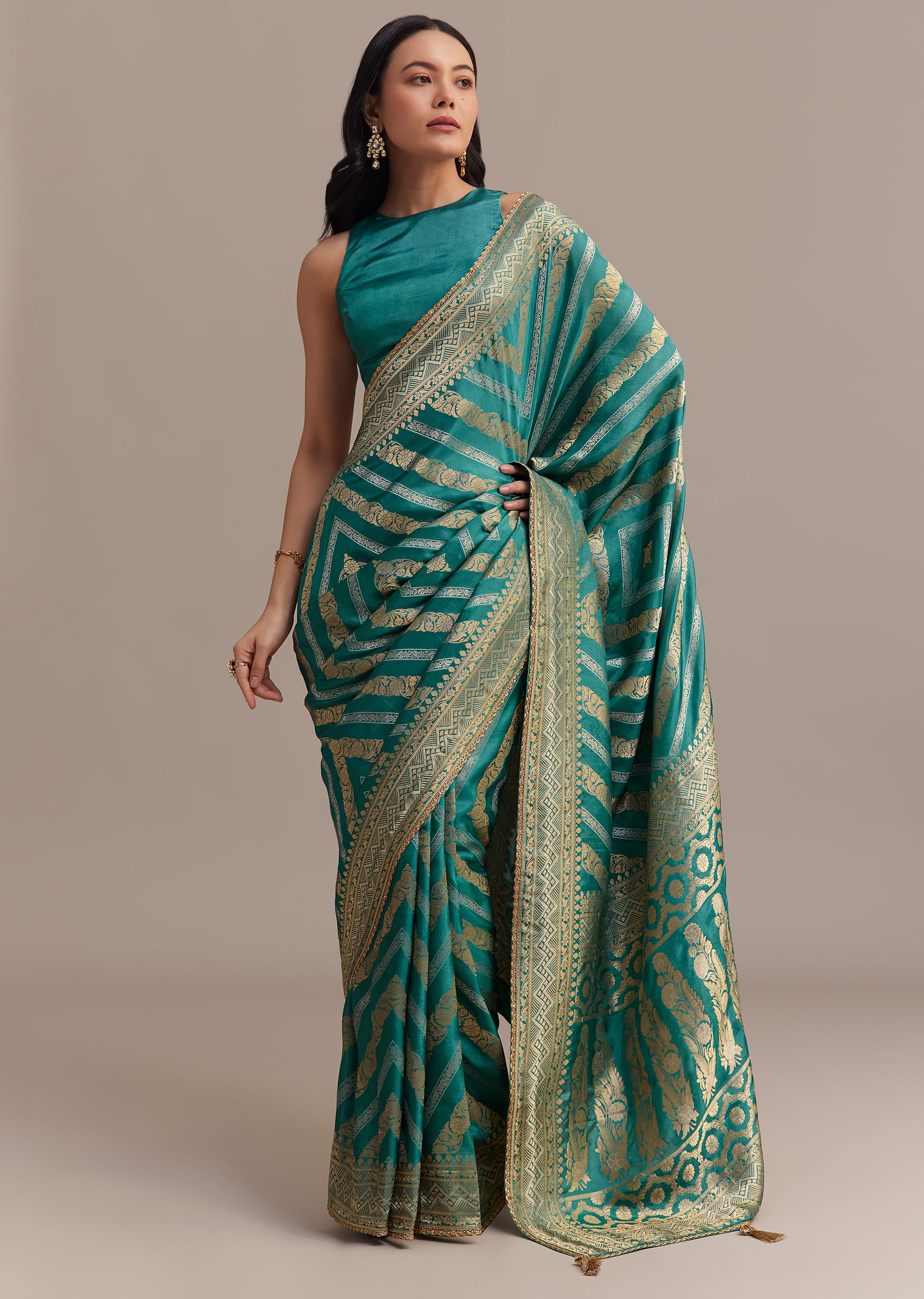 - Steeped In Elegance This Turquoise Green Dola Silk Saree Is A Timeless Blend Of Tradition And Grandeur.