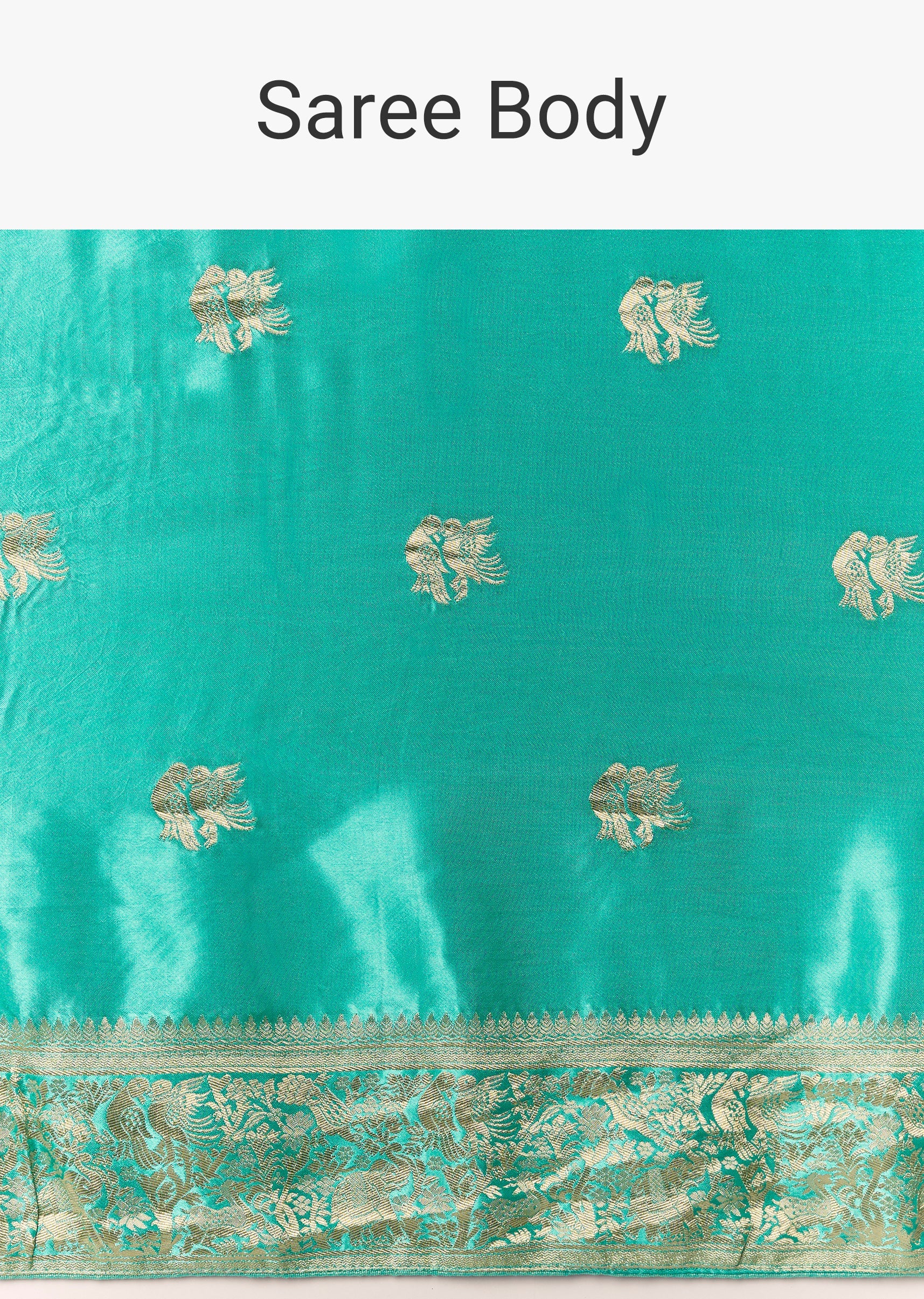 Turquoise Satin Silk Saree with Bird Motif Zari Weave