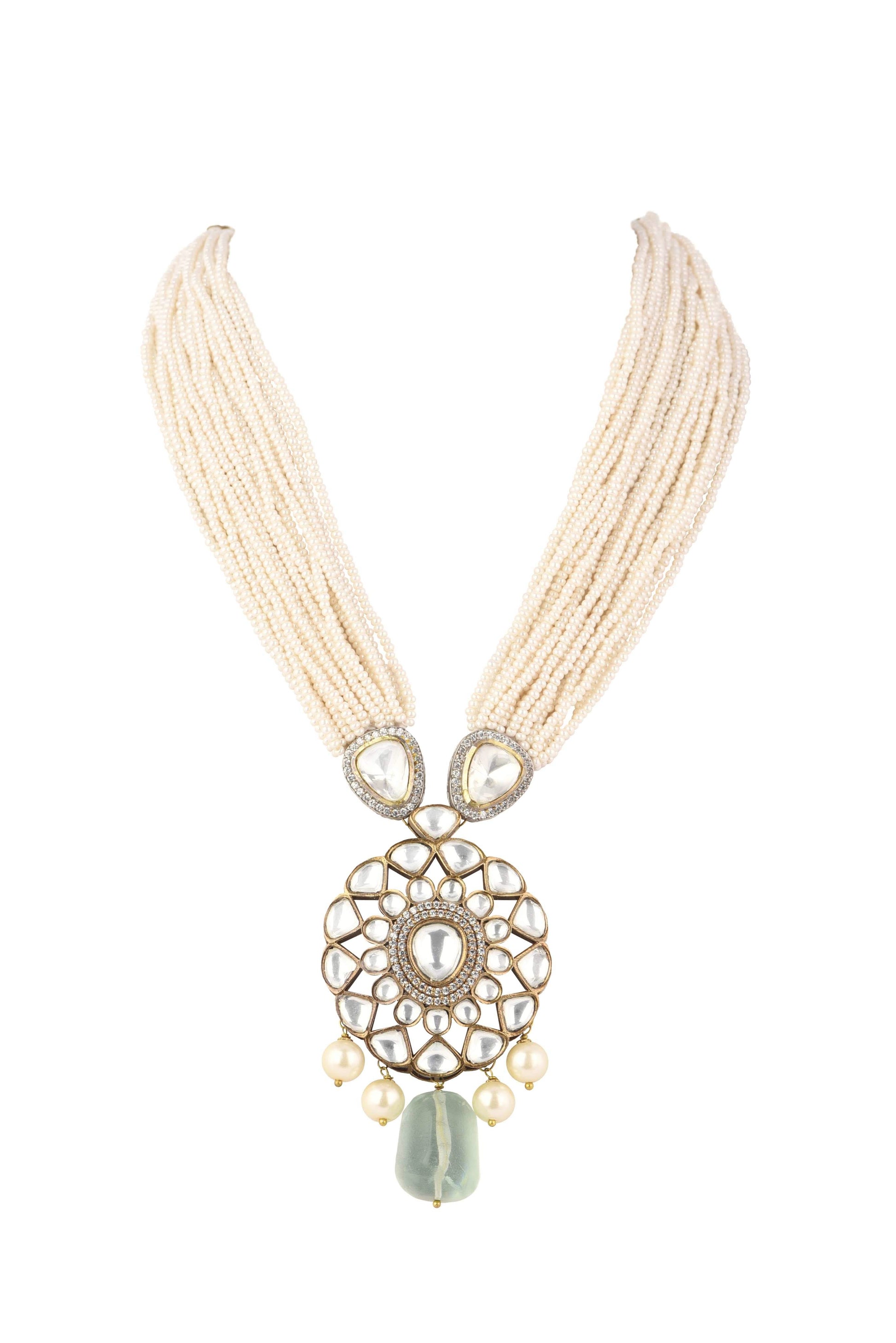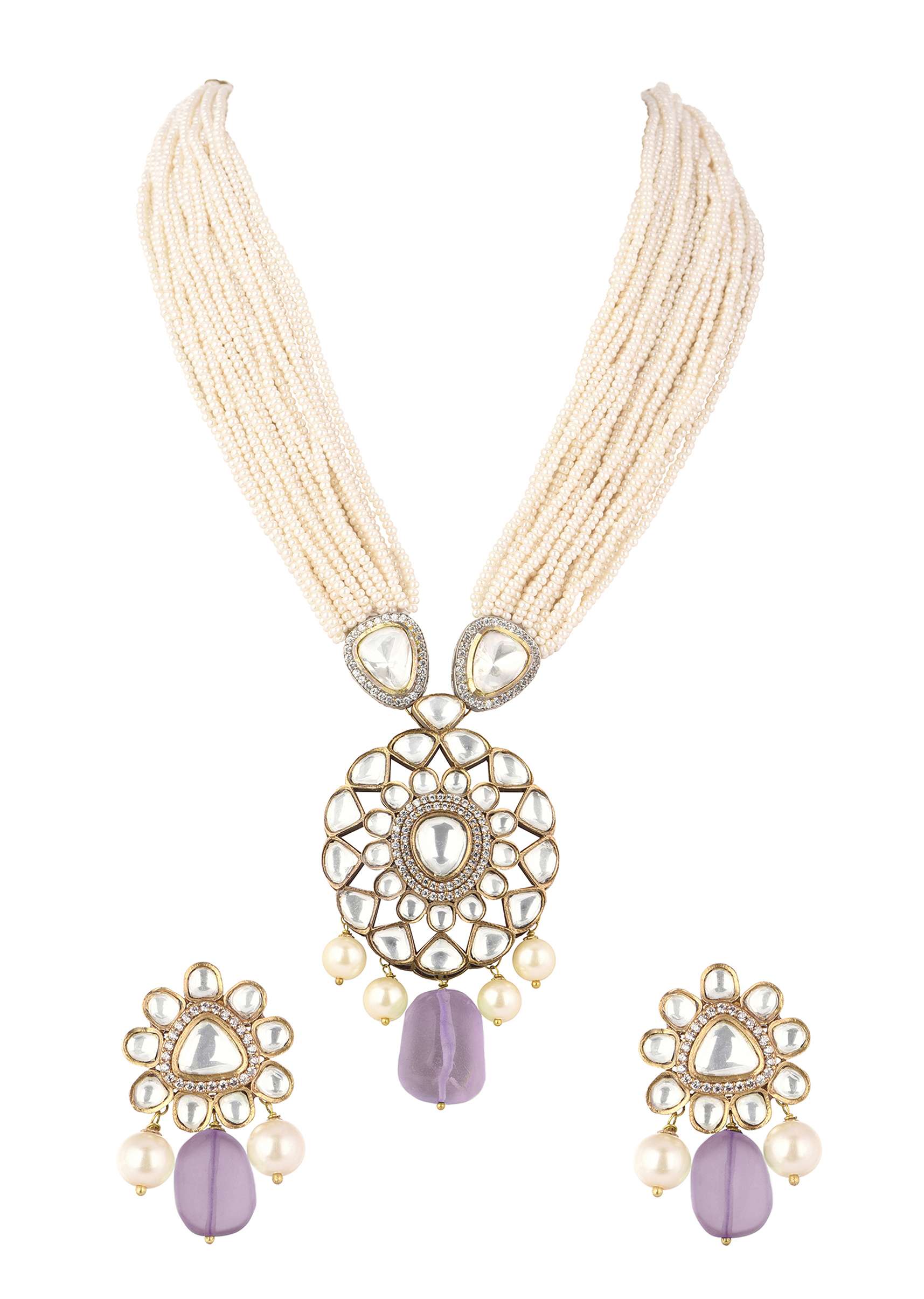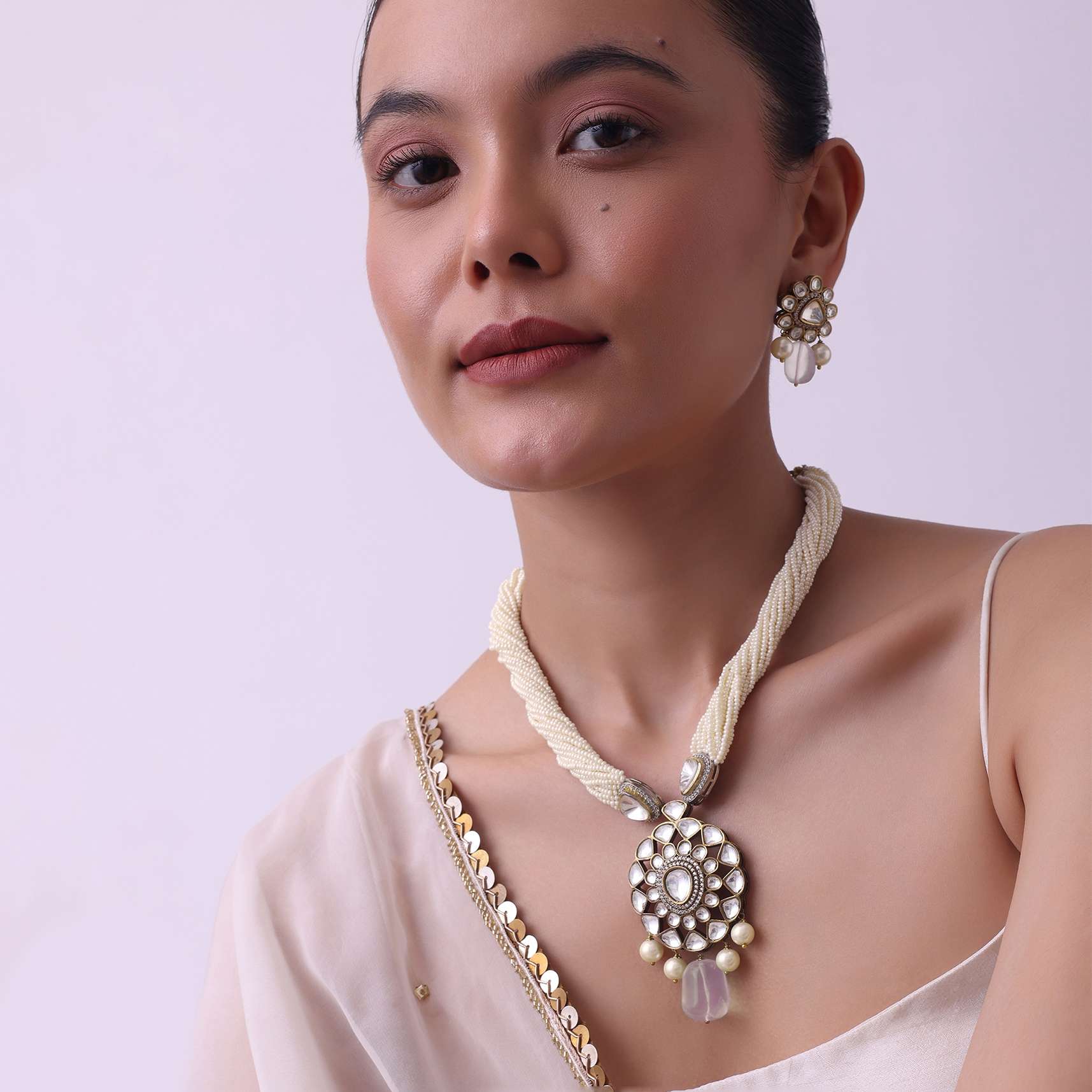 Introducing our exquisite two-tone moissanite kundan necklace and earring set, a true masterpiece of luxury. This set combines the timeless allure of kundan craftsmanship with the brilliance of synthetic stones and delicate pearl drops. EVENT - Perfect for festive and formal events. Avoid contact with water, chemicals, harsh liquids, perfumes, etc. Do not wear this piece of jewelry while showering, gym, swimming, etc. Please keep the product away from moisture and humidity when not in use. Slight variations in design may vary. Being rewarded as the most trusted brand, our customers believe we deliver the same styles as promised on the website. Awarded As The Most Trusted Brand We'Re Delivering Styles You Love Just As Promised.