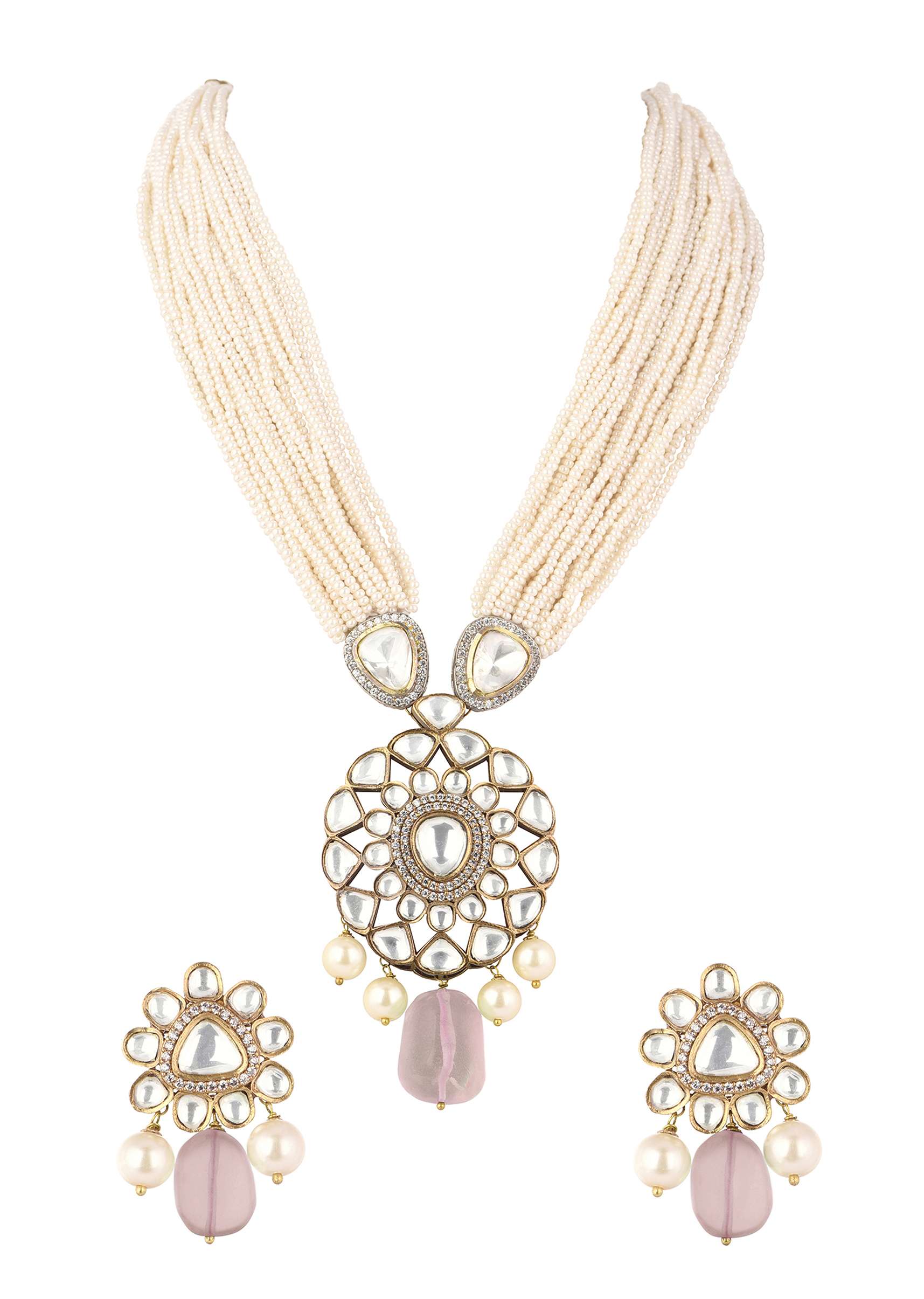 Two Tone Moissanite Necklace And Earring Set With Pearl Drops