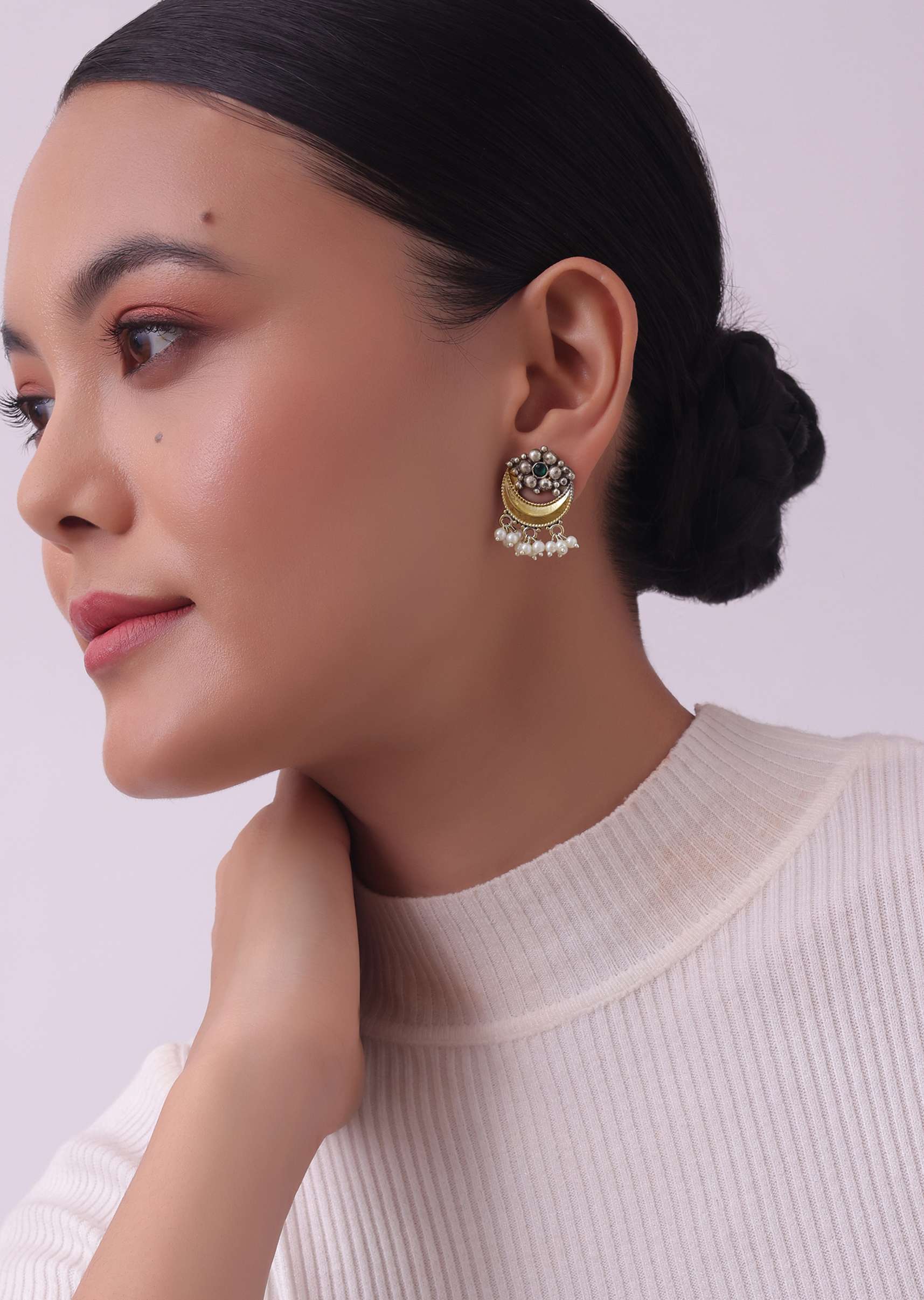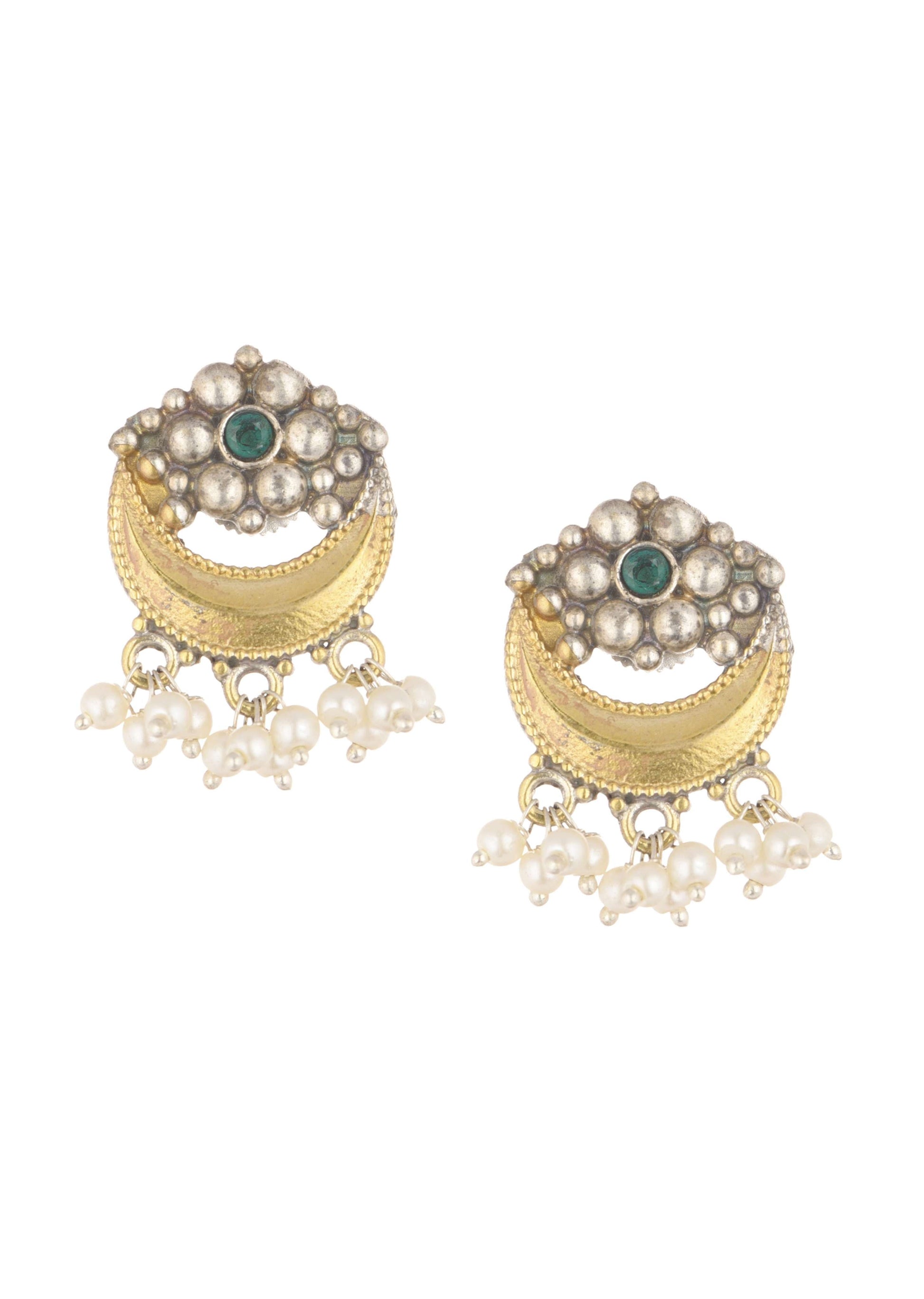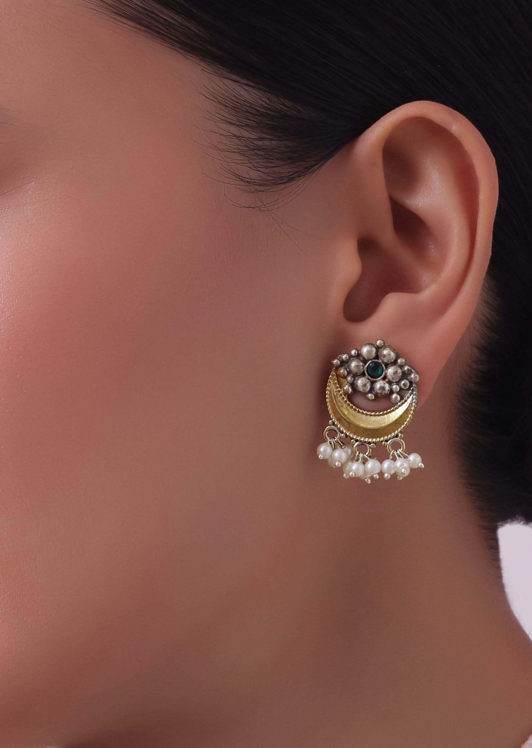 Two Tone Oxidised Necklace And Earrings Set With Pearls