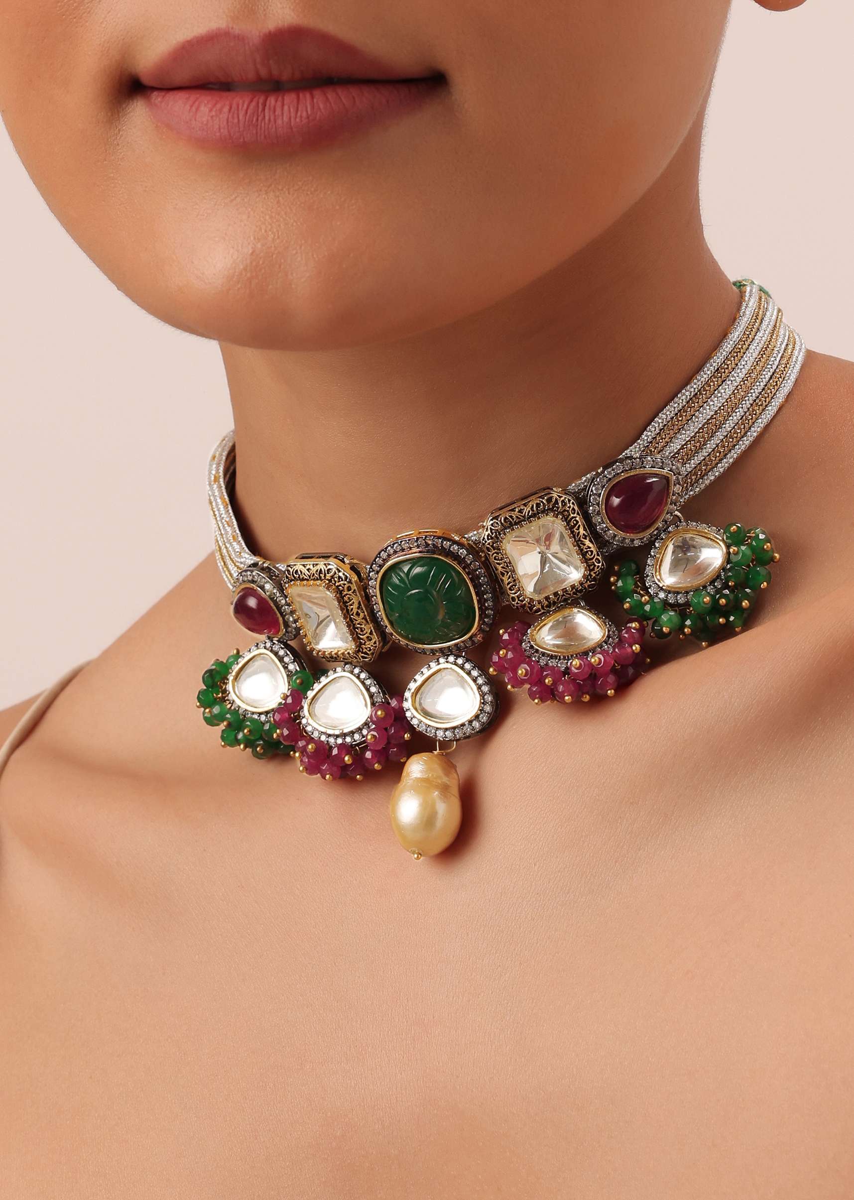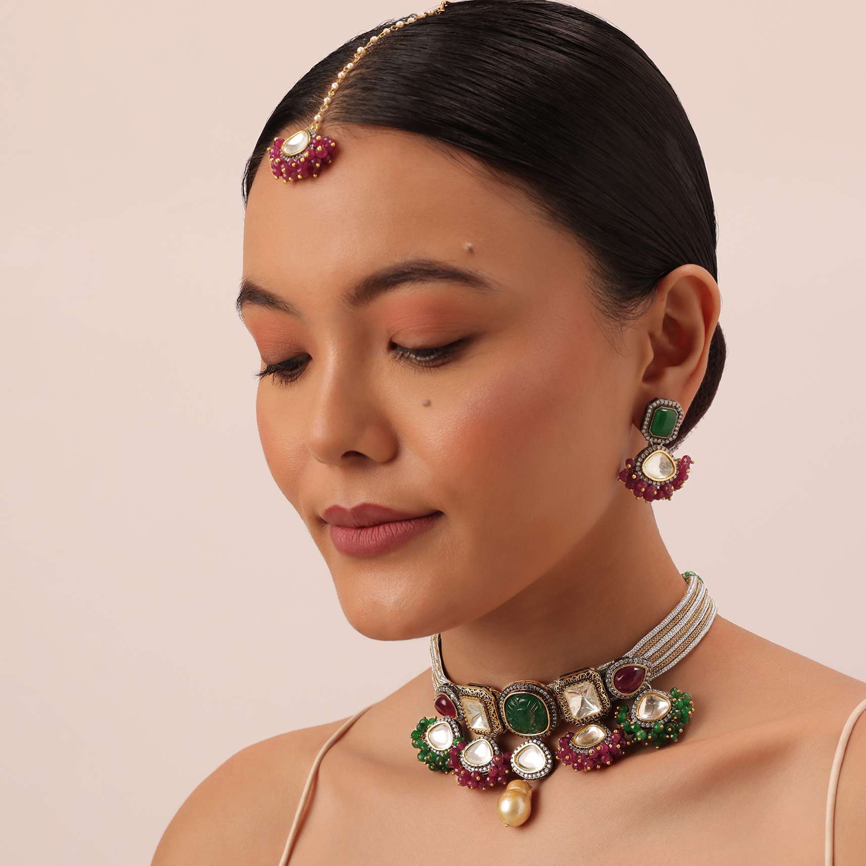 This set will look gorgeous when paired with a dreamy lehenga or an indo-fusion ensemble.