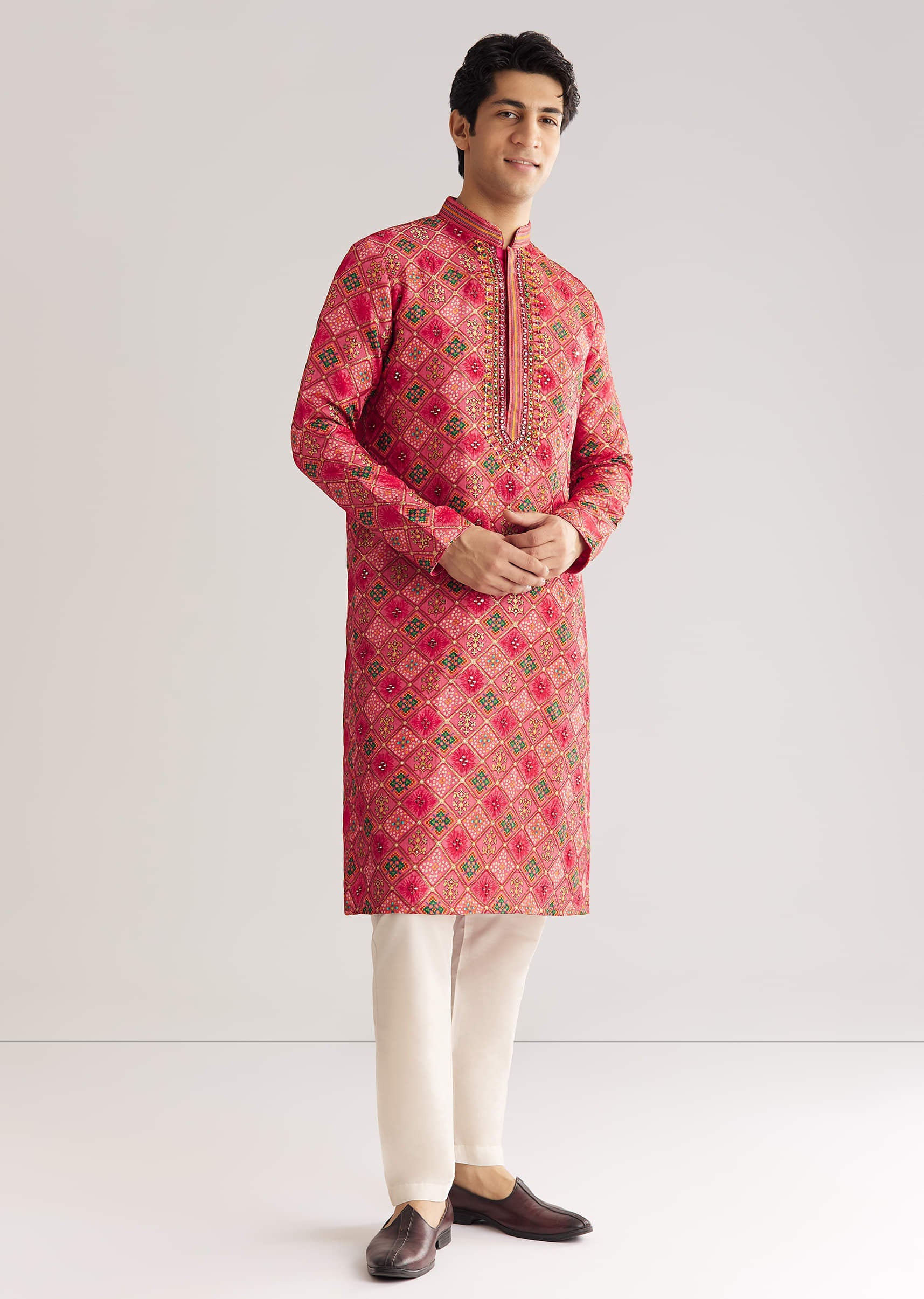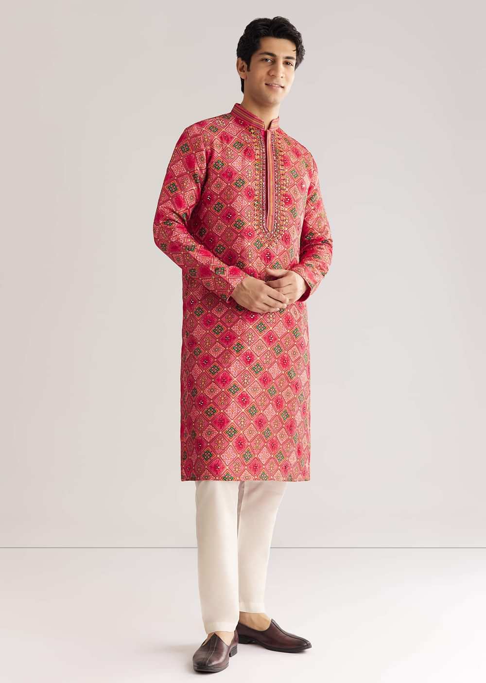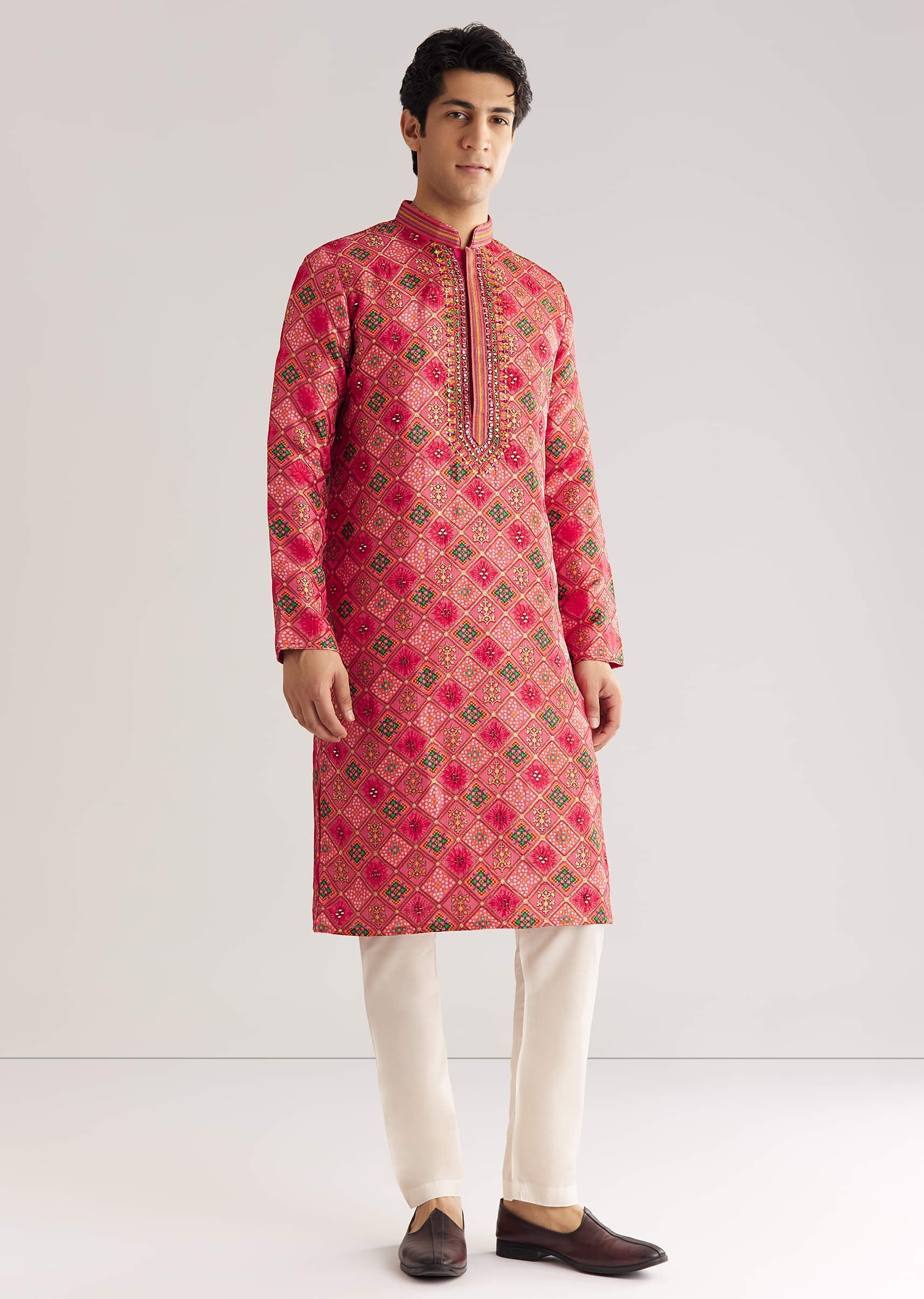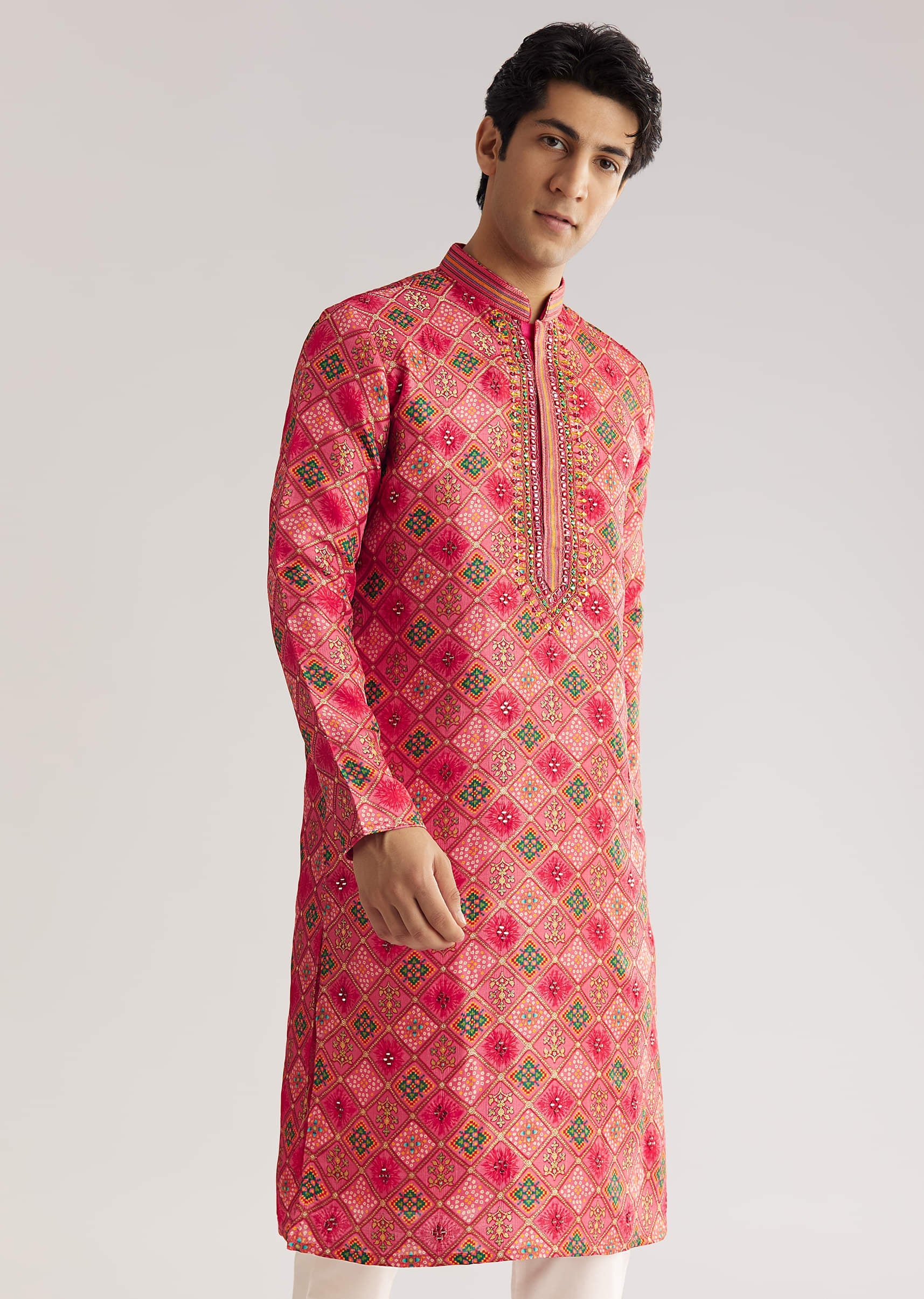 A garden in bloom—this pink brocade kurta shimmers with mirror accents and celebrates every step like a festival of petals. Awarded as the Most Trusted Brand, we're delivering styles you... More Product Details