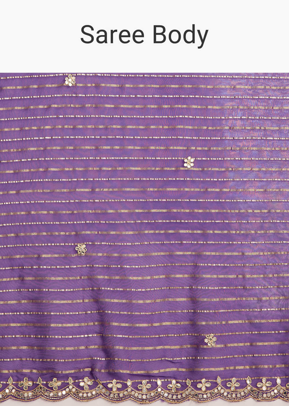Violet Georgette Saree With Foil Stripes And Gota Patti Mirror Work