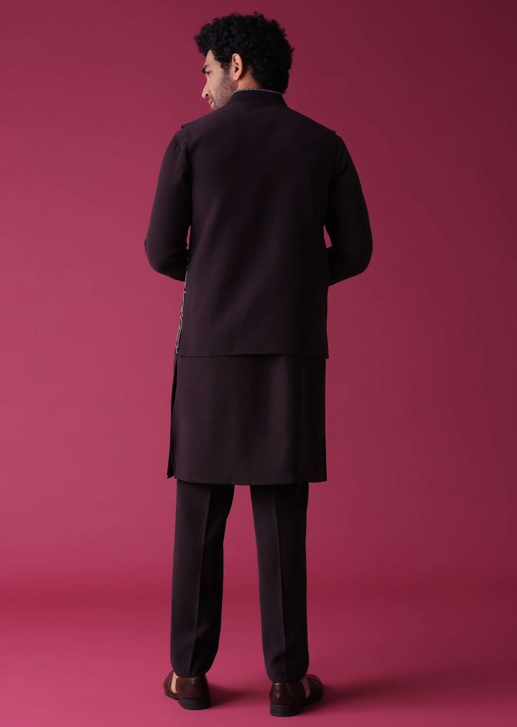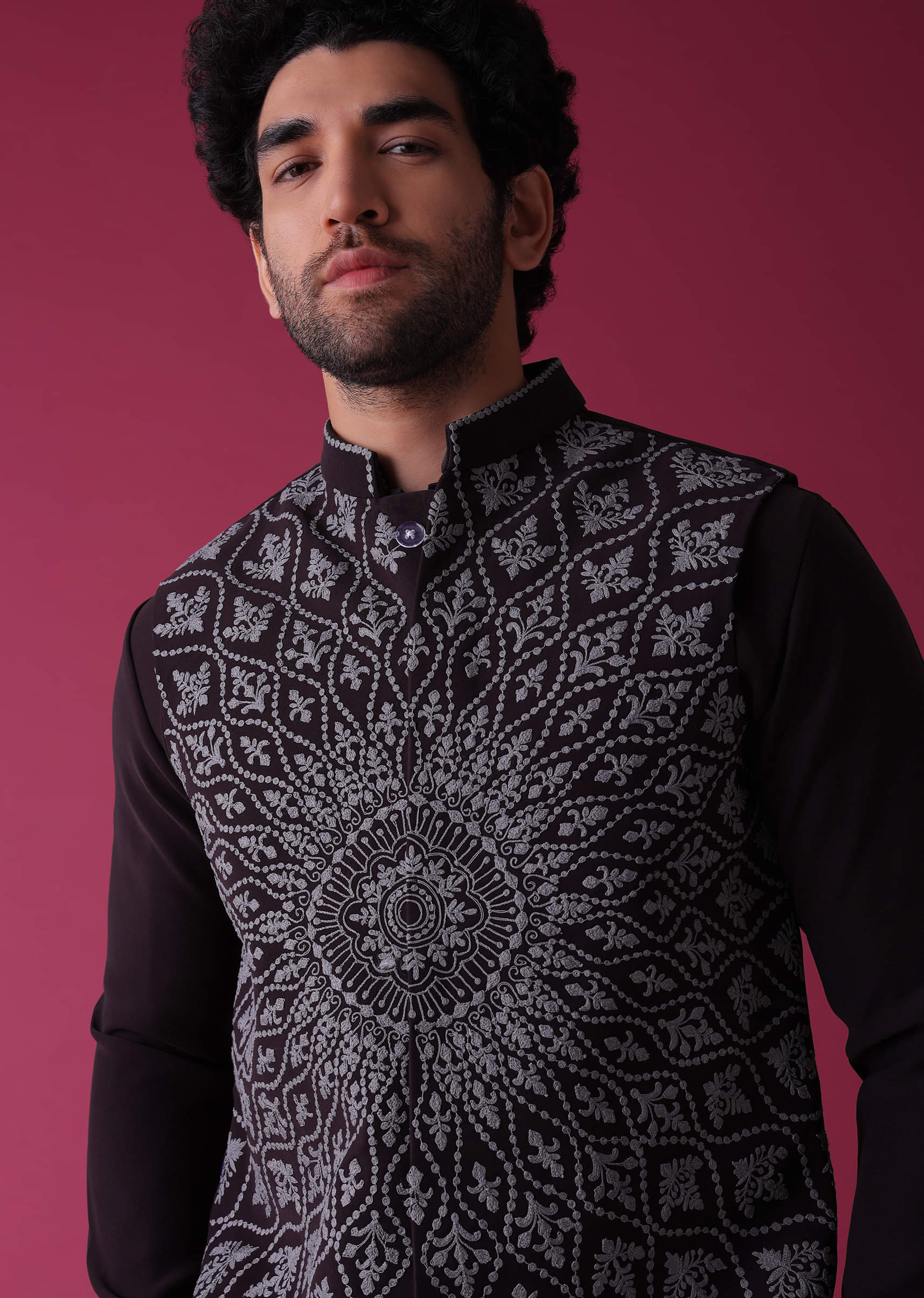 Violet Purple Jacket Kurta Set In Silk With Threadwork