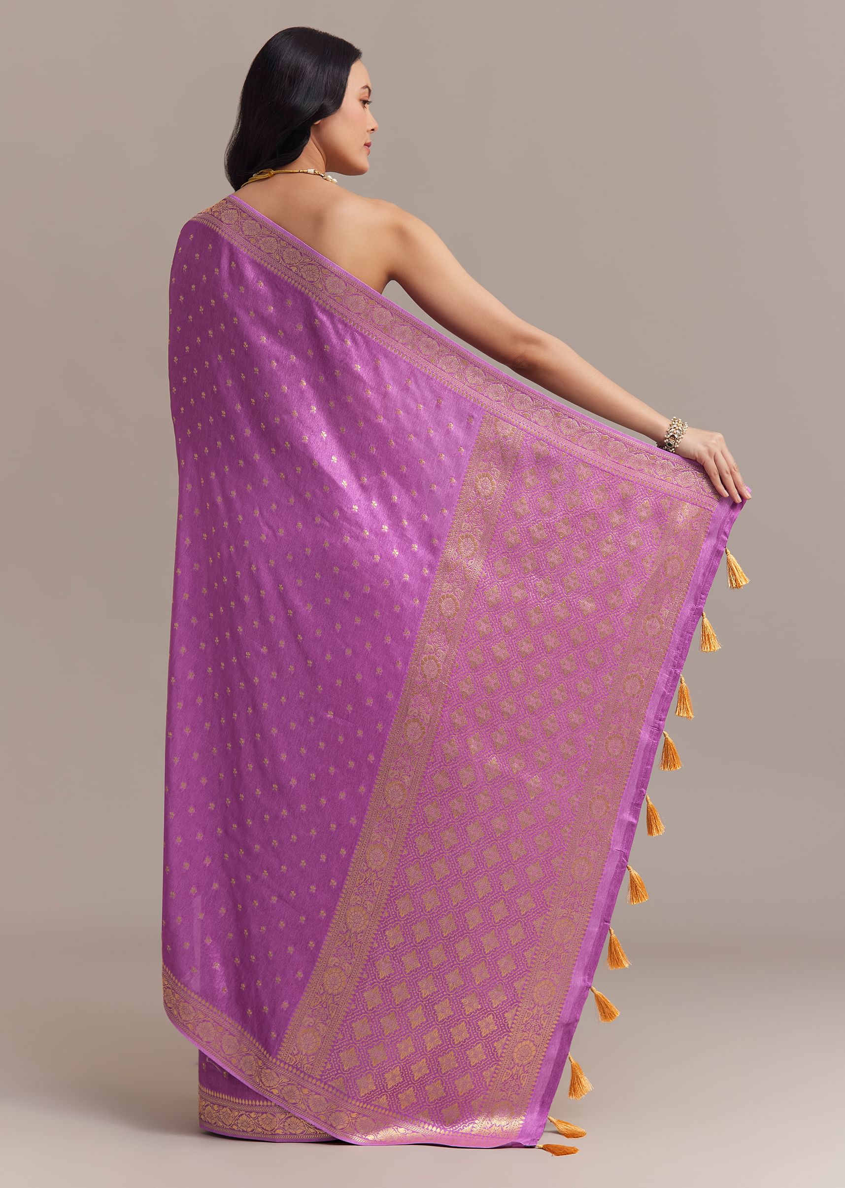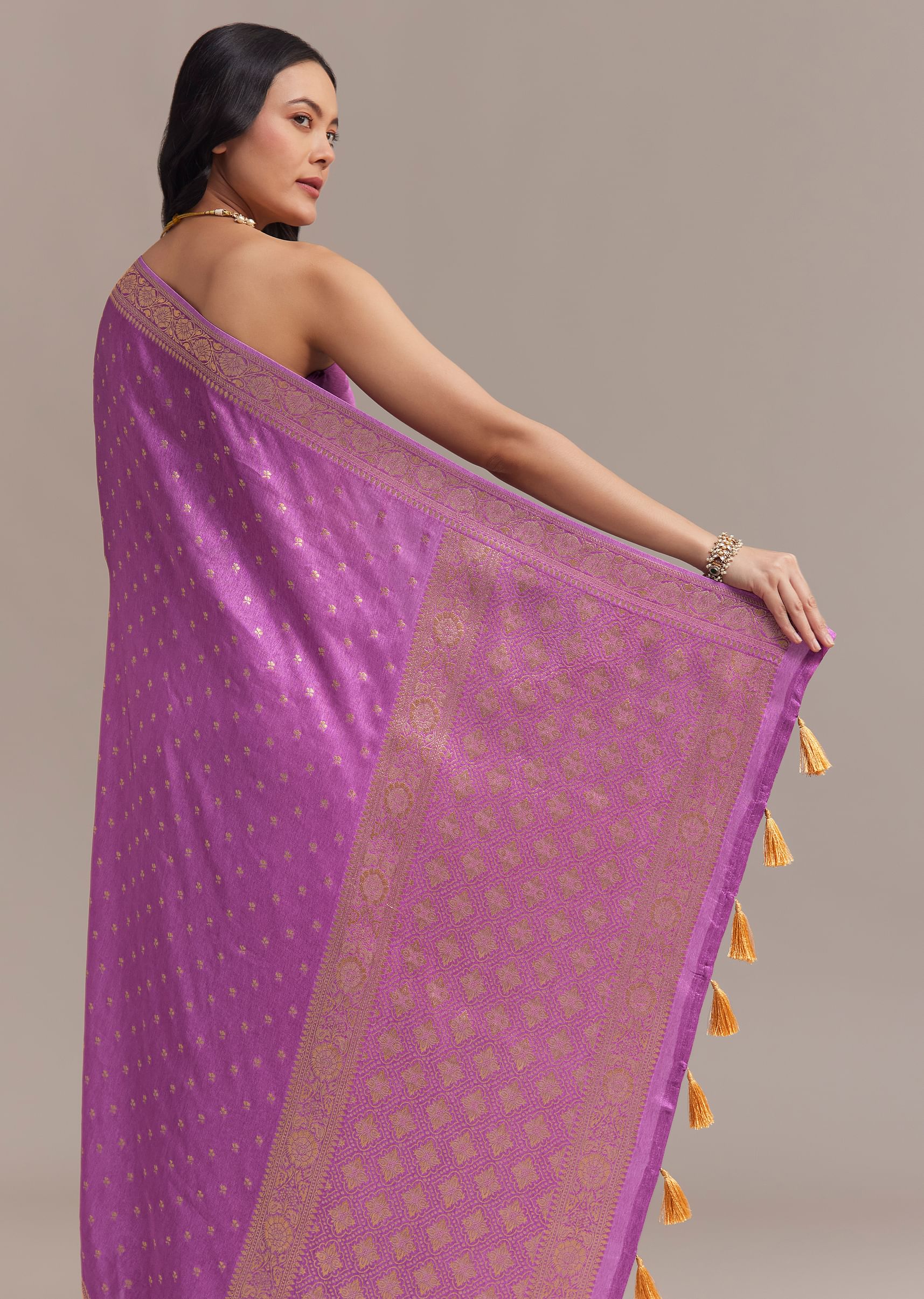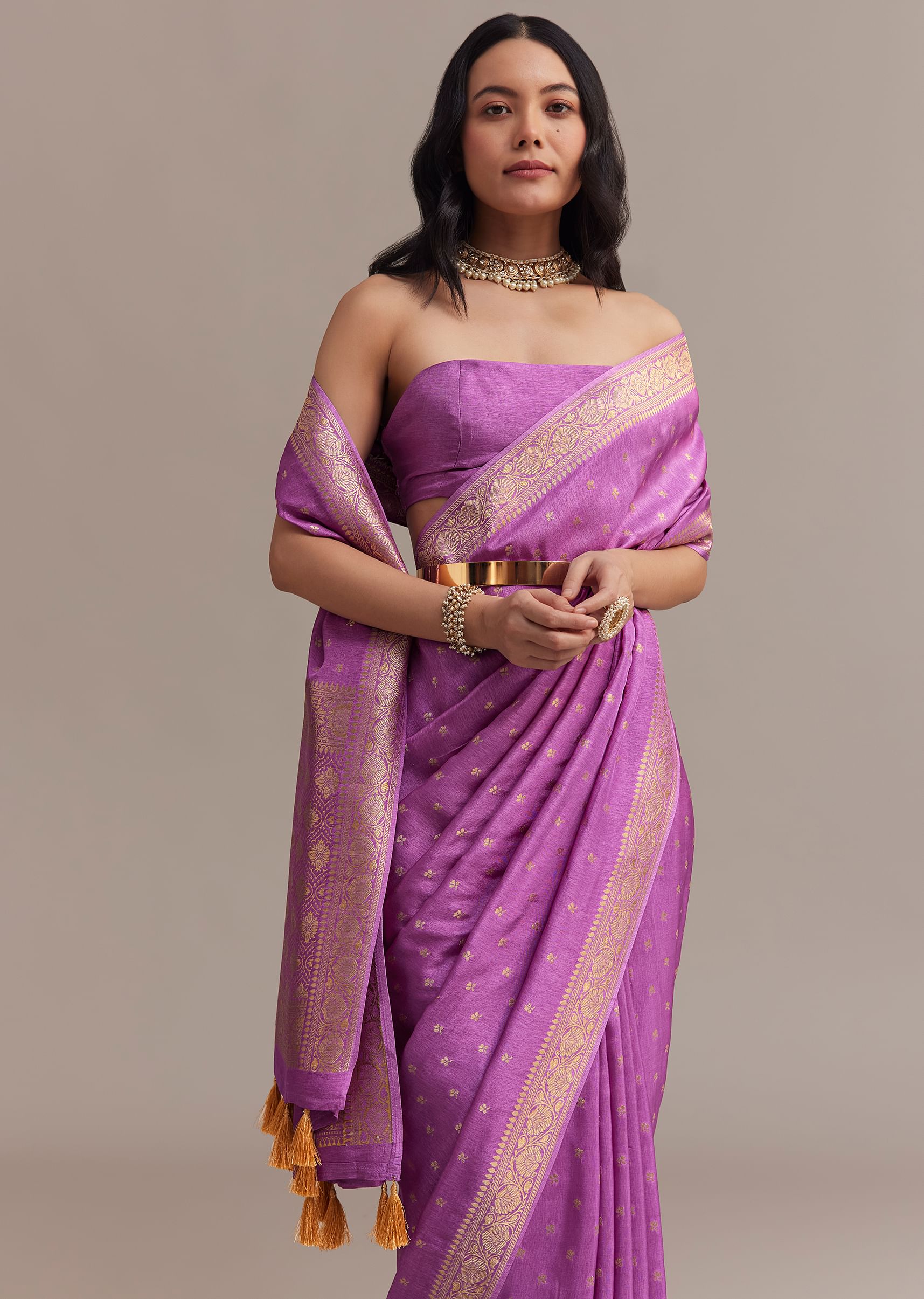 Violet Tissue Silk Saree With Butti Work And Chanderi Zari Border