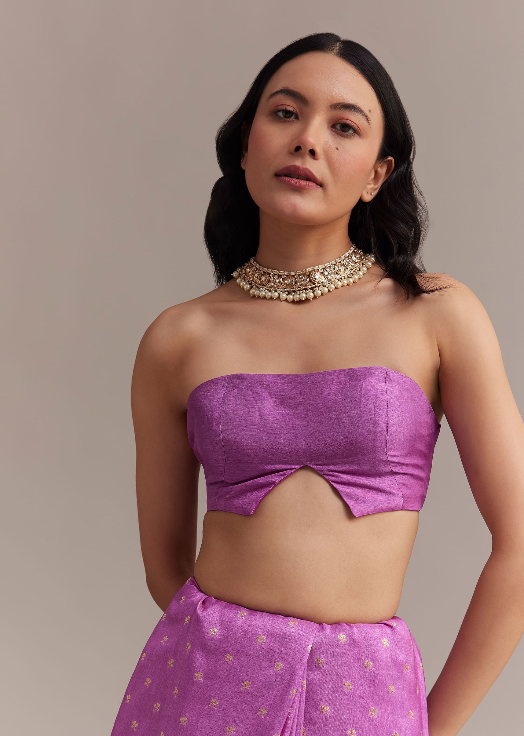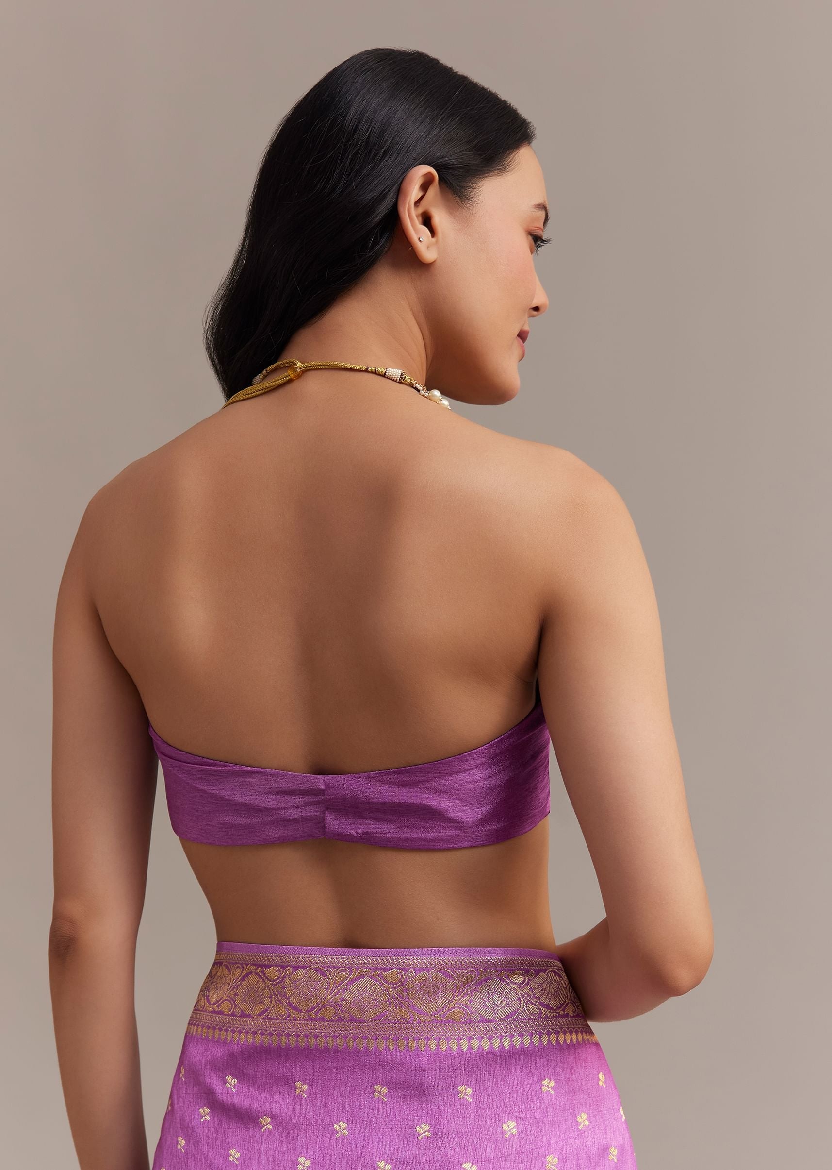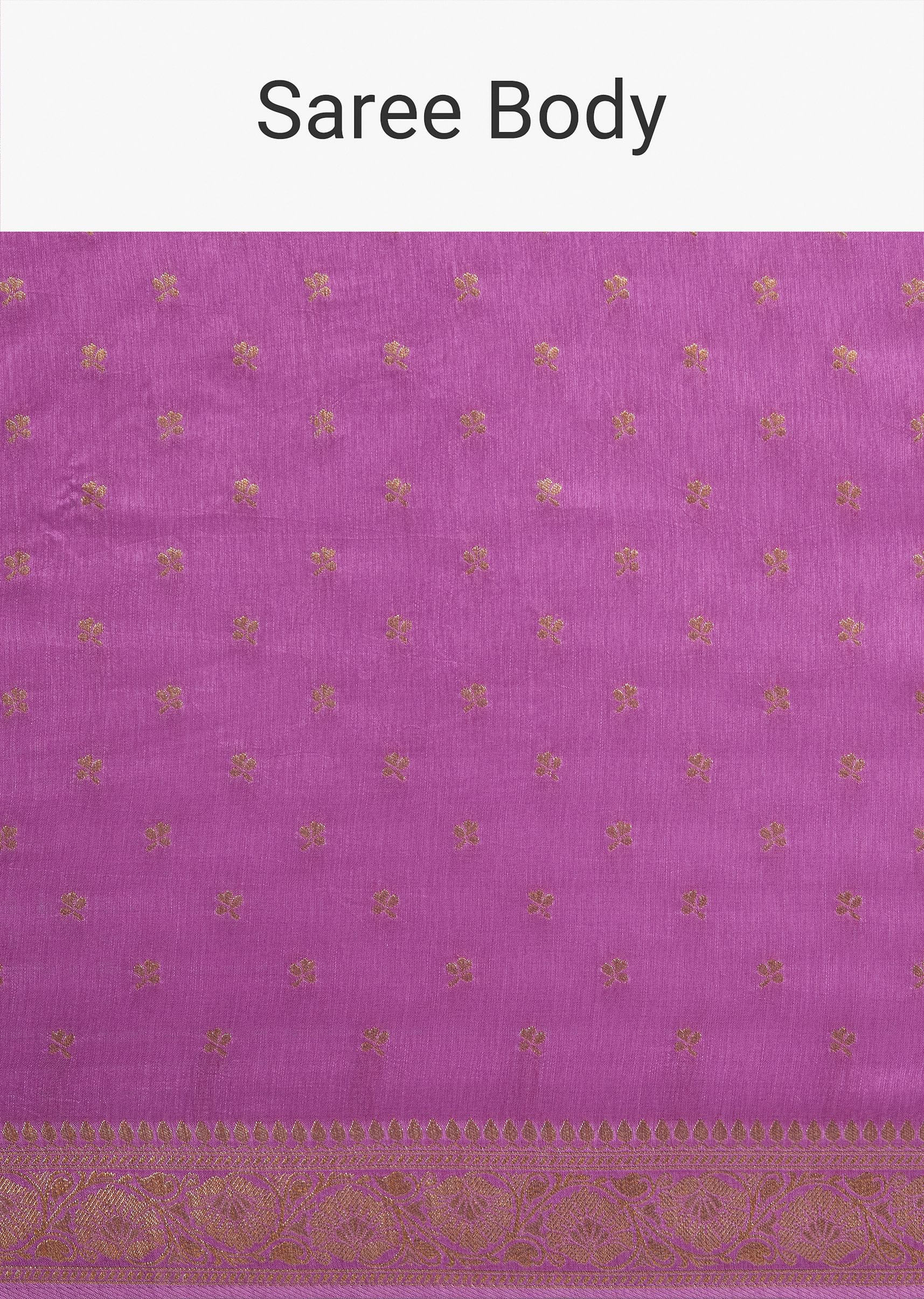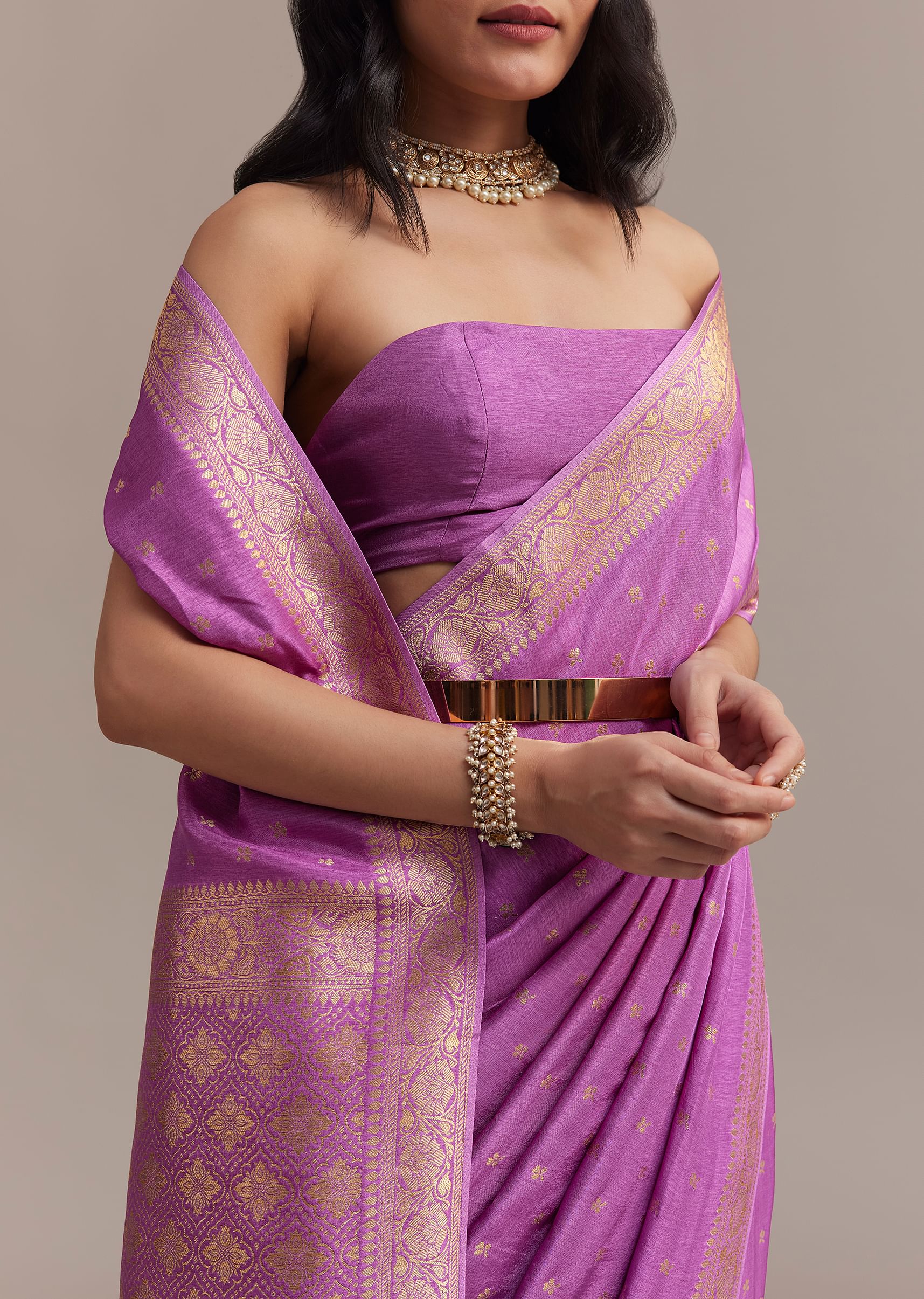 Violet Tissue Silk Saree With Butti Work And Chanderi Zari Border