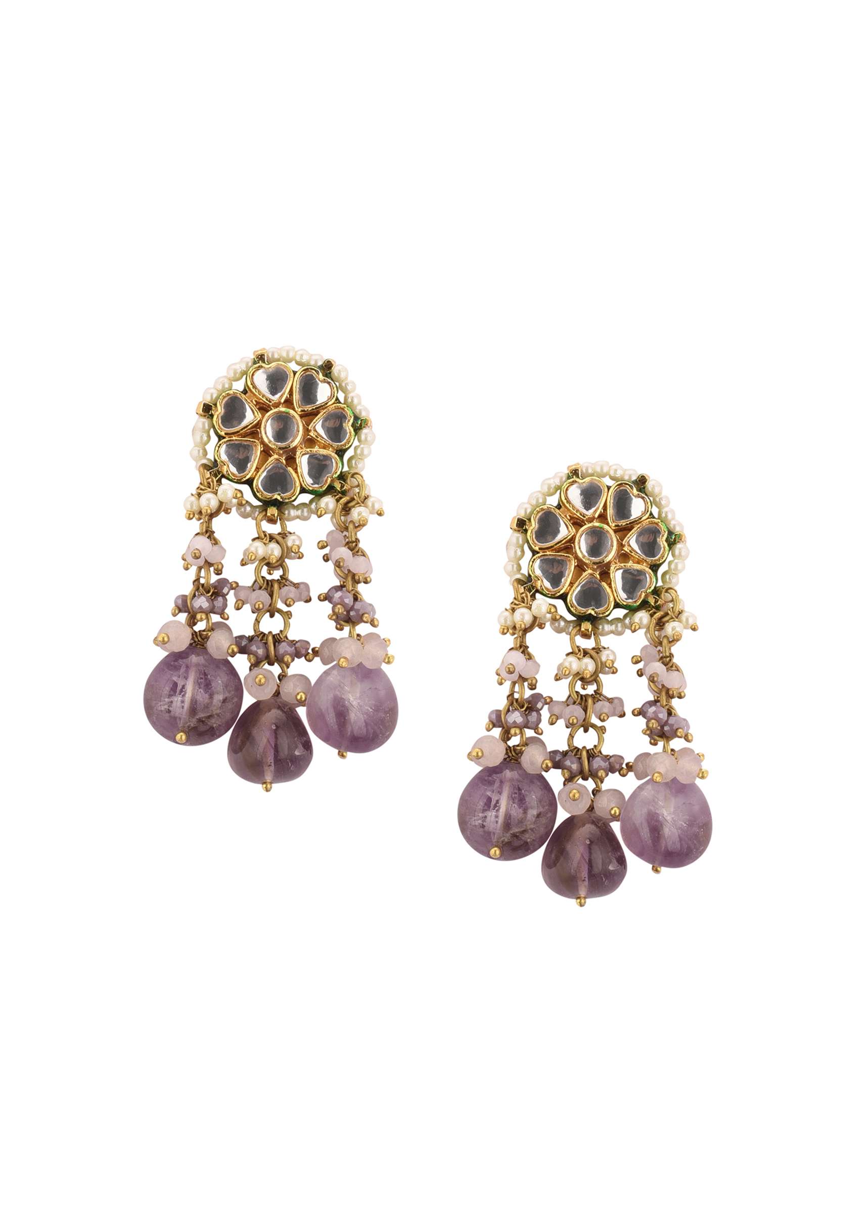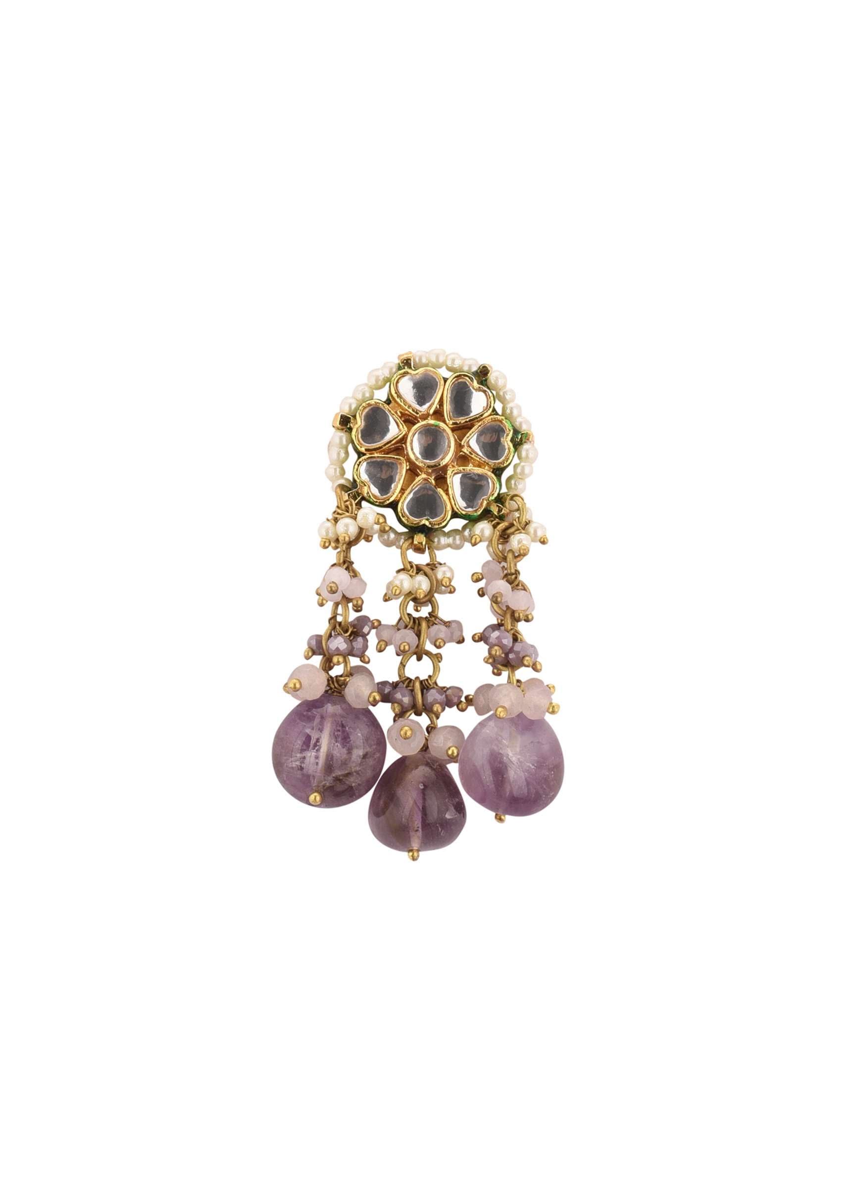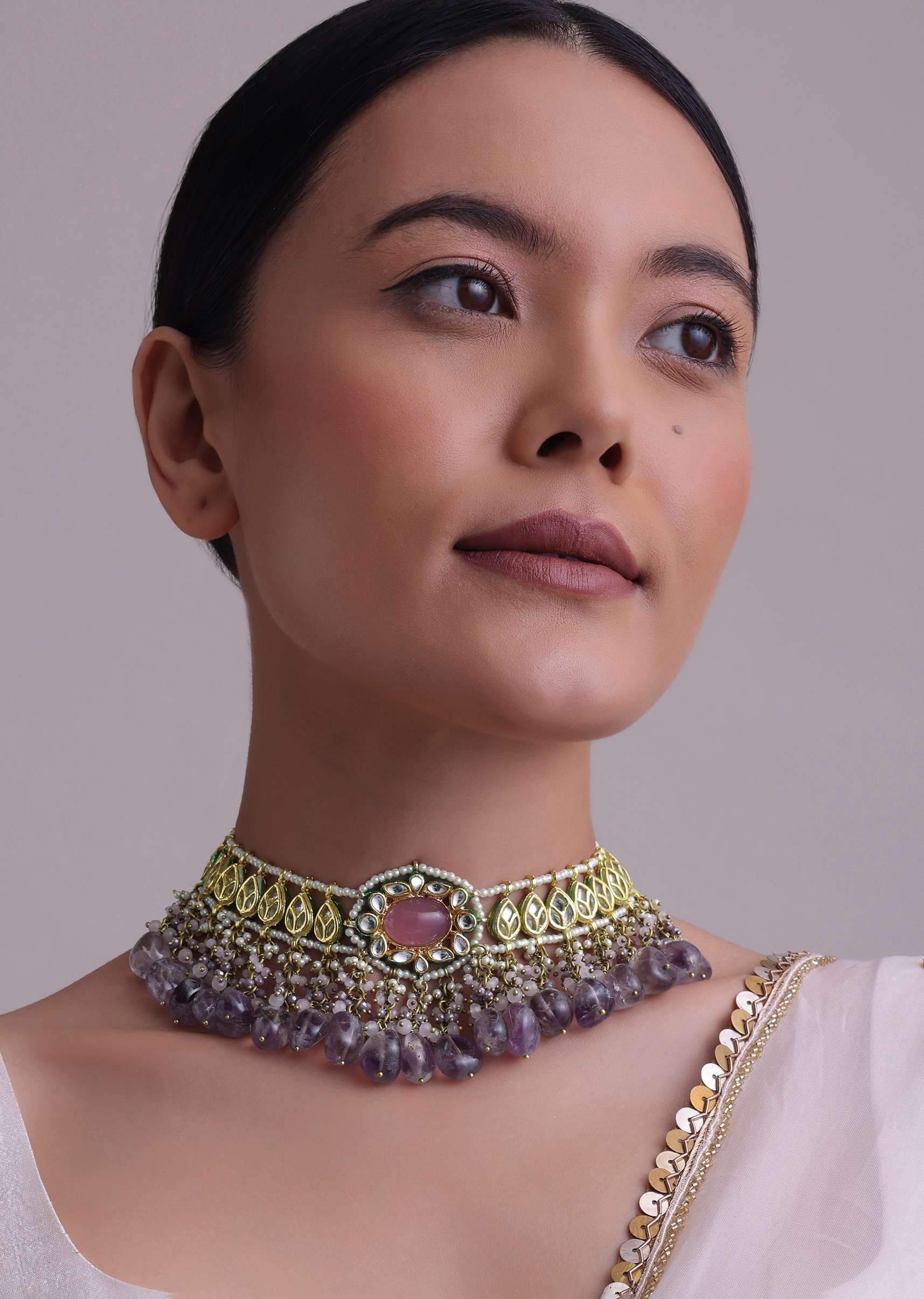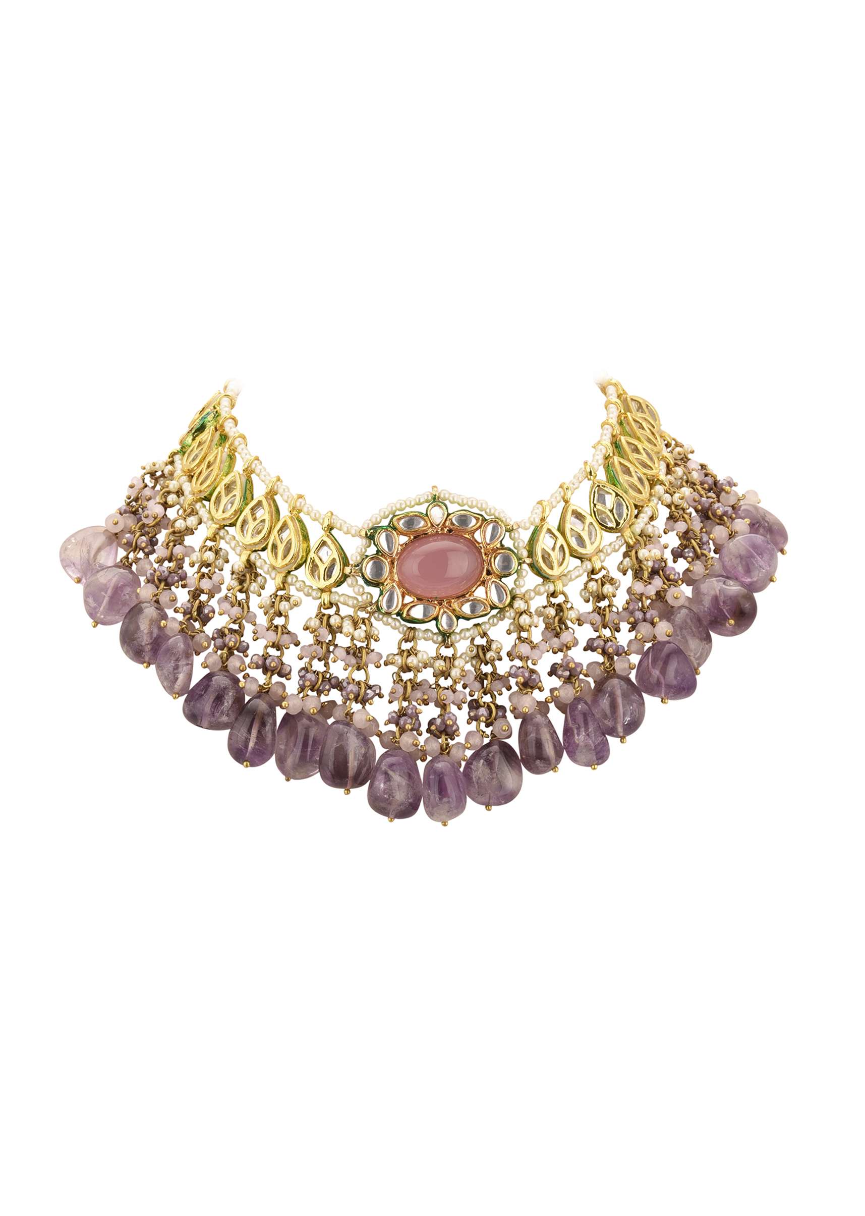 Voilet Toned Gold-Finish Kundan Choker Necklace Set With Colourful Meenakari Work In Mix Metal