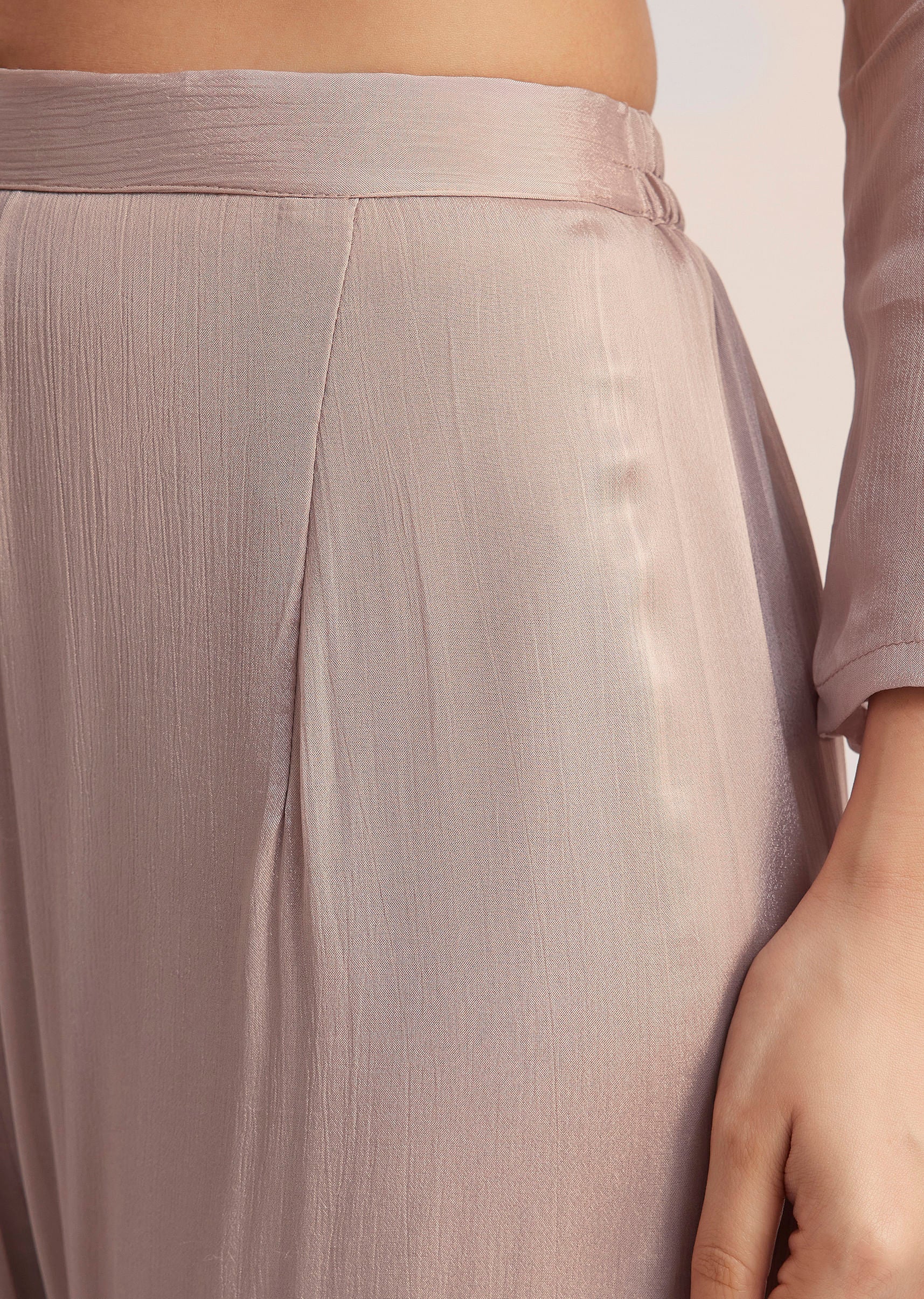 Elevate Your Festive Wardrobe With This Warm Grey Chinon Kurta Set Featuring A Matching Sharara And Dupatta. The Ensemble Is Adorned With Intricate Sequins Offering A Subtle Yet Glamorous Appeal... More Product Details