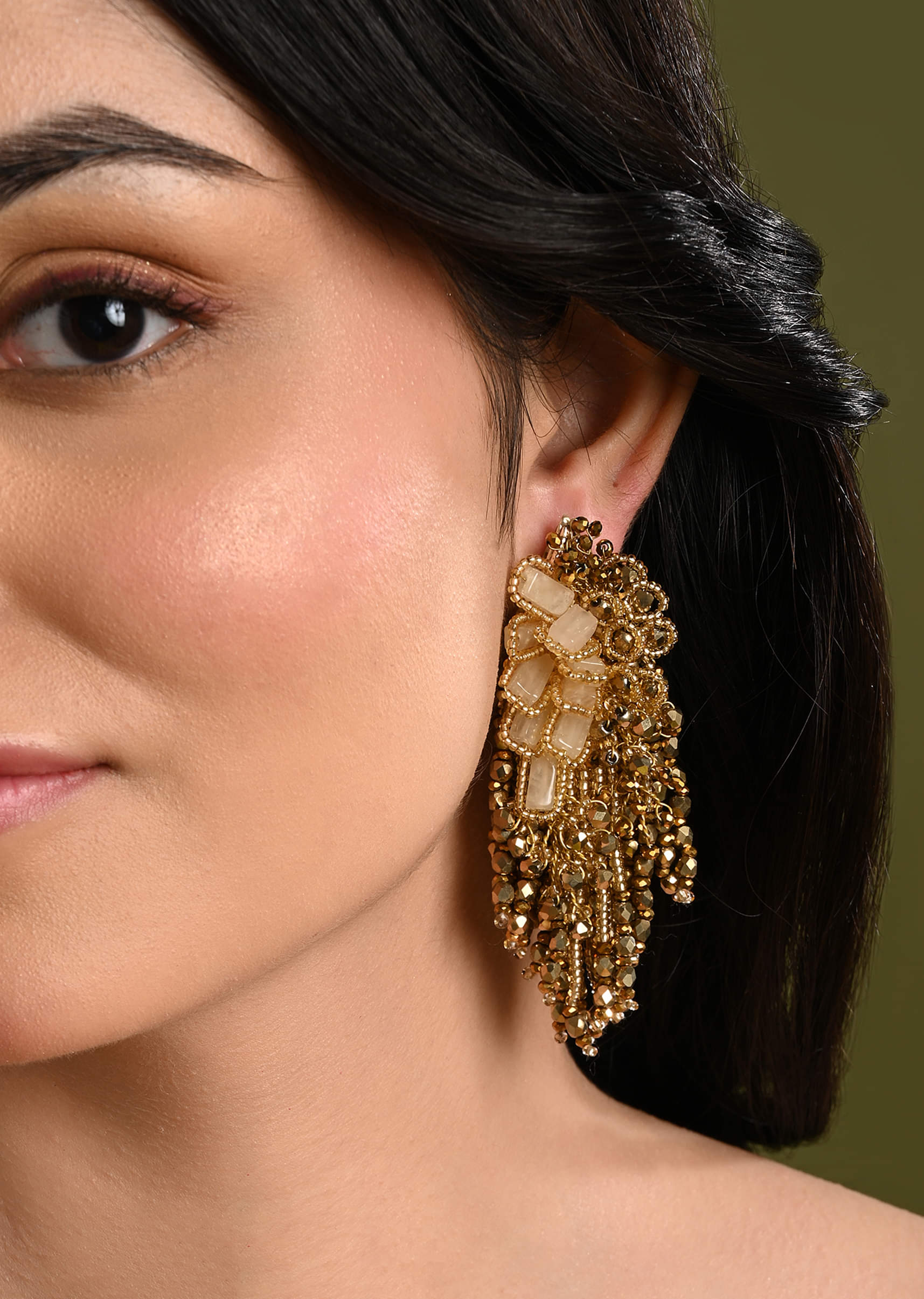 Wedding Gold Plated Golden Ethnic Long Earrings