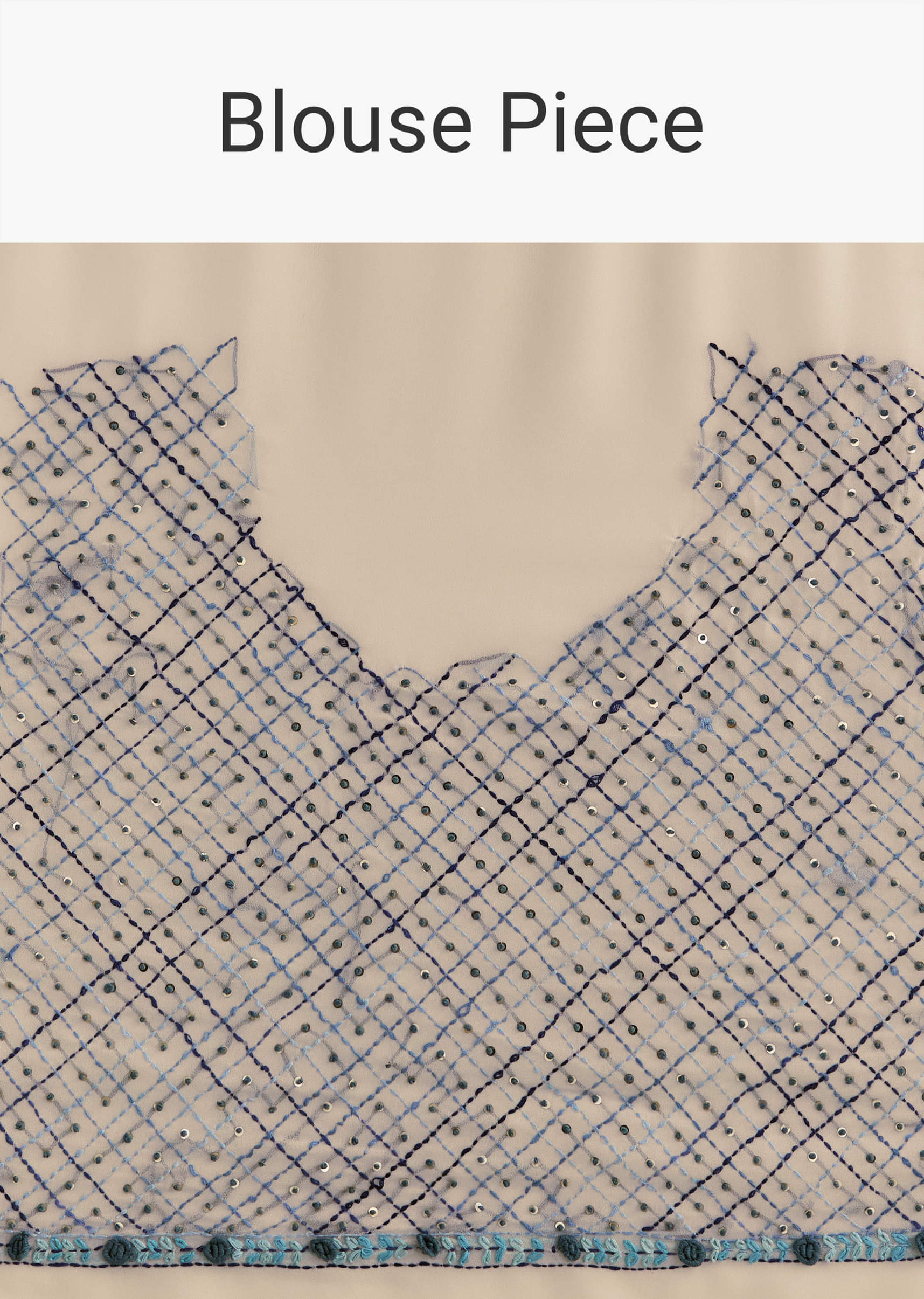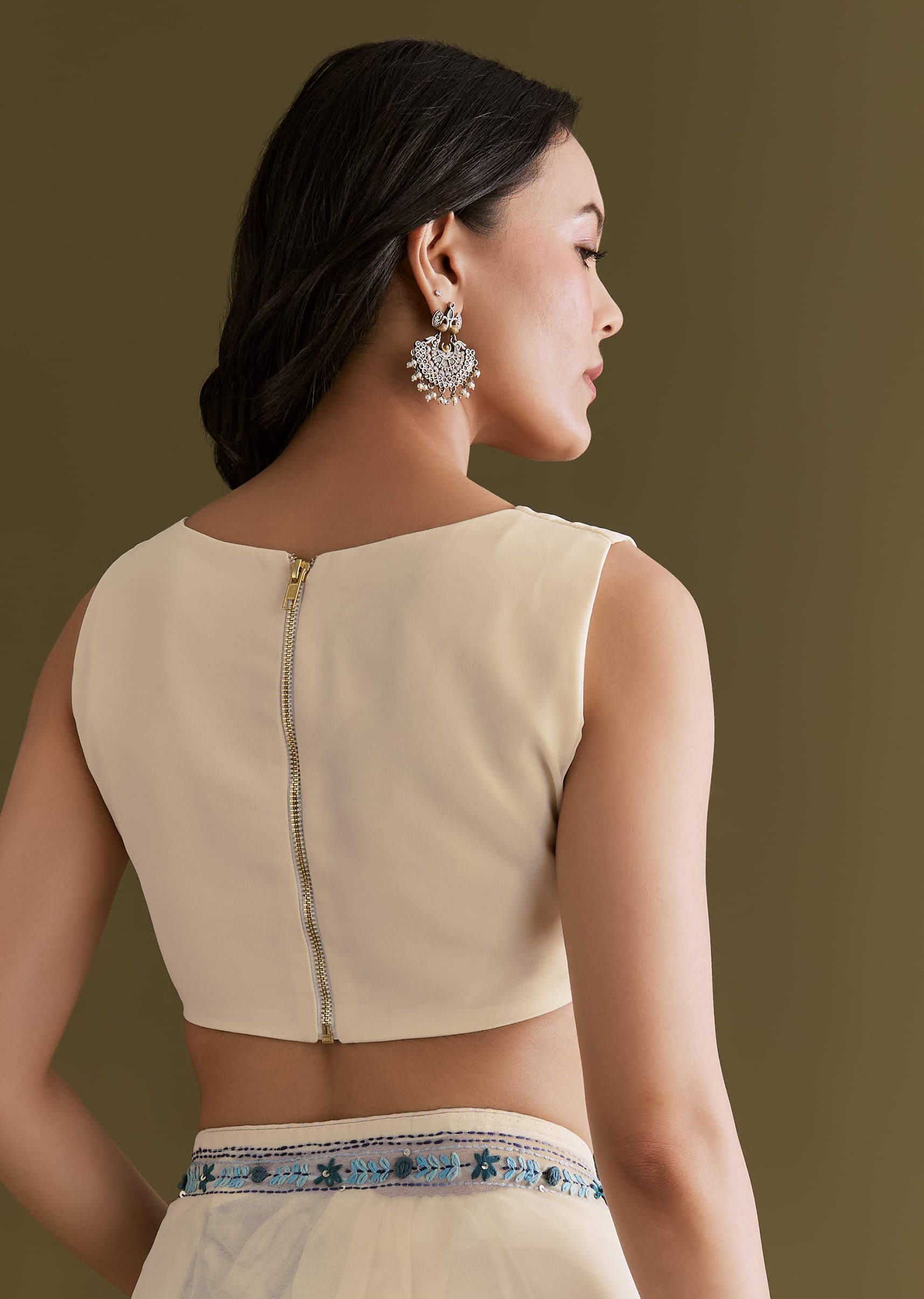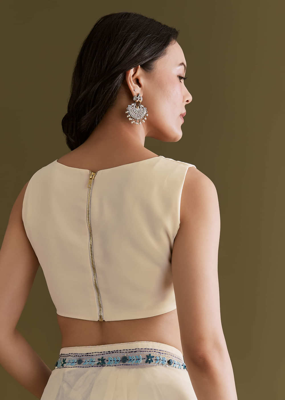 White And Blue Georgette Saree With Kashmiri Bud Embroidery