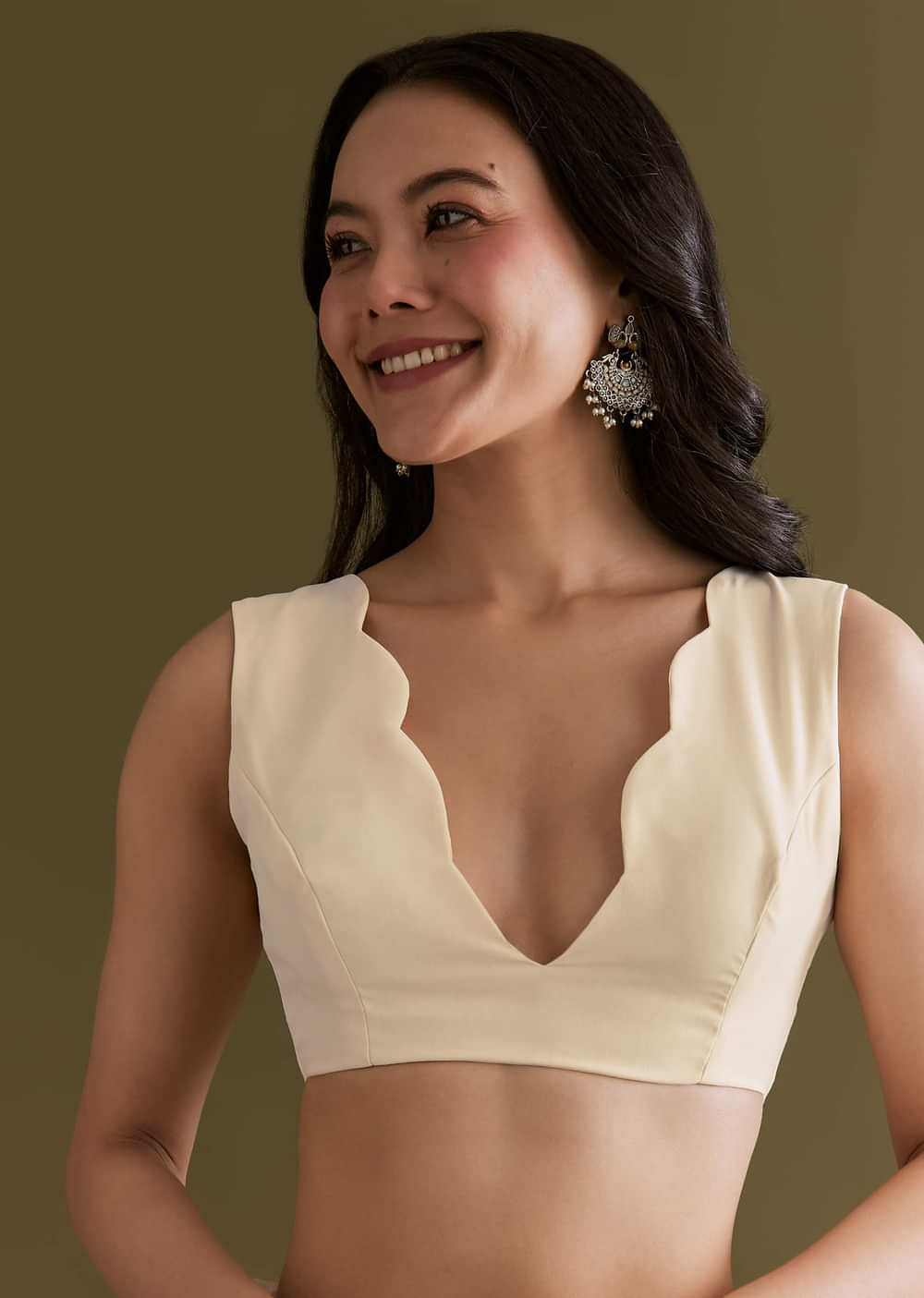 Featuring crisp white georgette adorned with Kashmiri bud work and finished with a striking blue border, this saree evokes the purity of snow kissed by twilight. Embroidery Thread color may vary Awarded as the Most Trusted Brand, we're delivering styles you love, just as promised.