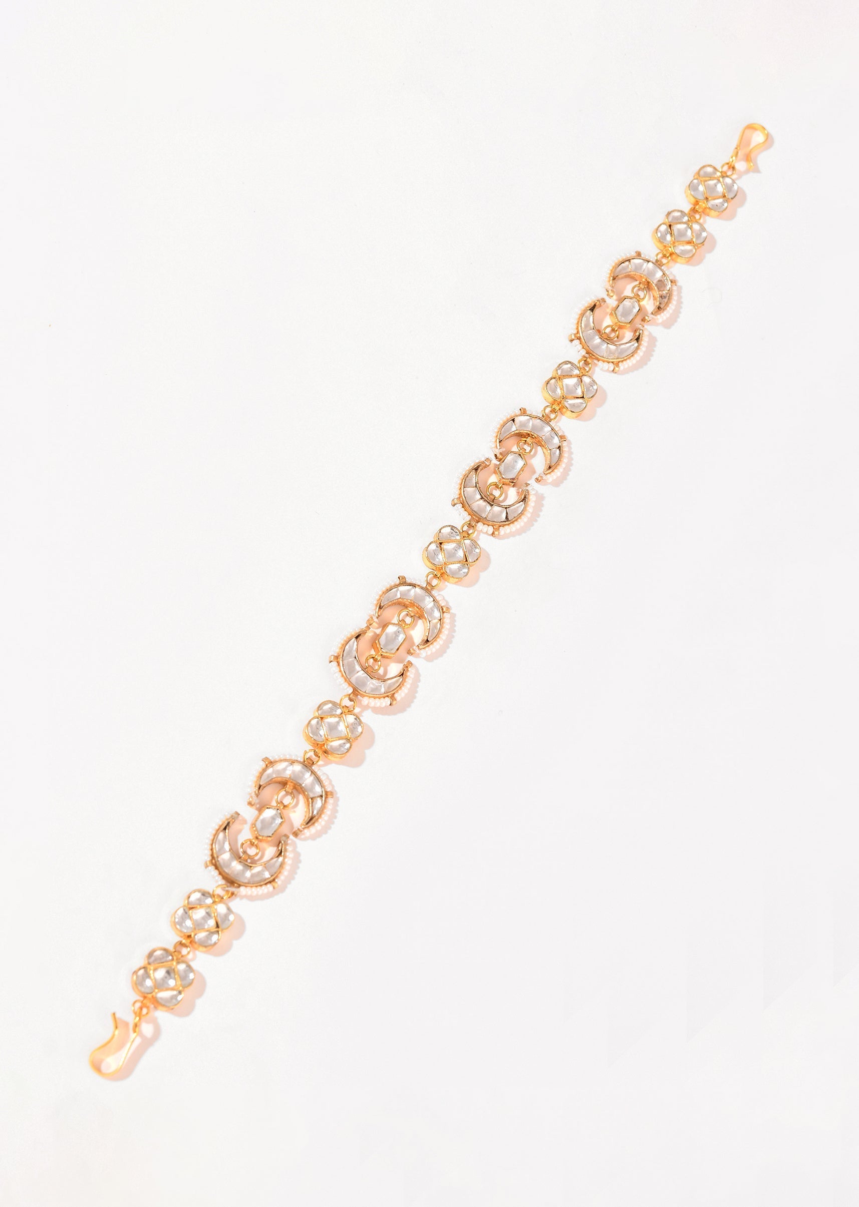 White and Gold Crescent Motif Kundan Mathapatti