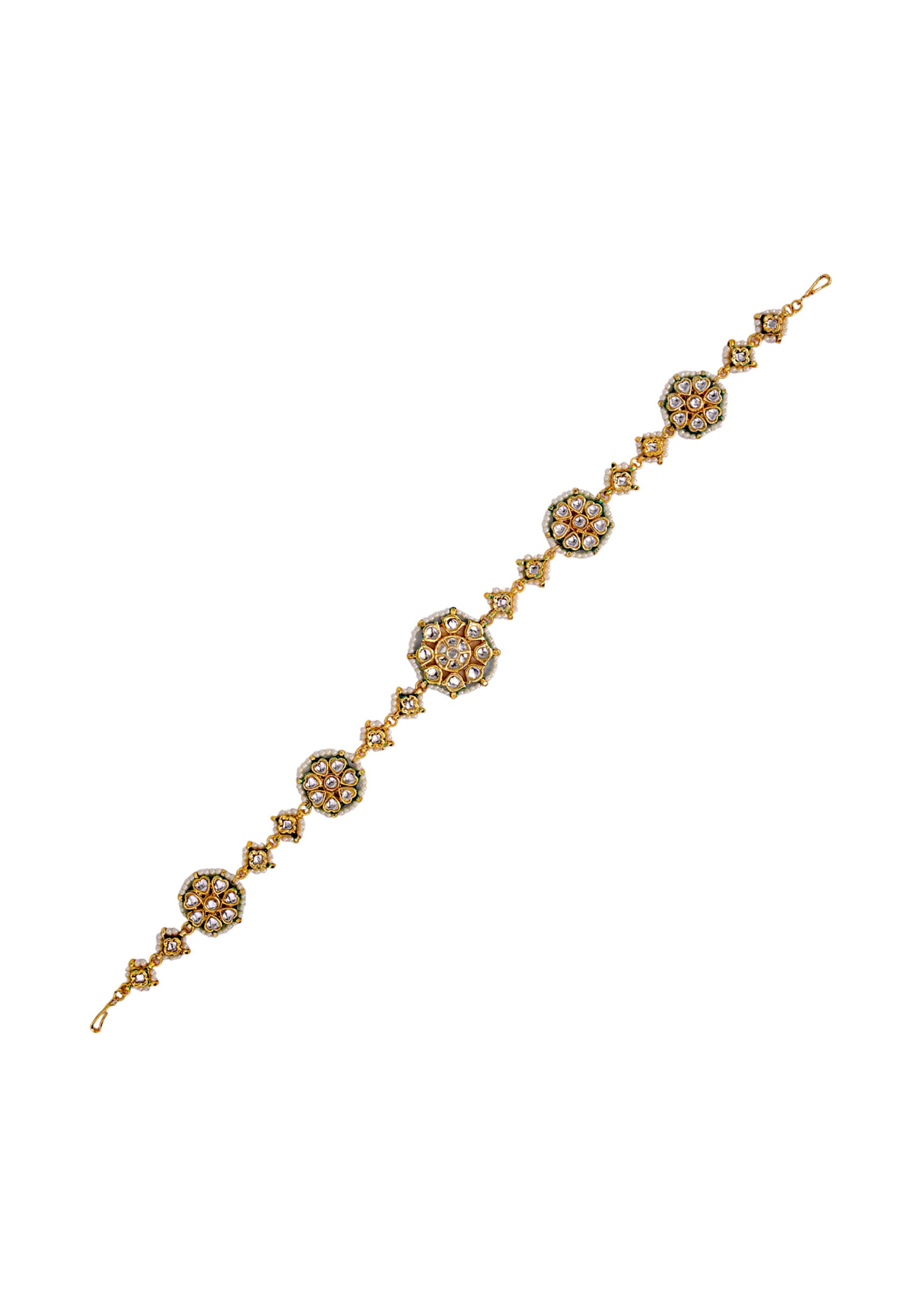 White and Gold Kundan Floral Mathapatti