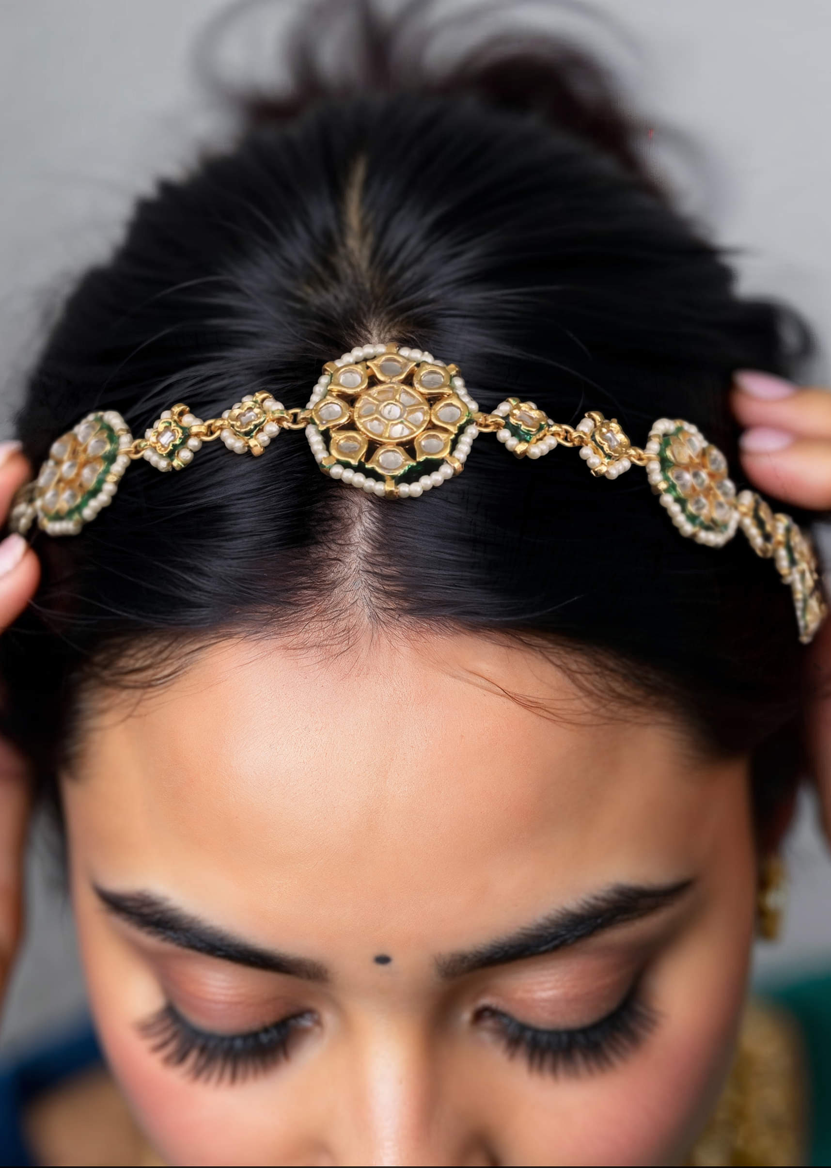 Complements gold-embroidered outfits and enhances traditional attire with a sophisticated finish.Fit Tips: Adjustable design with secure hooks ensures stability and comfortable wear throughout the event.