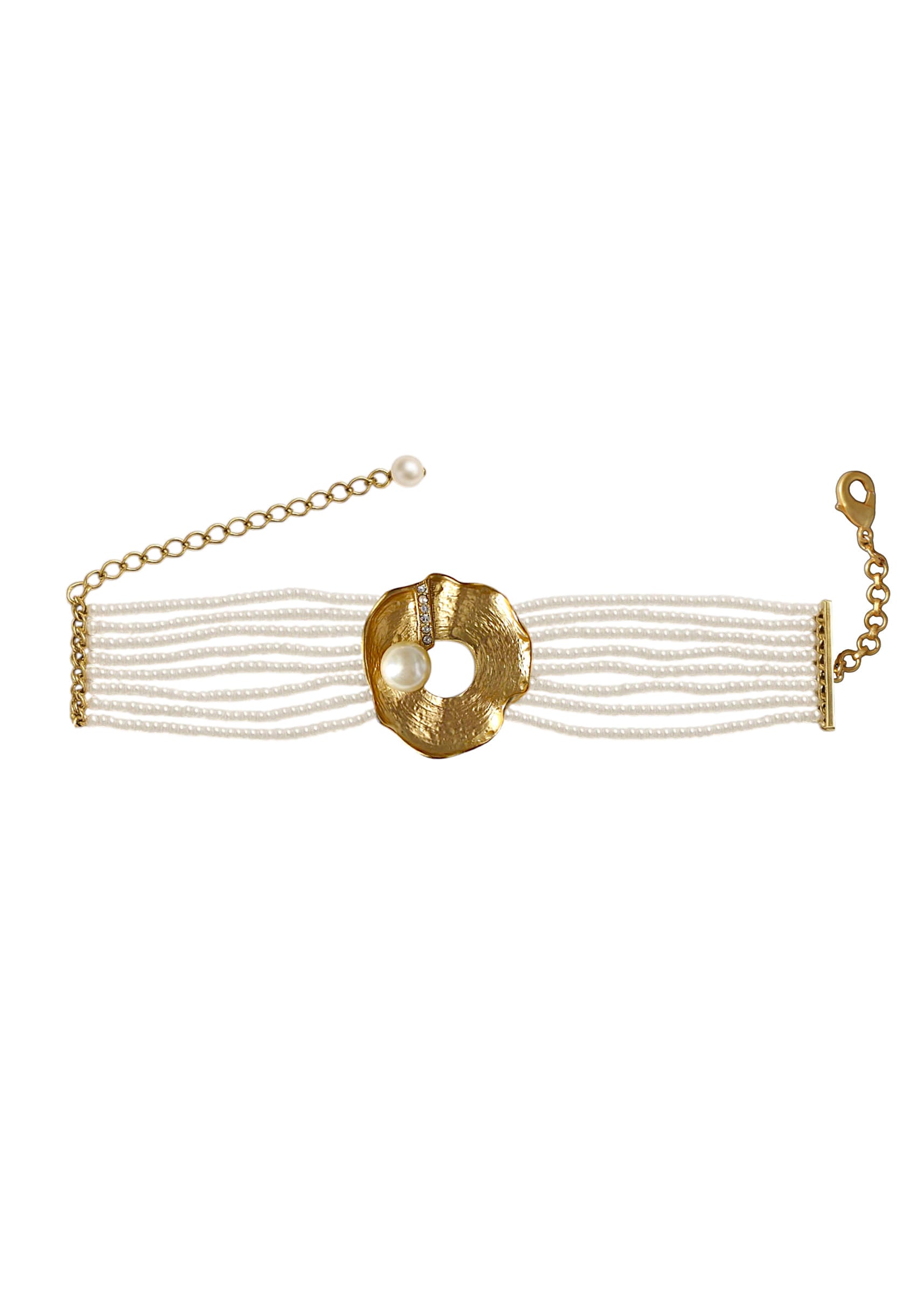 A white layered pearl necklace featuring multiple strands of lustrous pearls with elegant detailing, exuding timeless sophistication. Perfect for adding a classic and refined touch to bridal, festive, or ethnic... More Product Details