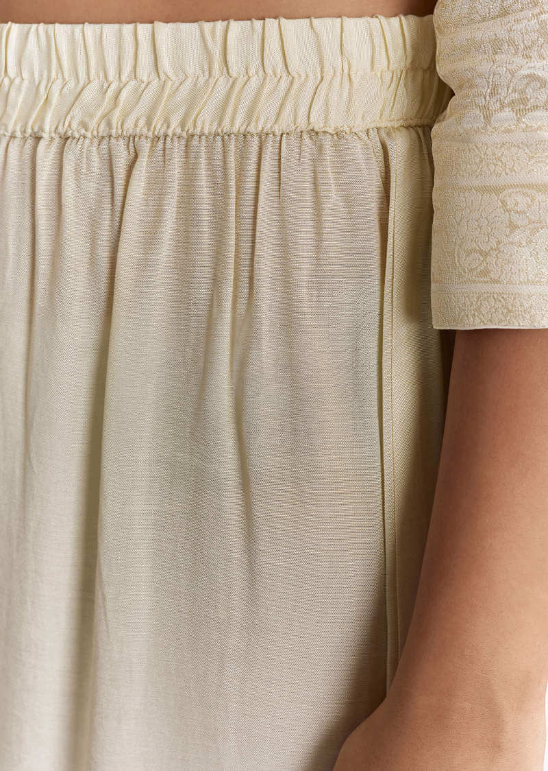 The straight cut kurta and palazzo offer a flattering fit for all body types