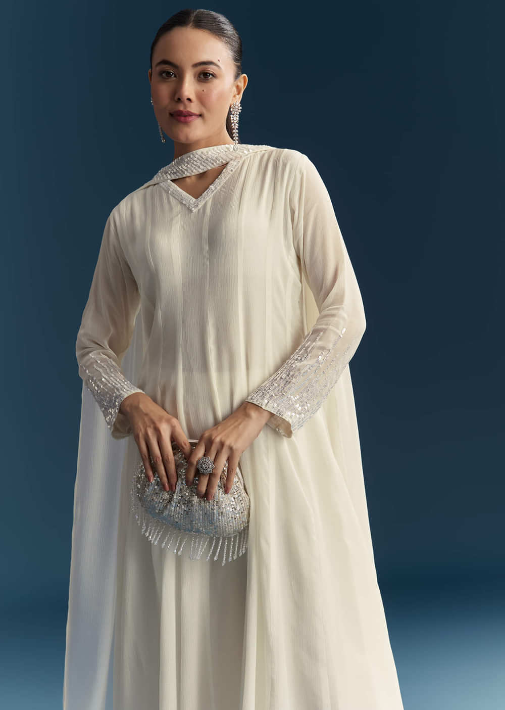 Sequins work adds a subtle glow to this white chinon anarkali suit. The flared silhouette feels graceful and keeps the outfit light to move in. It is perfect for moments... More Product Details