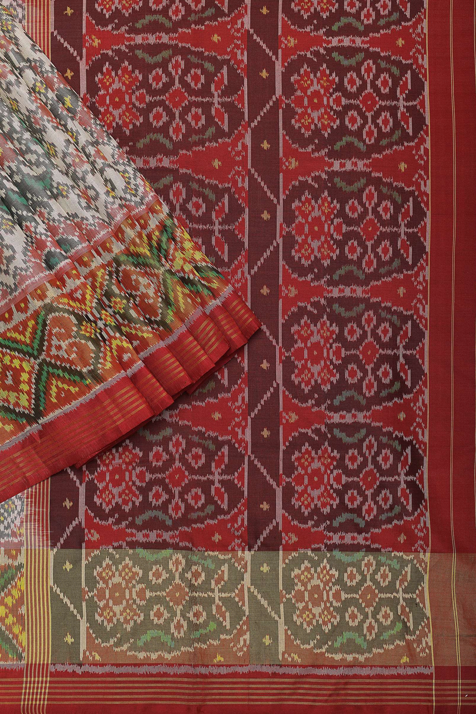 White Cotton Silk Saree With Ikat Patola Work And Unstitched Blouse Fabric