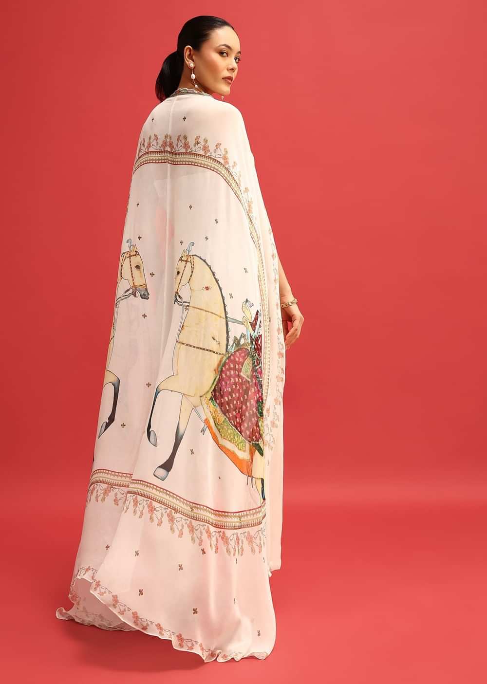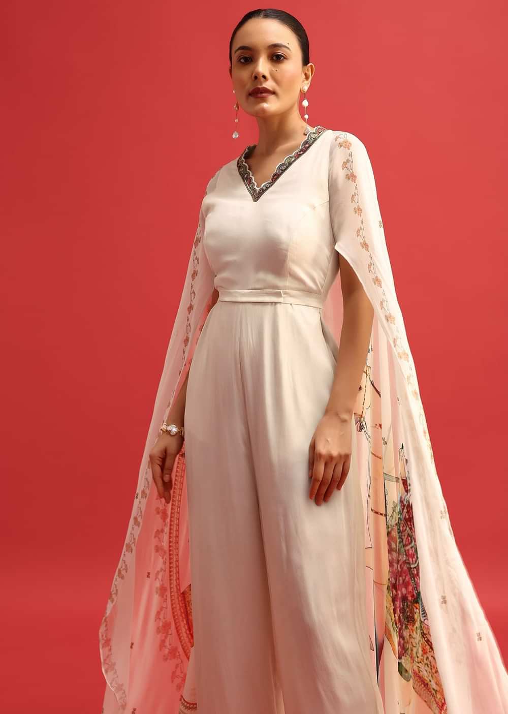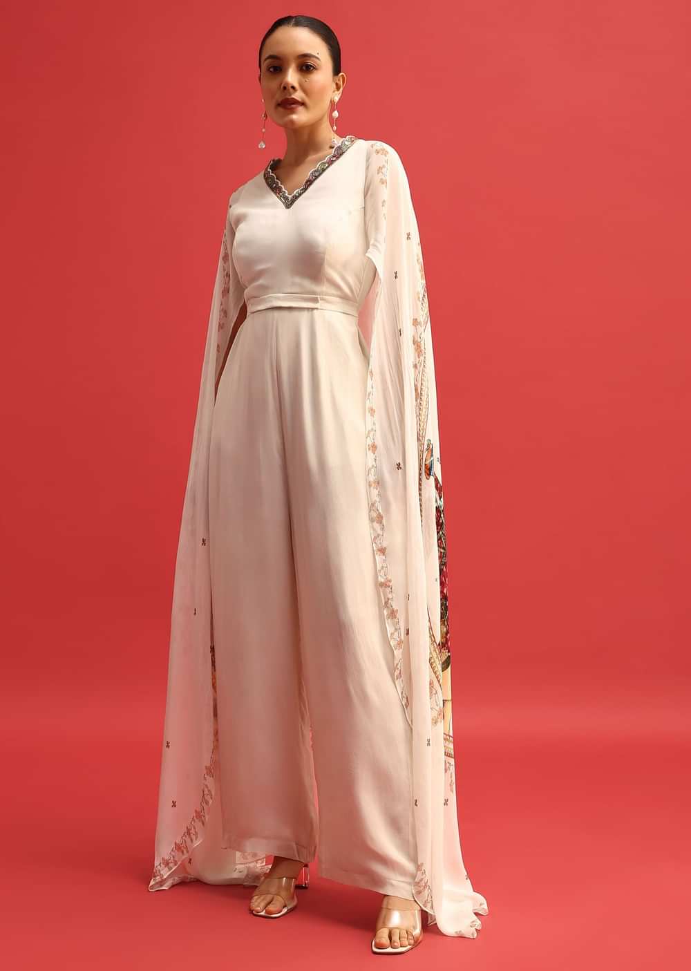 Revitalize your casual look with our white jumpsuit crafted for easy elegance. Fashioned from delicate georgette and adorned with intricate prints cut dana beads and resham work. Awarded as the Most Trusted Brand, we're delivering styles you love, just as promised.