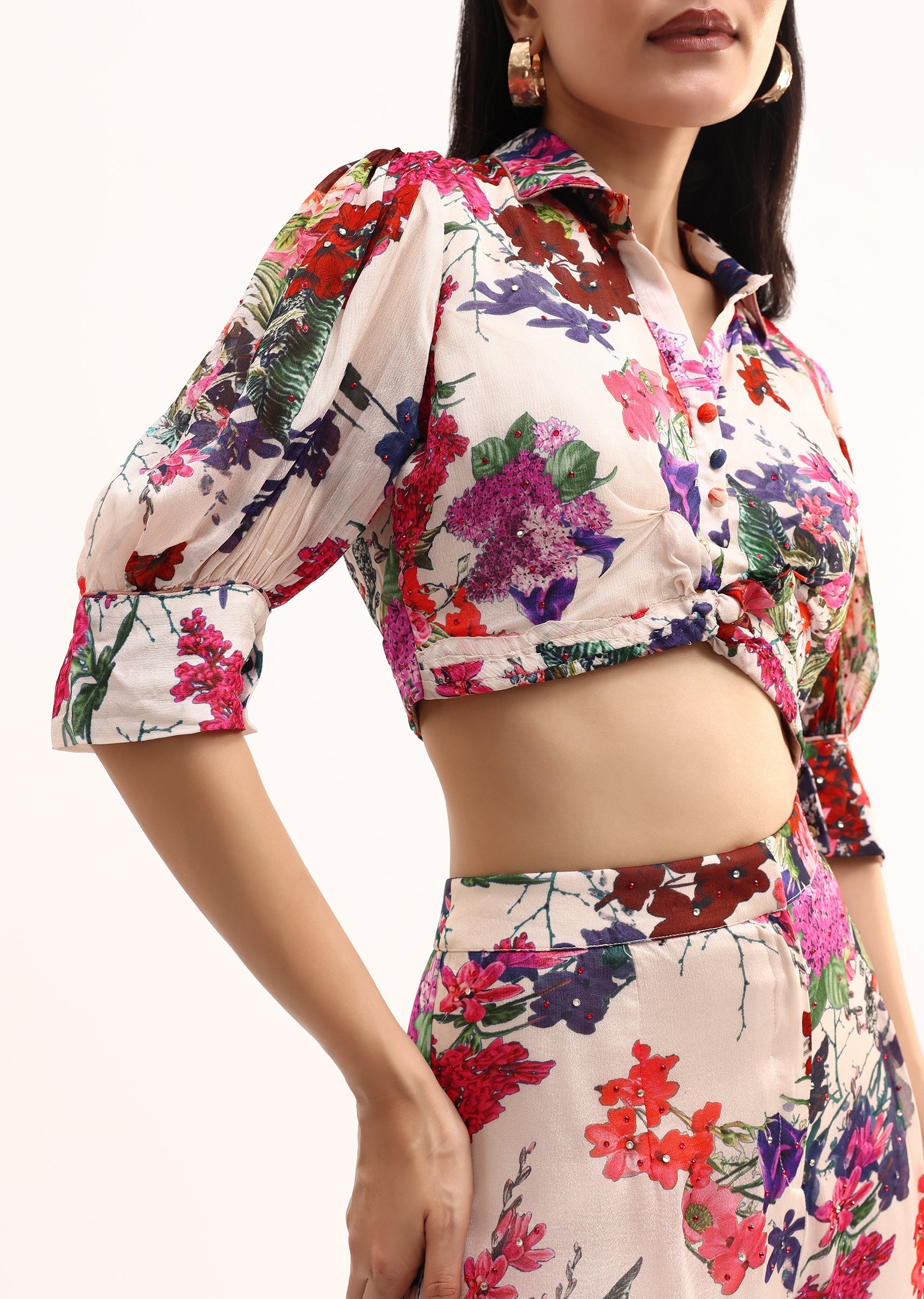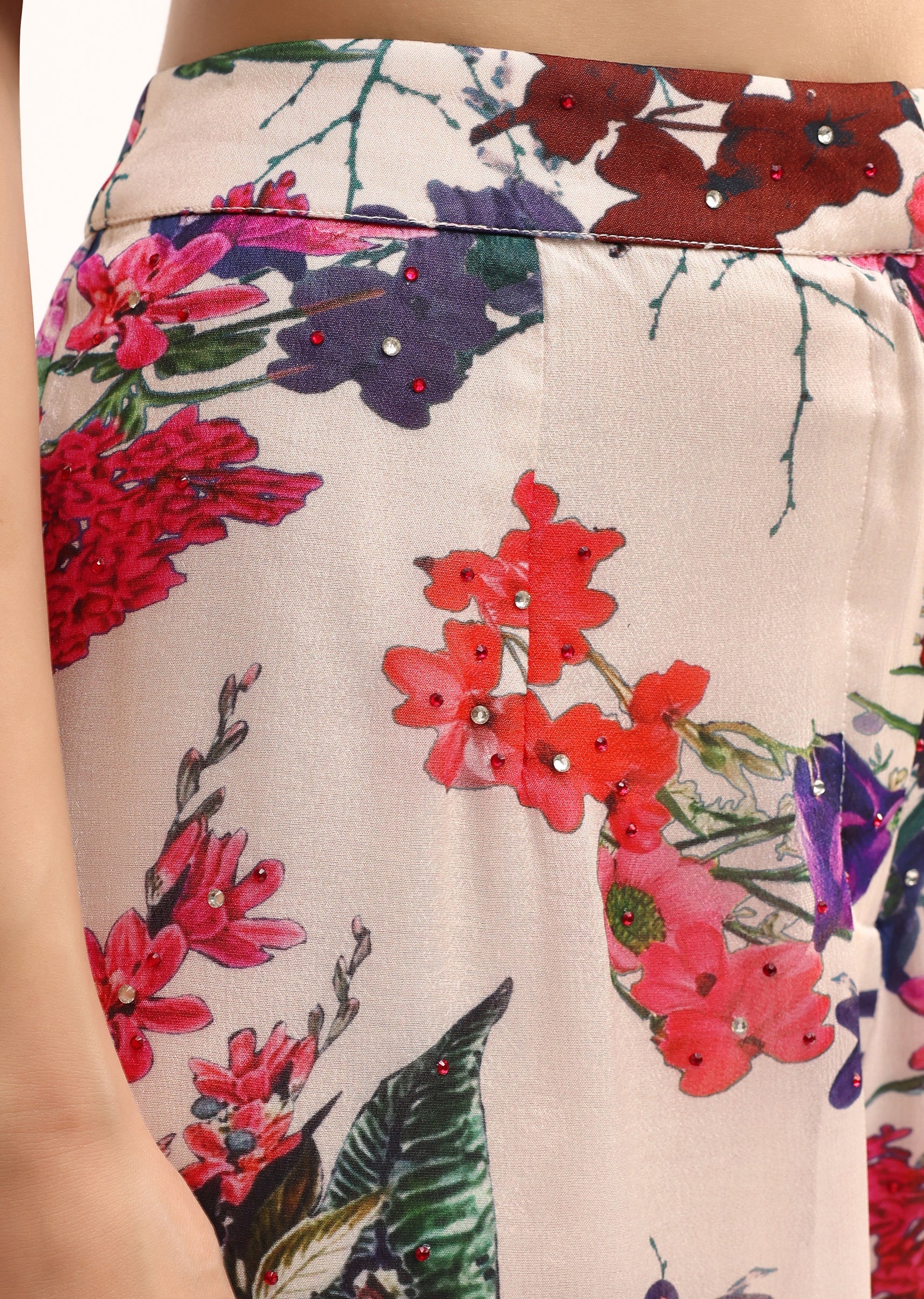 Dance like a dream in this ethereal duo. Our white chinon crop top shimmers with delicate floral blooms while breezy palazzo whisper of summer days adding a touch of elegant... More Product Details
