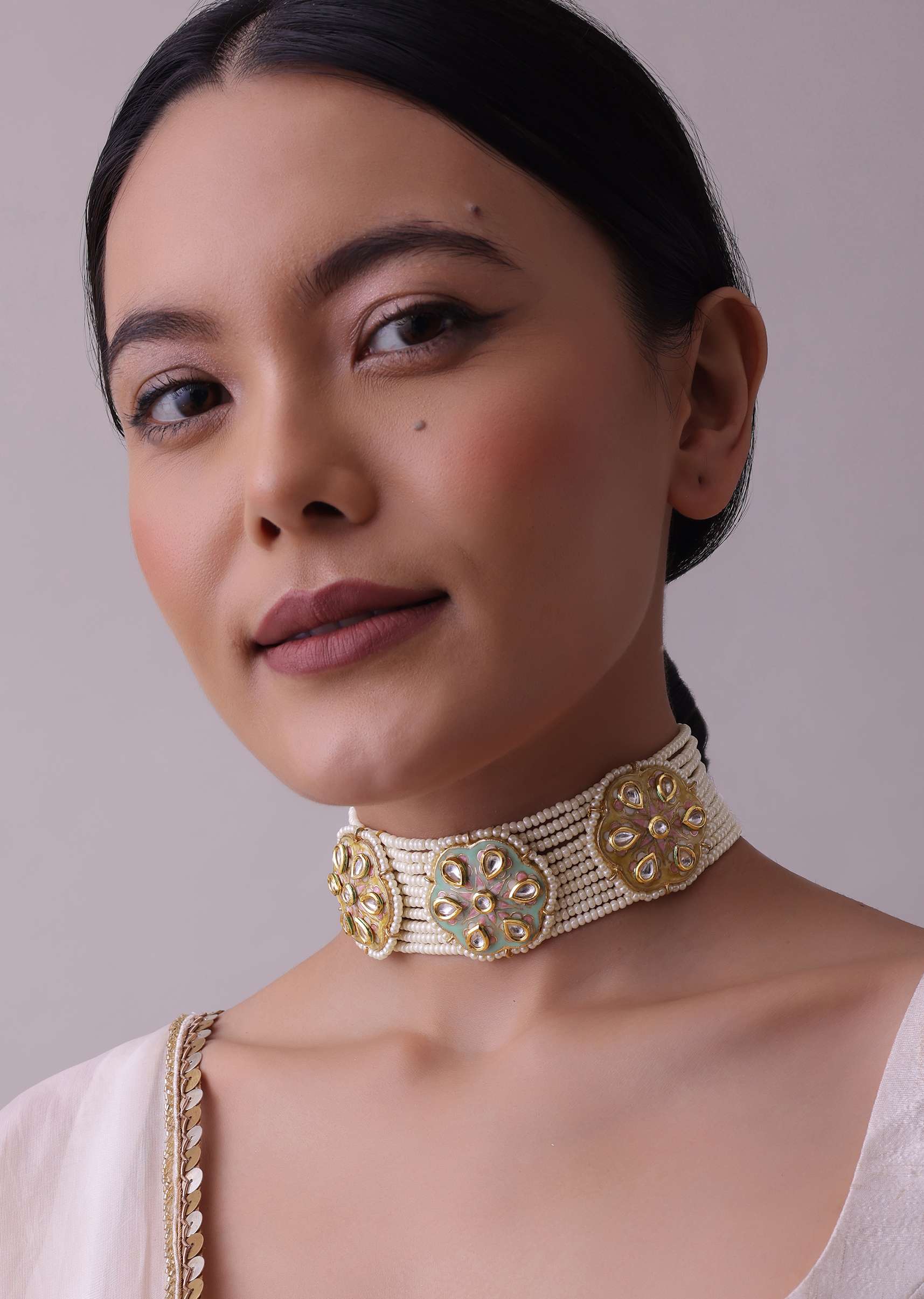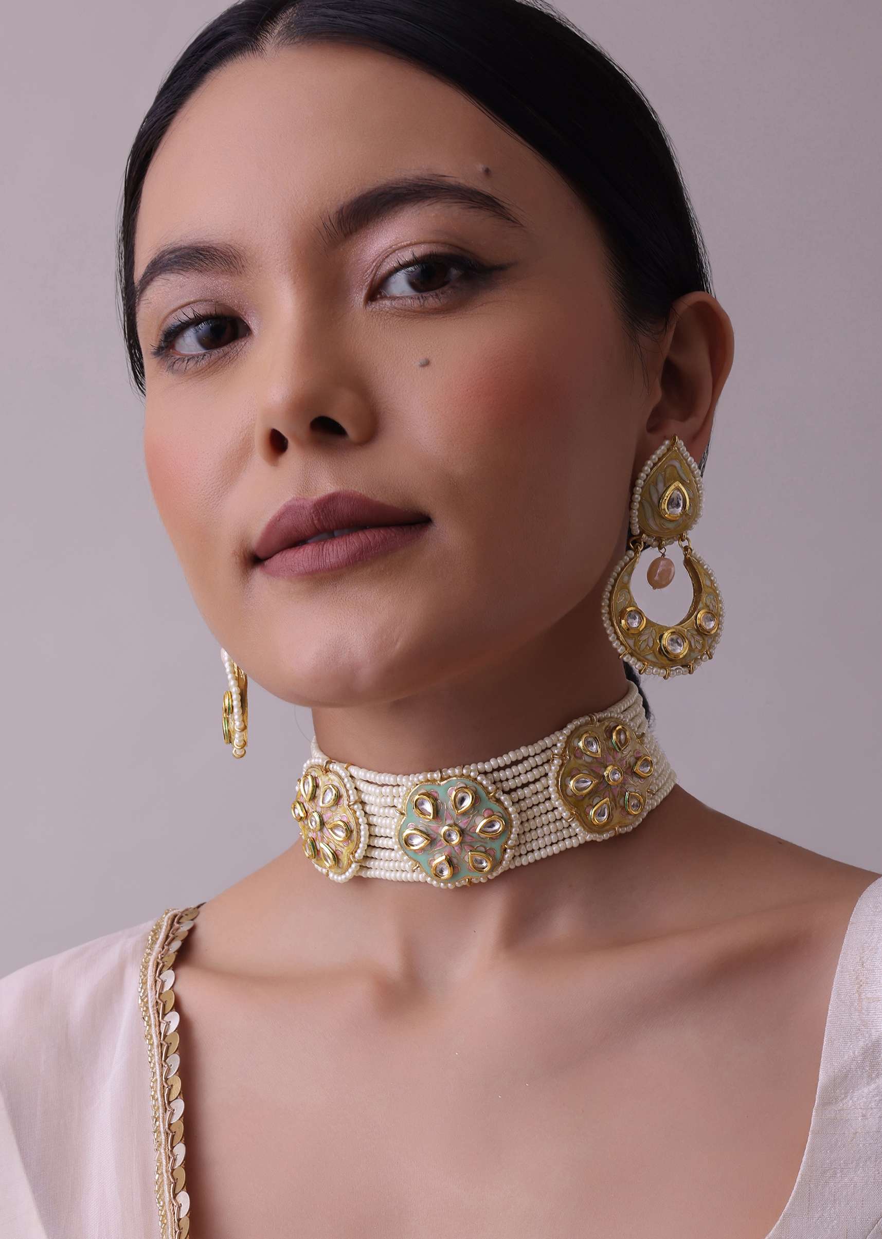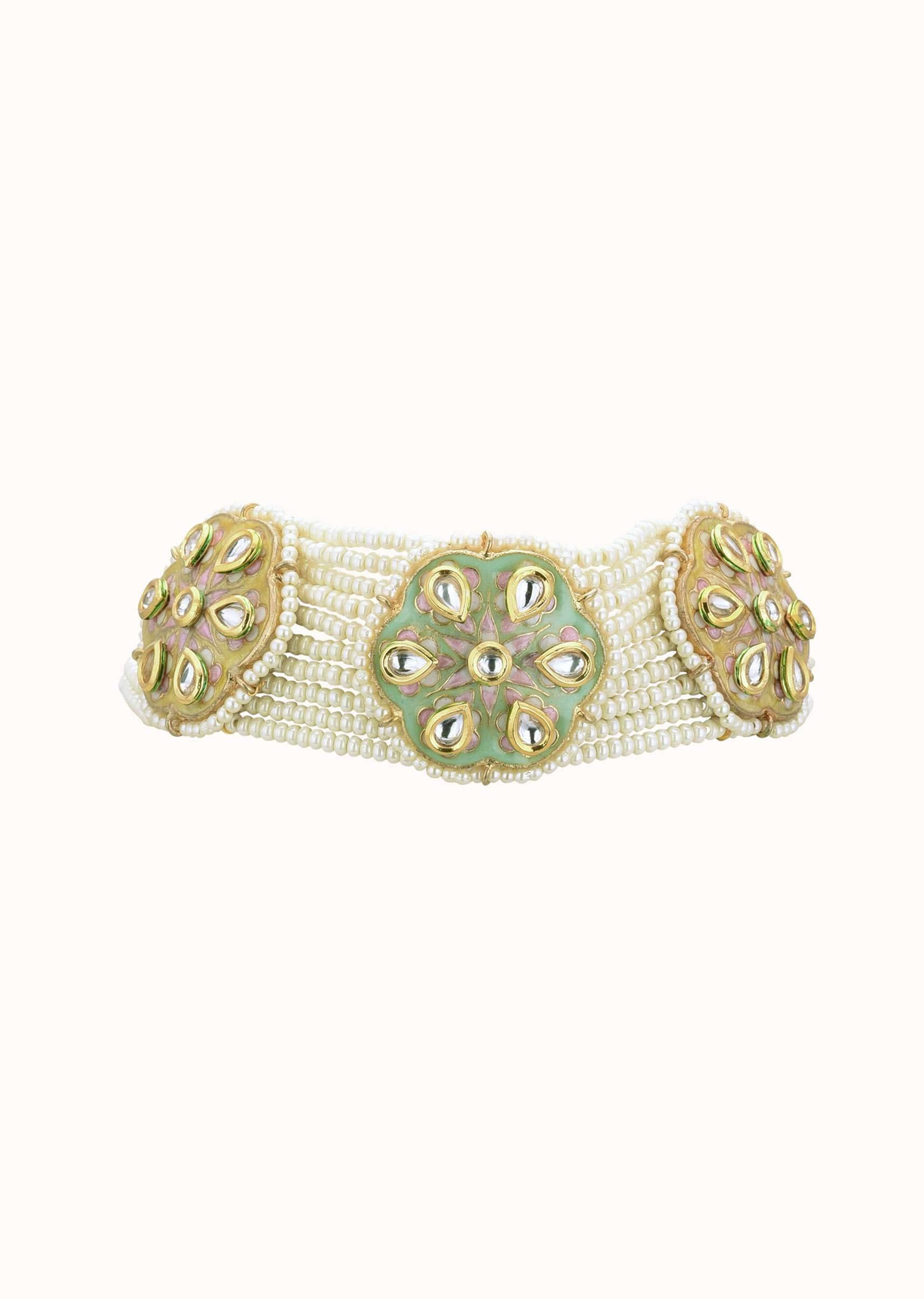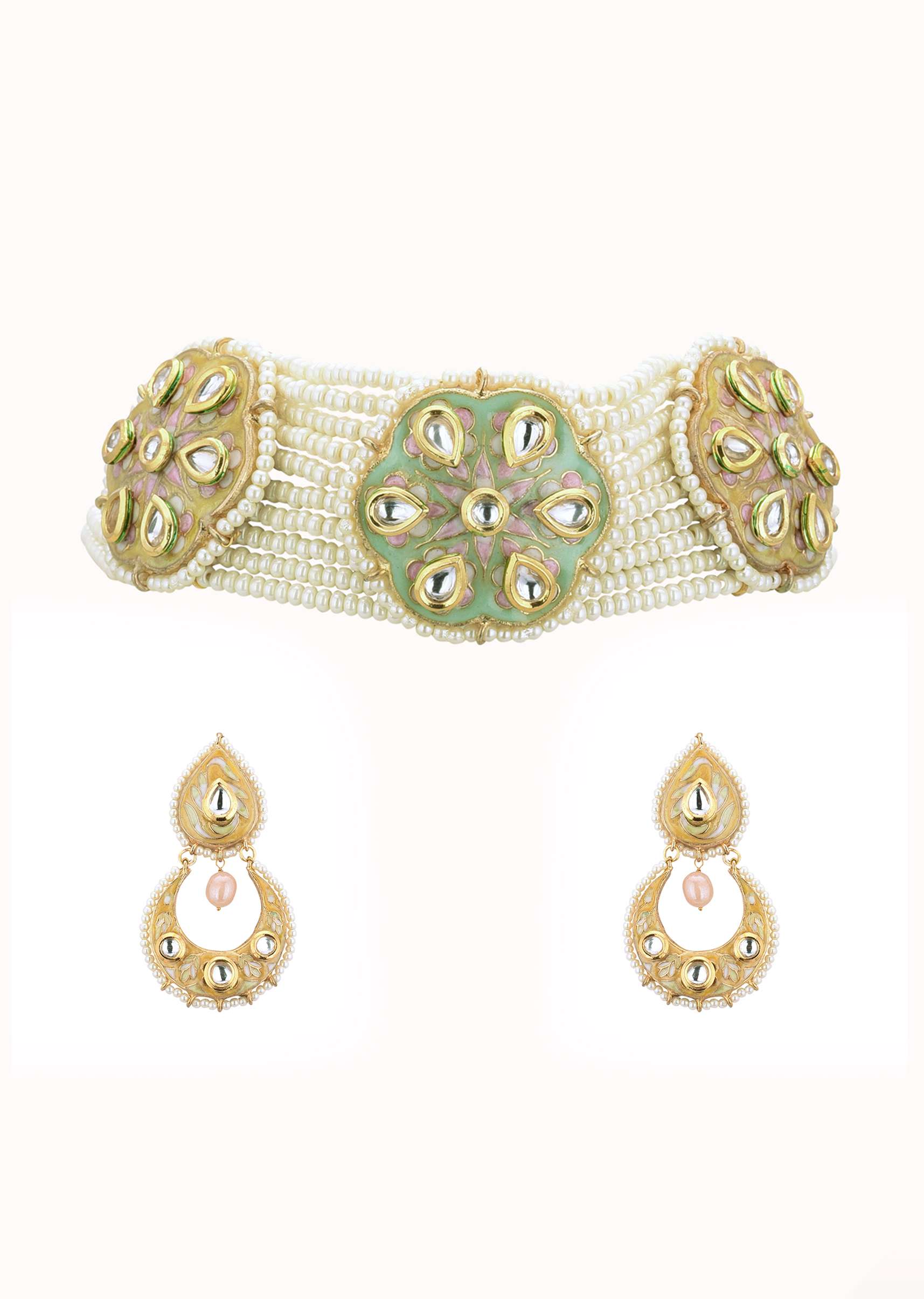 This white gold-finish choker and earring set in mixed metal is a beautiful and timeless design.This set is adorned with white beads and pearls.EVENT - Perfect for weddings, engagements, or parties.Avoid contact with water, chemicals, harsh liquids, perfumes, etc.Do not wear this piece of jewelry while showering, gymming, swimming, etc.Hard contact must be avoided completely.Please keep the product away from moisture and humidity when not in use.Baroque pearls and Natural stones can range from minor aberrations to distinctly ovoid, curved, pinched, or lumpy shapes.Slight variations in design may vary. Awarded as the Most Trusted Brand, we're delivering styles you love, just as promised.