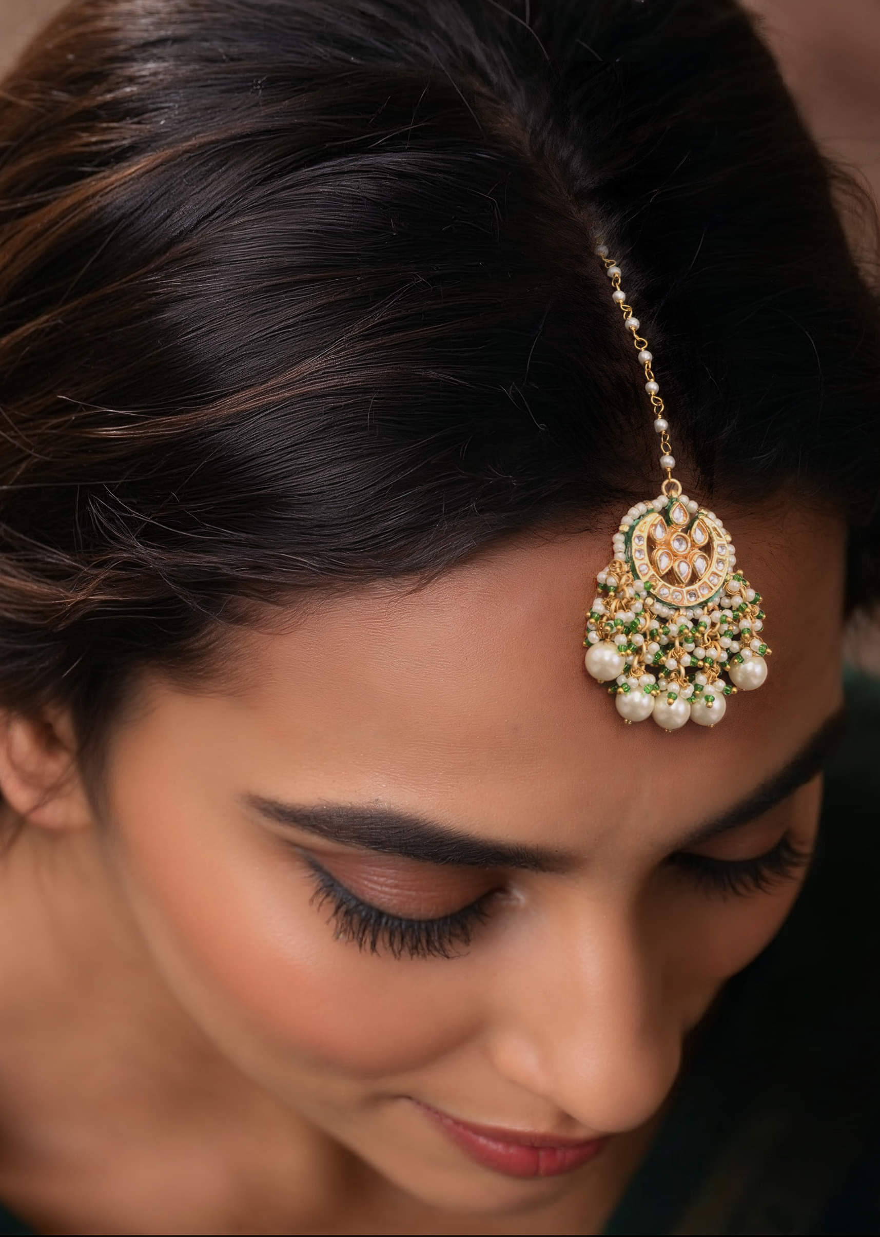 Pairs beautifully with matching kundan earrings or necklaces for a coordinated, elegant look.Fit Tips: Secure chain design ensures a comfortable fit that stays in place throughout the event.