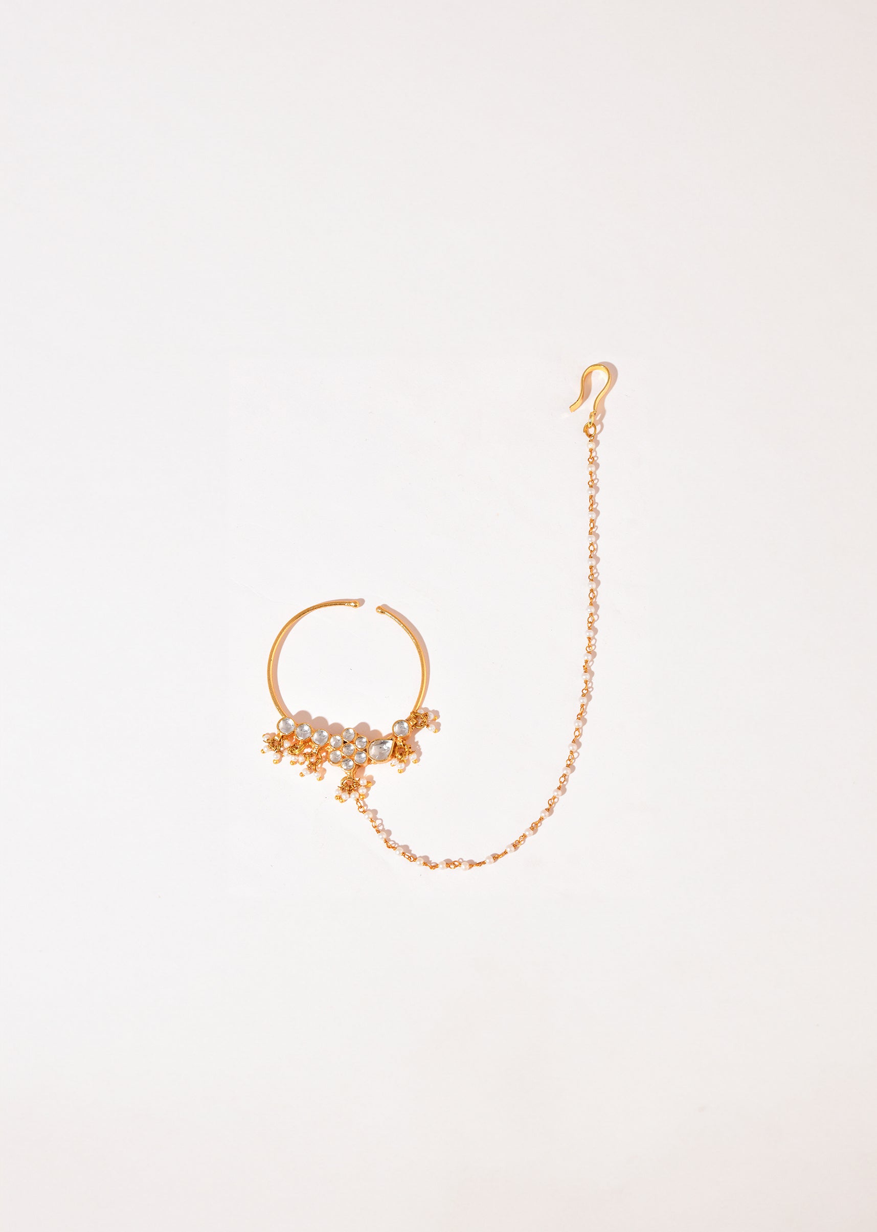 Enhance your festive or bridal look with this white kundan bead drop nath, featuring delicate detailing and a graceful hanging bead for a soft traditional finish. Perfect for weddings and cultural celebrations, it adds timeless elegance to any ethnic ensemble.Awarded as the Most Trusted Brand, we're delivering styles you love, just as promised.