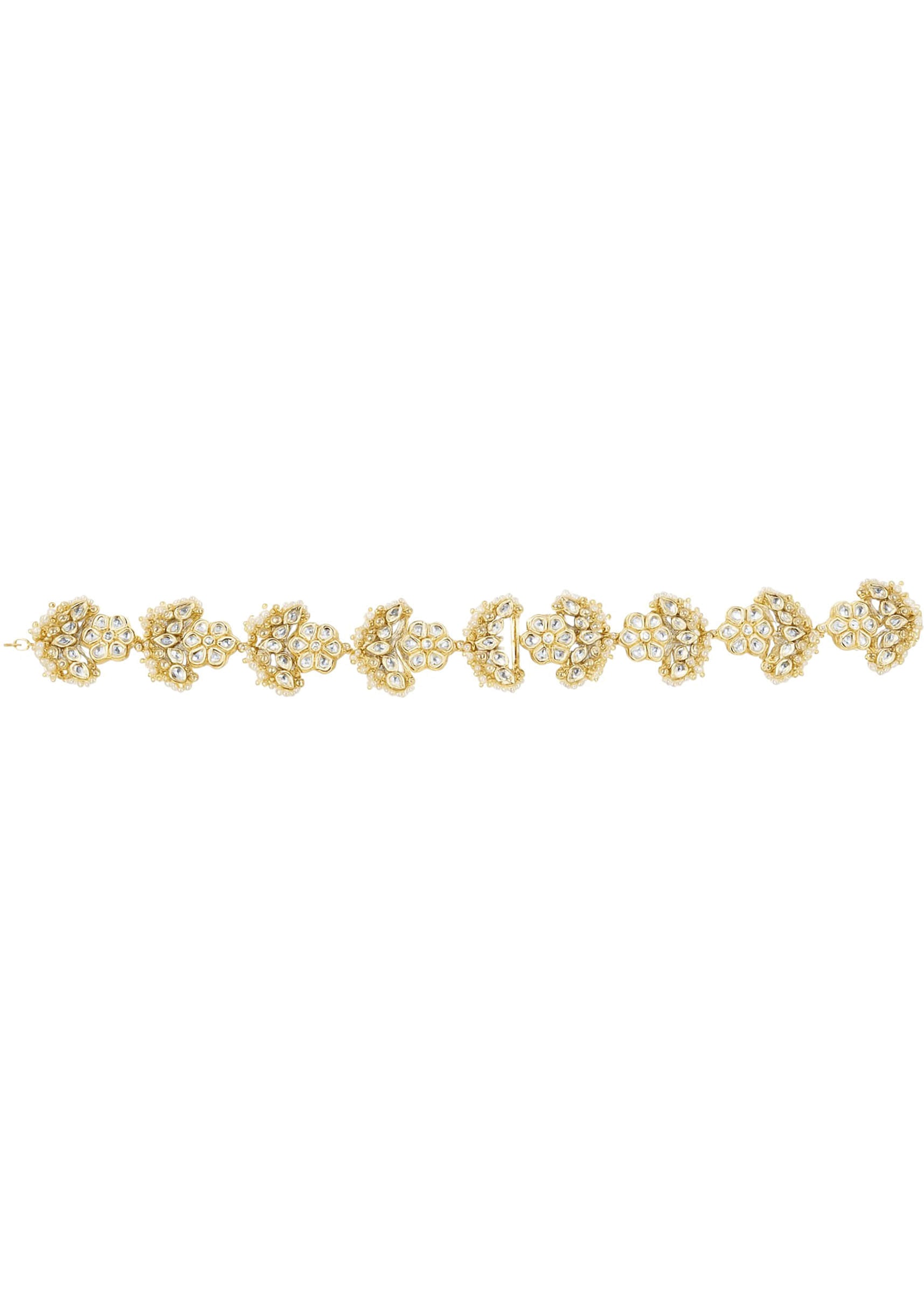 A white kundan embellished mathapatti featuring intricate stonework and delicate detailing, exuding timeless elegance. Perfect for adding a sophisticated and regal touch to bridal, festive, or ethnic ensembles. Awarded as the Most Trusted Brand, we're delivering styles you love, just as promised.