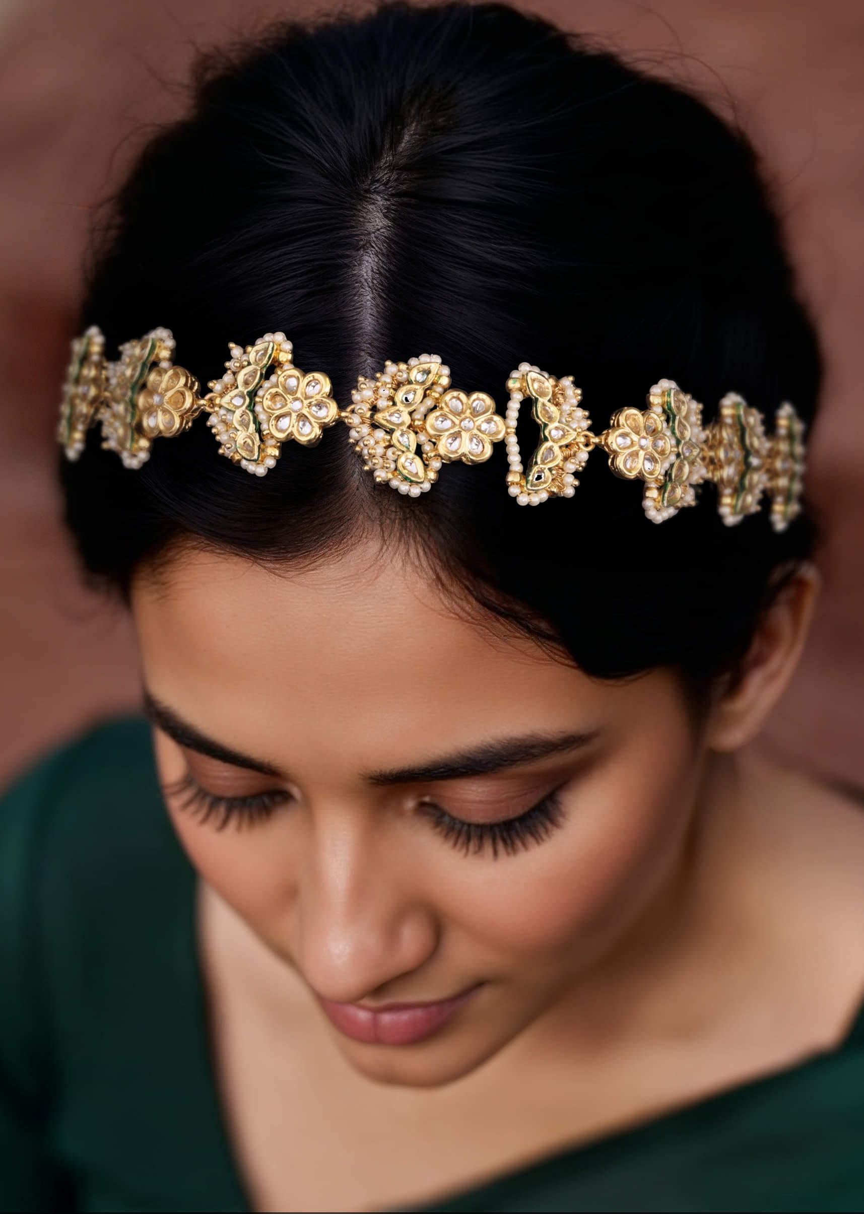 Pairs beautifully with matching kundan earrings or necklaces for a coordinated, royal look.Fit Tips: Adjustable design with secure hooks ensures a comfortable and stable fit on the head.