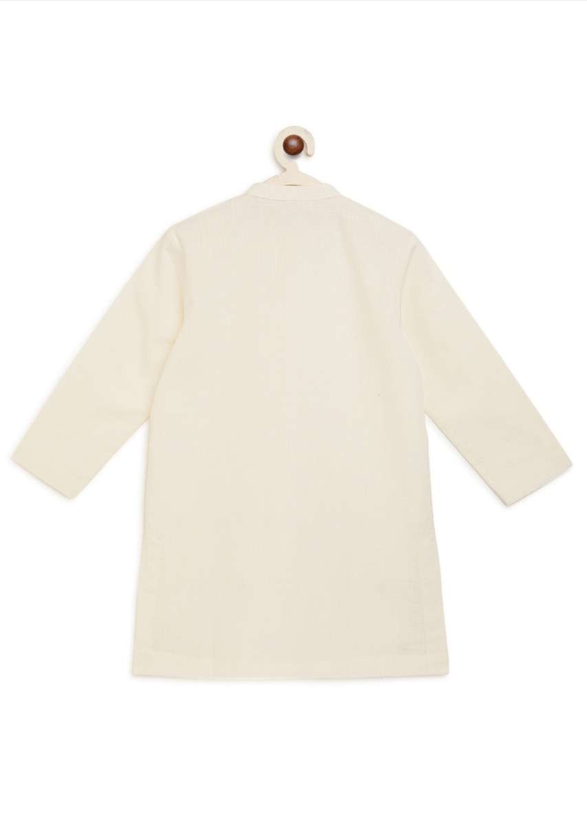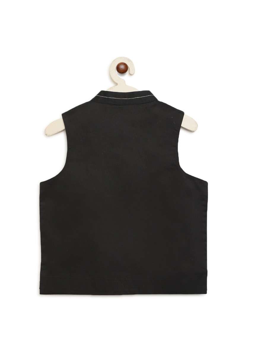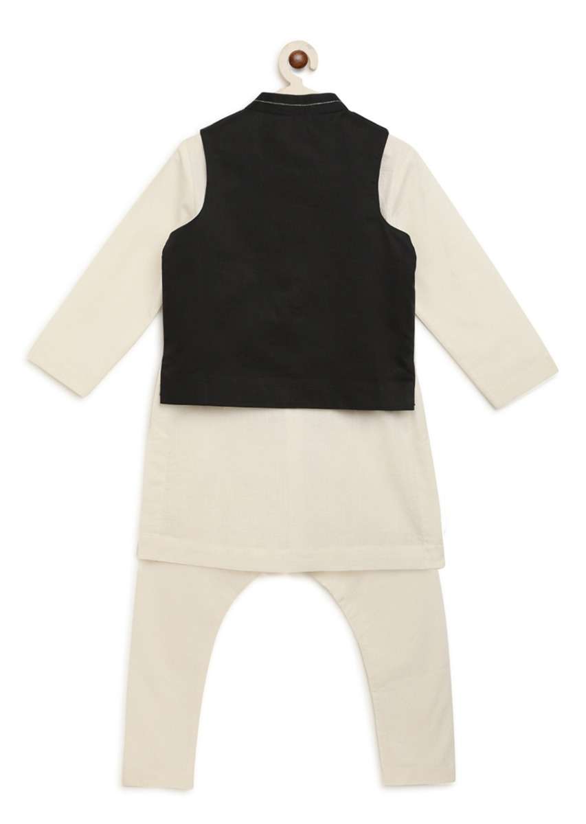 Kalki Boys White Kurta Set With Embroidered Buttis And Black Nehru Jacket With Ornate Embroidered Motif By Tiber Taber