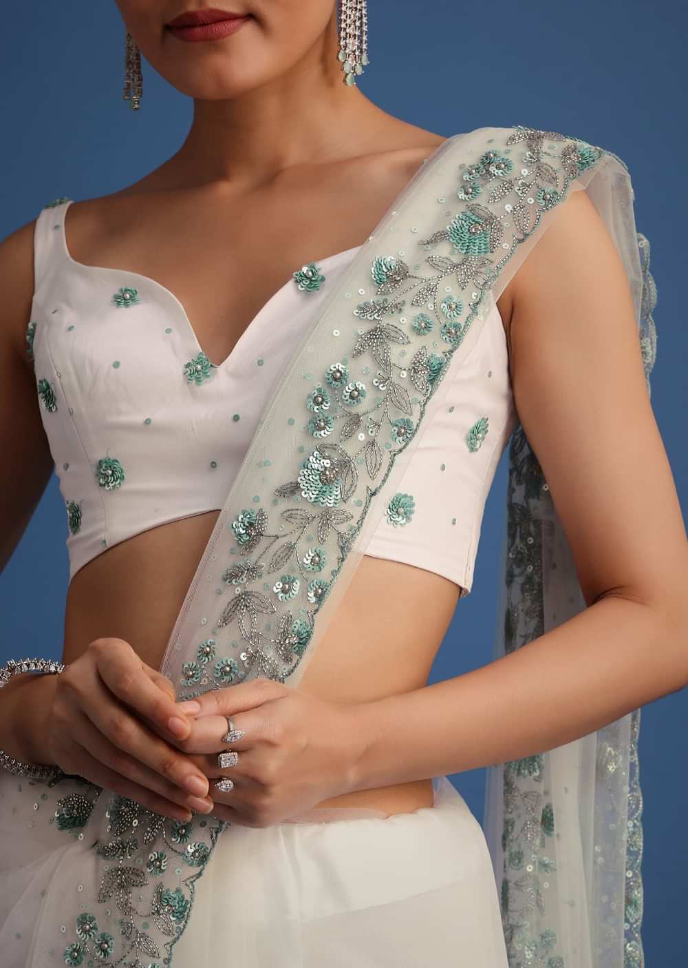 Discover the allure of elegance with our white saree. This exquisite creation combines the delicate charm of net fabric with the opulence of sequins and cutdana work. The intricate embroidery creates a stunning contrast against the pure white backdrop, making it an ideal choice for upscale events and festive celebrations. This saree comes with an unstitched blouse. Awarded as the Most Trusted Brand, we're delivering styles you love, just as promised.