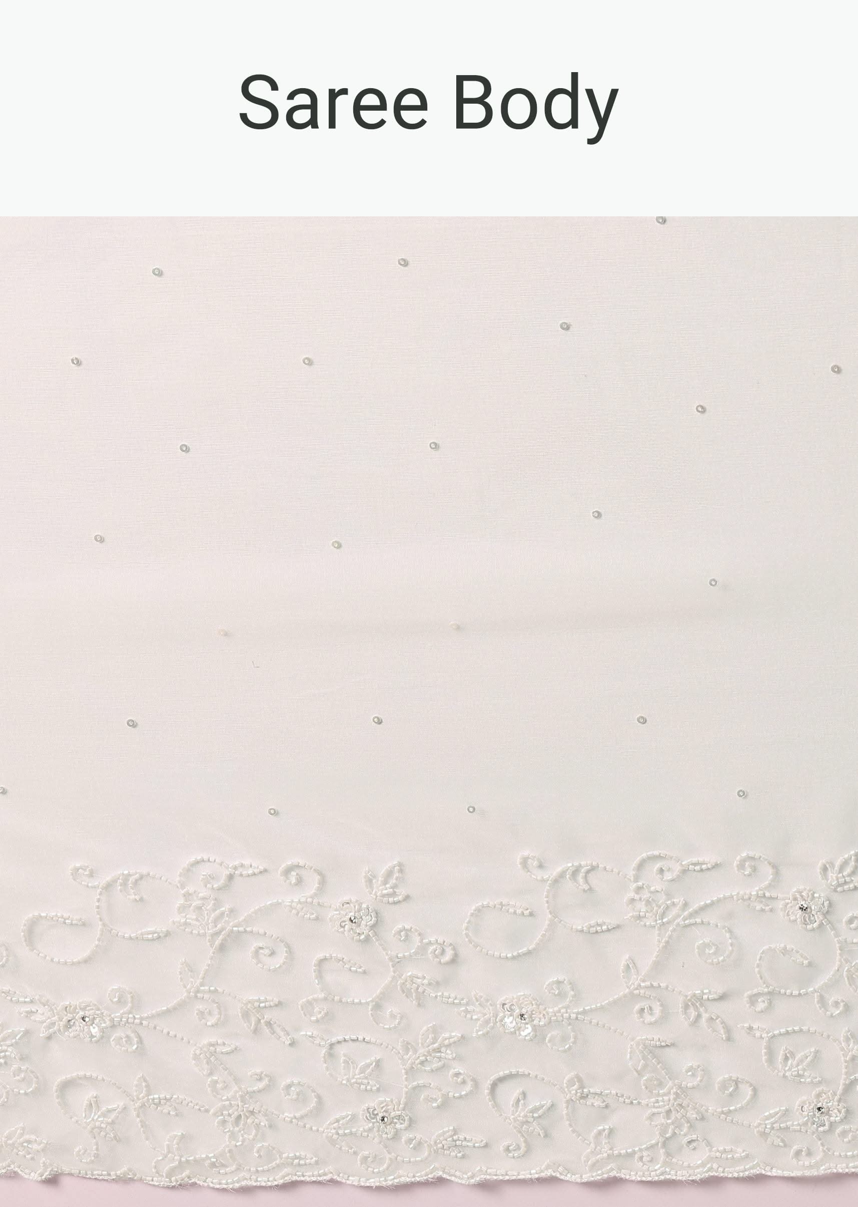 Embrace elegance with this white saree embellished with sequins and beadswork. This saree is crafted from organza fabric. The saree is teamed with an unstitched blouse. Dress up this look... More Product Details