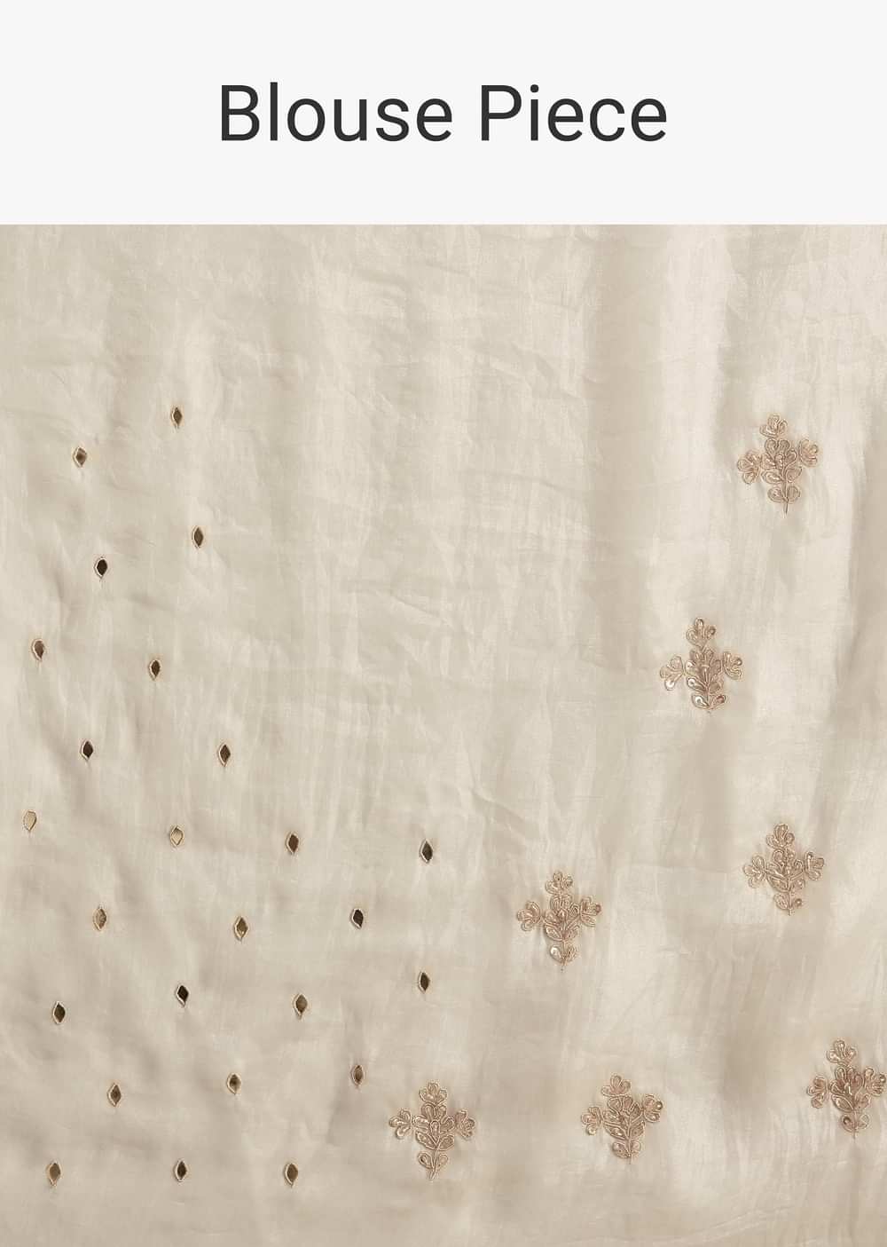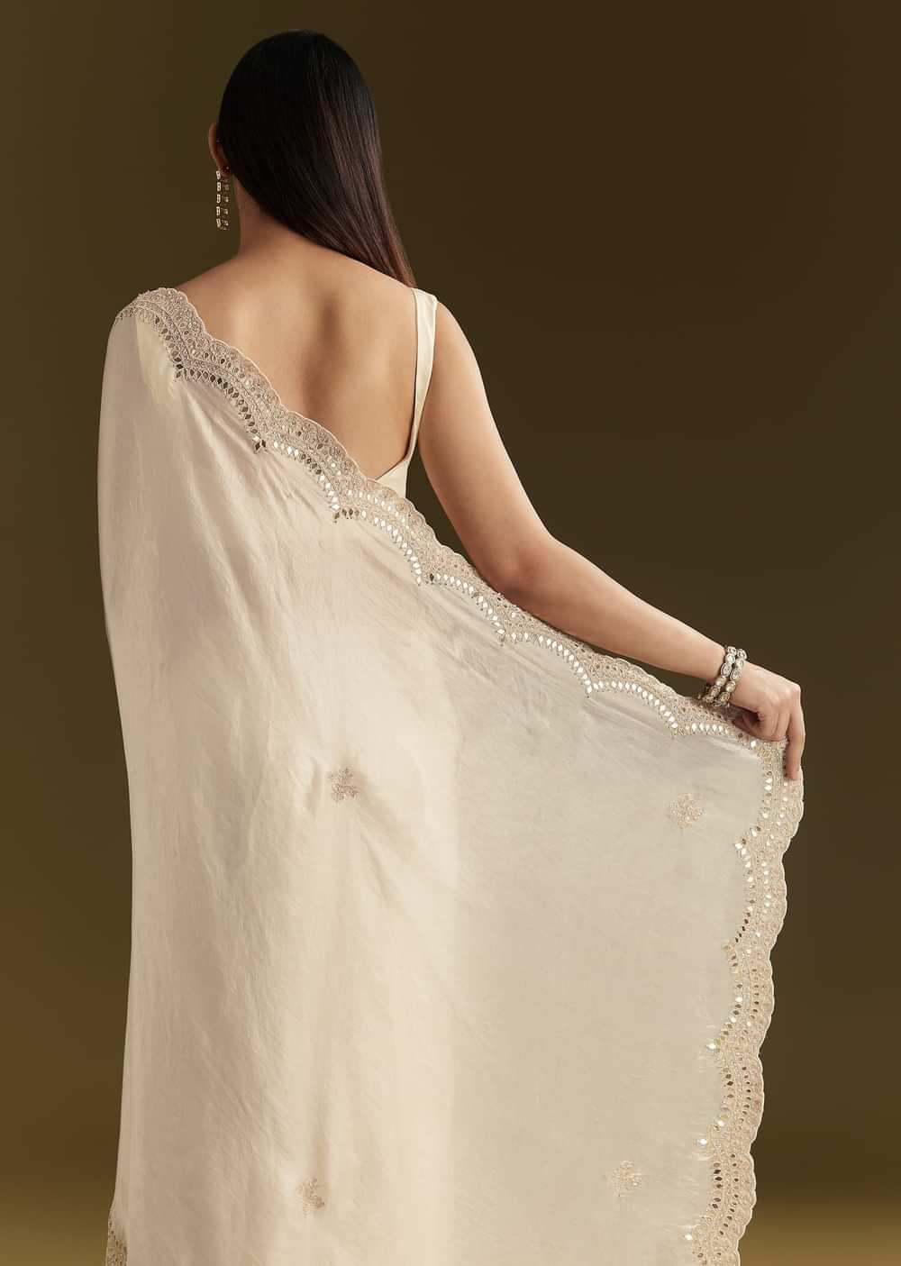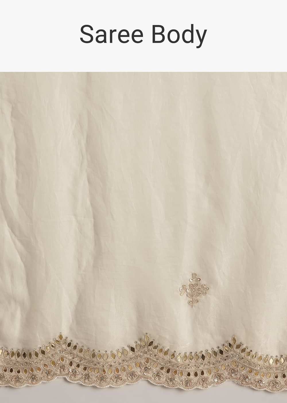 A tapestry of tradition and modern grace, this Off White satin saree is the epitome of refined luxury. Intricately detailed with gota patti, zardozi, stones, and cutdana embroidery, it blends heritage with contemporary sophistication. Awarded as the Most Trusted Brand, we're delivering styles you love, just as promised.
