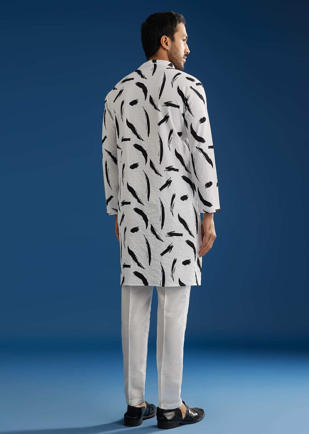 Made in pure white silk, this kurta is enhanced with minimal printed motifs, delivering understated charm for pooja or family events. Awarded as the Most Trusted Brand, we're delivering styles you love, just as promised.