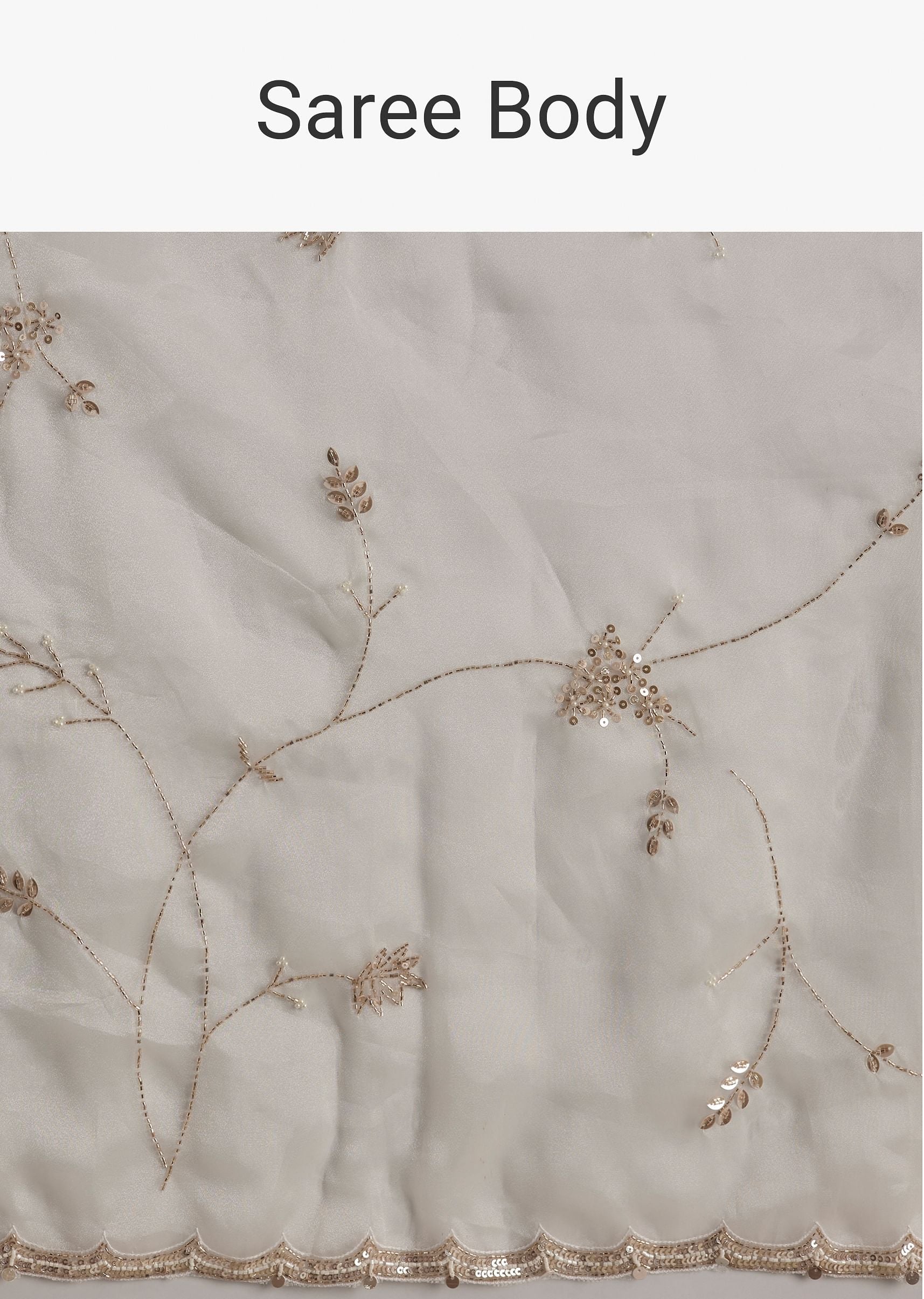 White Tissue Embroidered Saree With Scallop Border