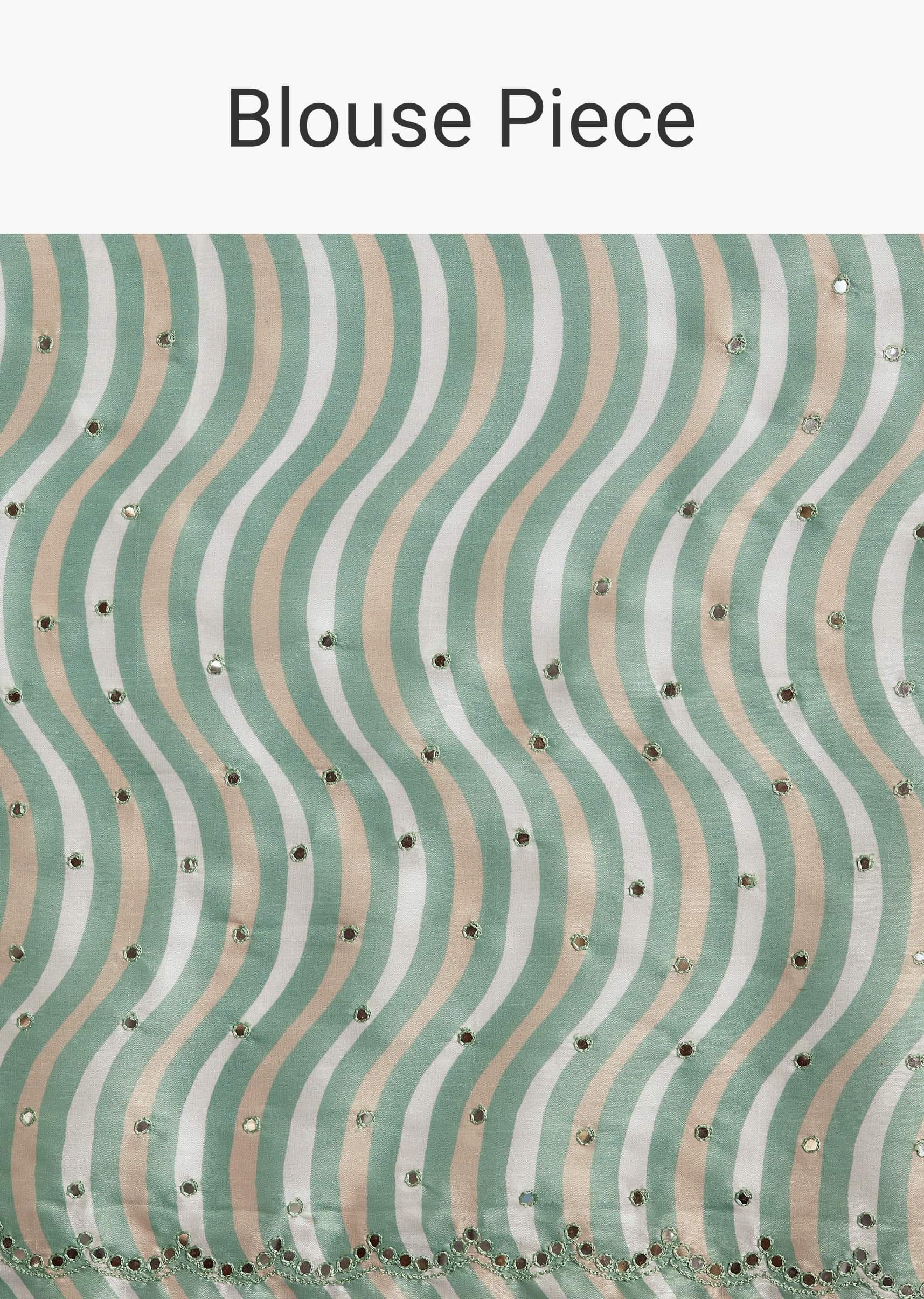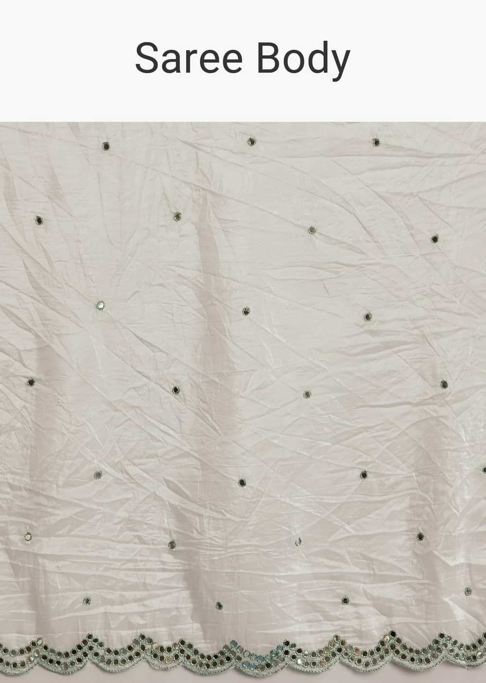 A white tissue saree featuring mirror work and aqua green contrast border and blouse, perfect for morning rituals or pooja. It feels like wearing a quiet poem stitched in shimmer... More Product Details
